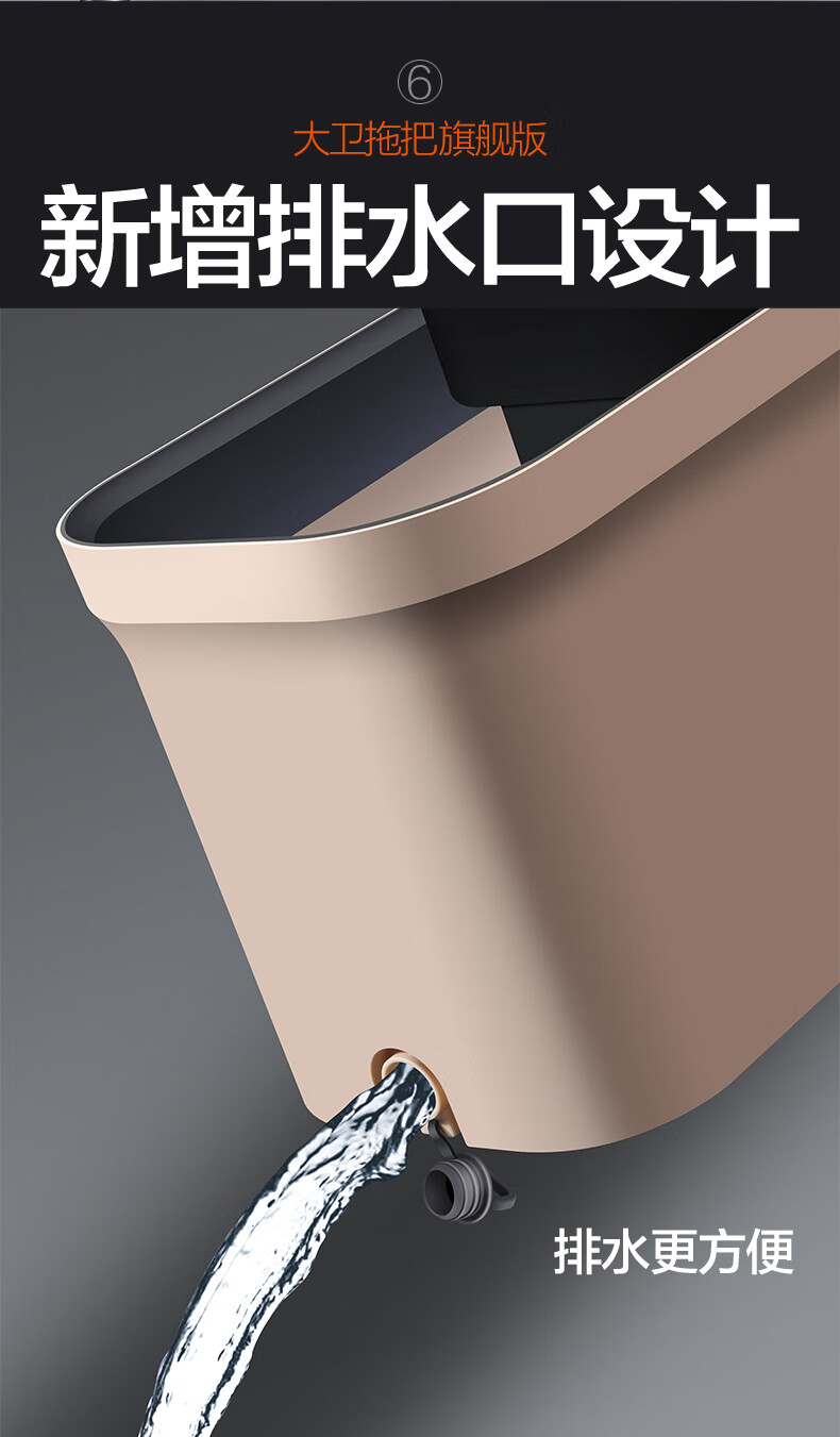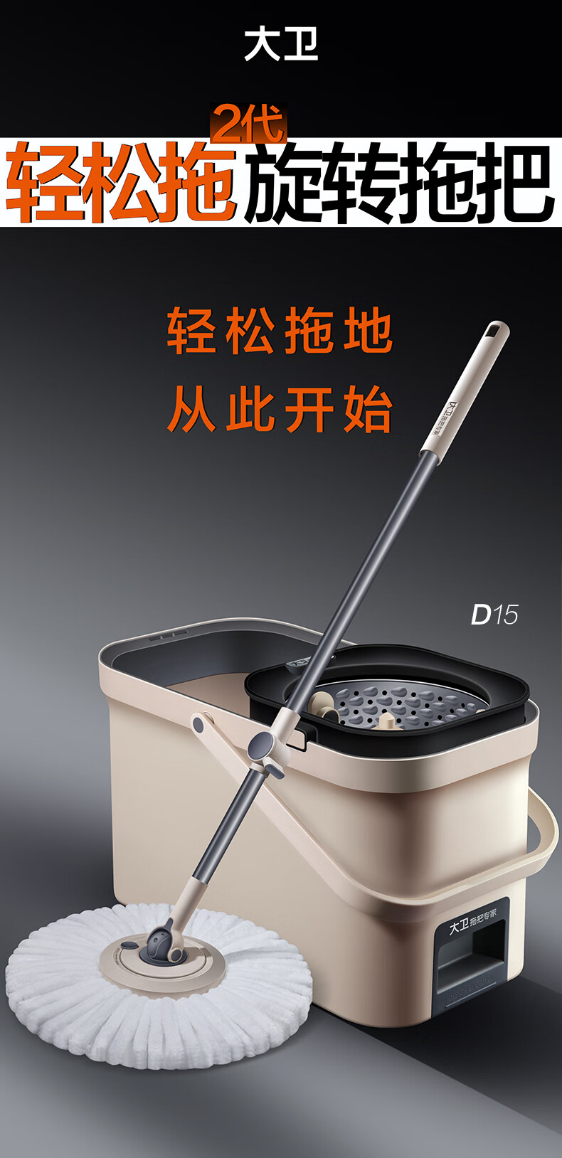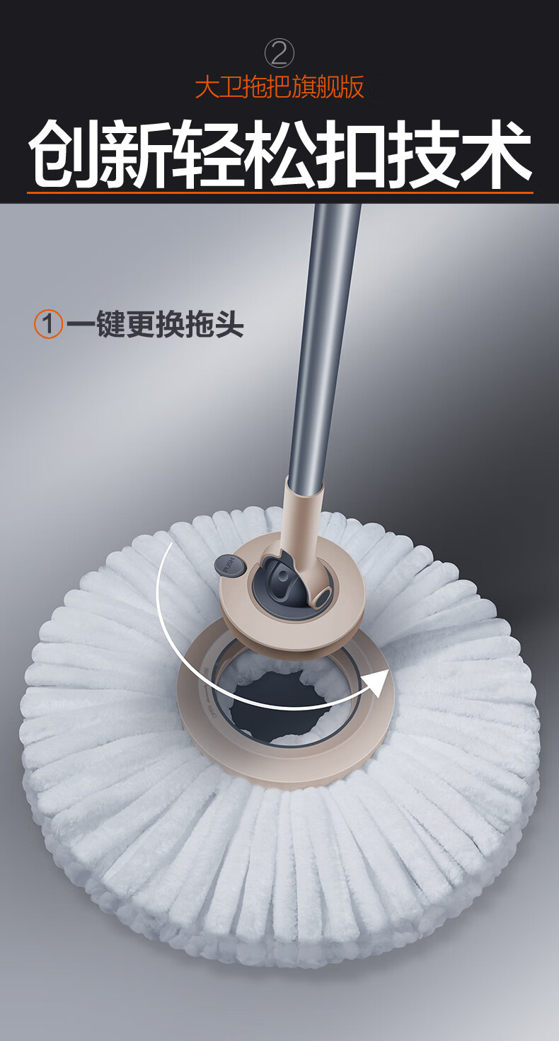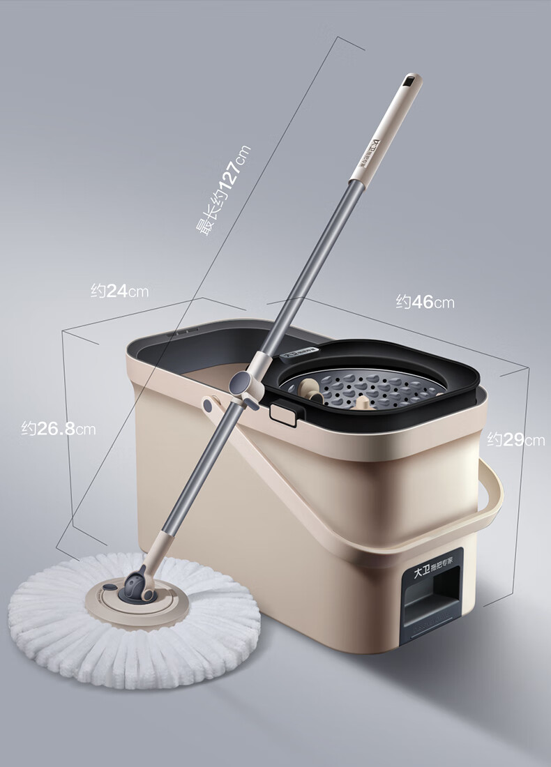 升级长绒毛拖头,更大吸水去污力;创新轻松拆技术,脱水篮一按拆,桶体清洁方便;全新加粗不锈钢拖杆,坚固耐用,品质出众