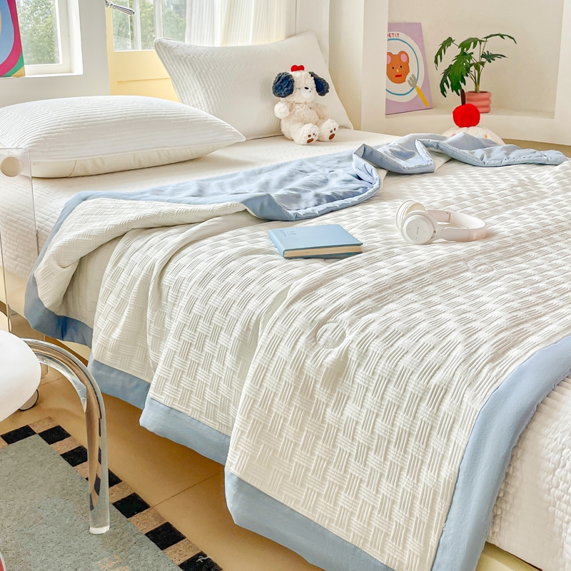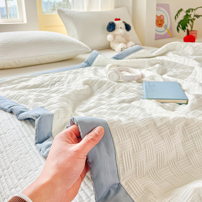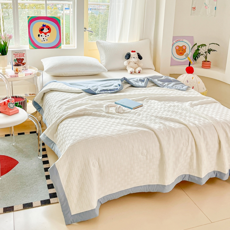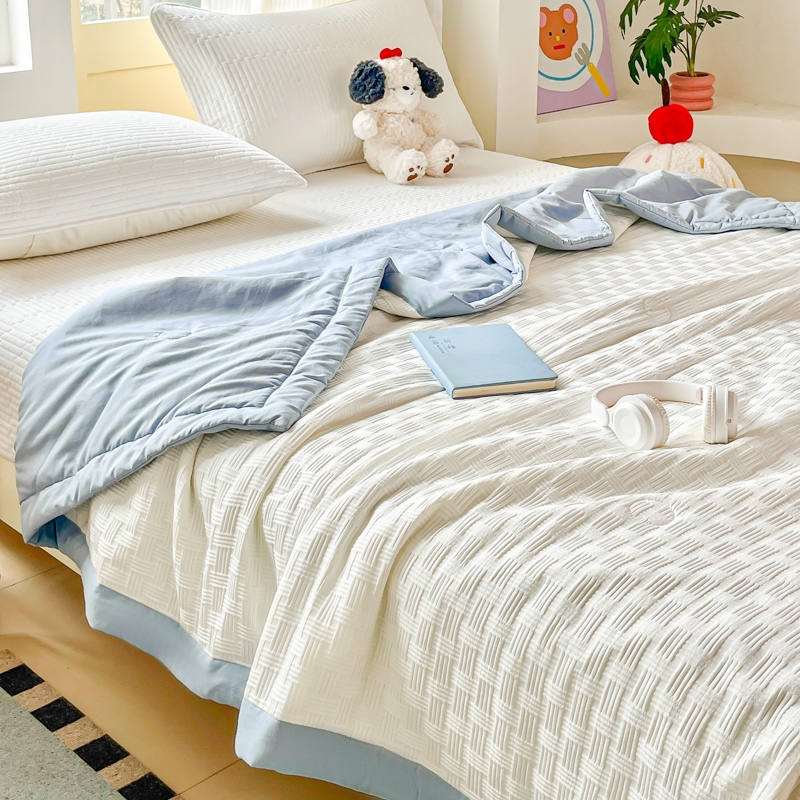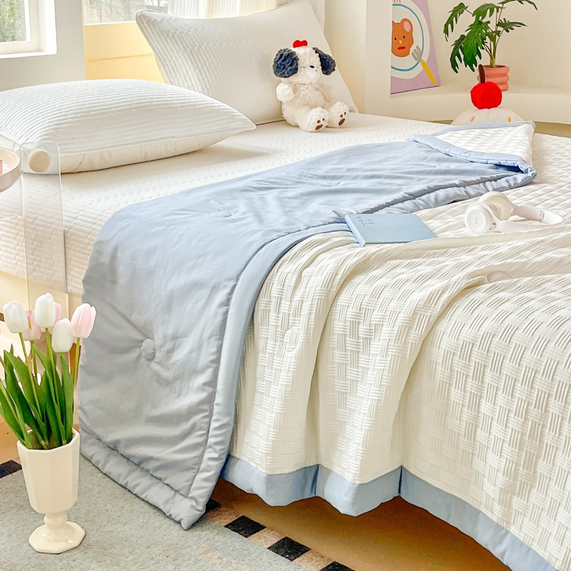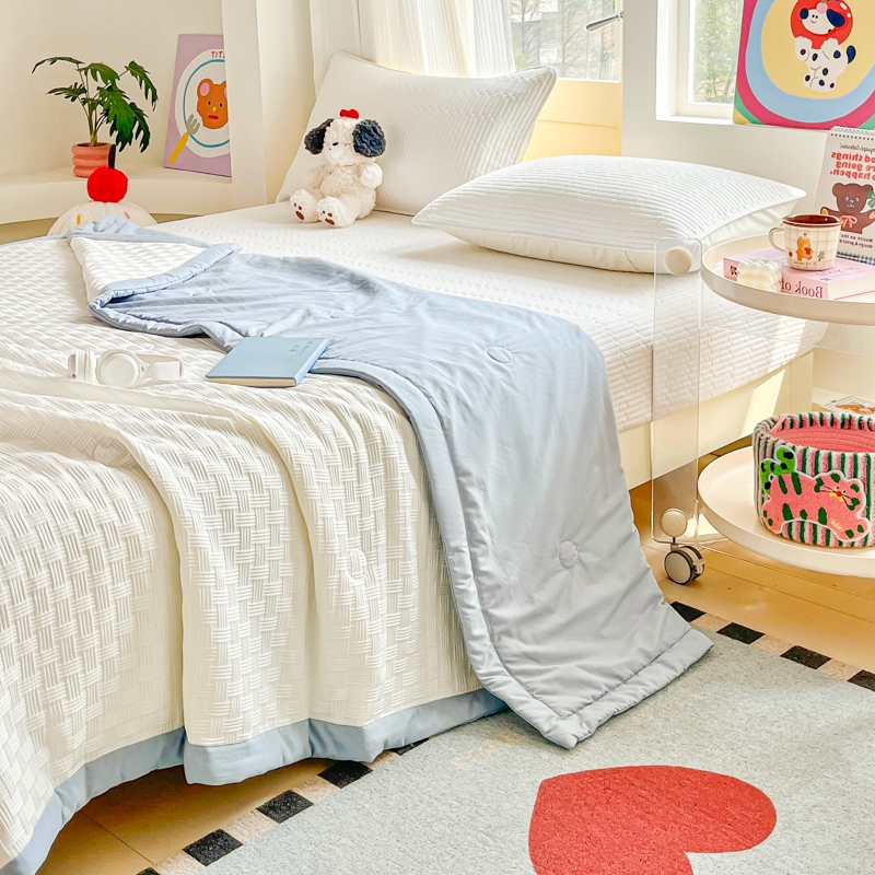 甄选华夫格面料水洗织造工艺软糯亲肤;贴合身体所触之处皆是柔软顷刻沦陷适合裸睡;整张雨丝棉填充,平整舒适