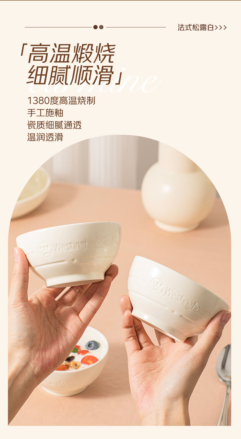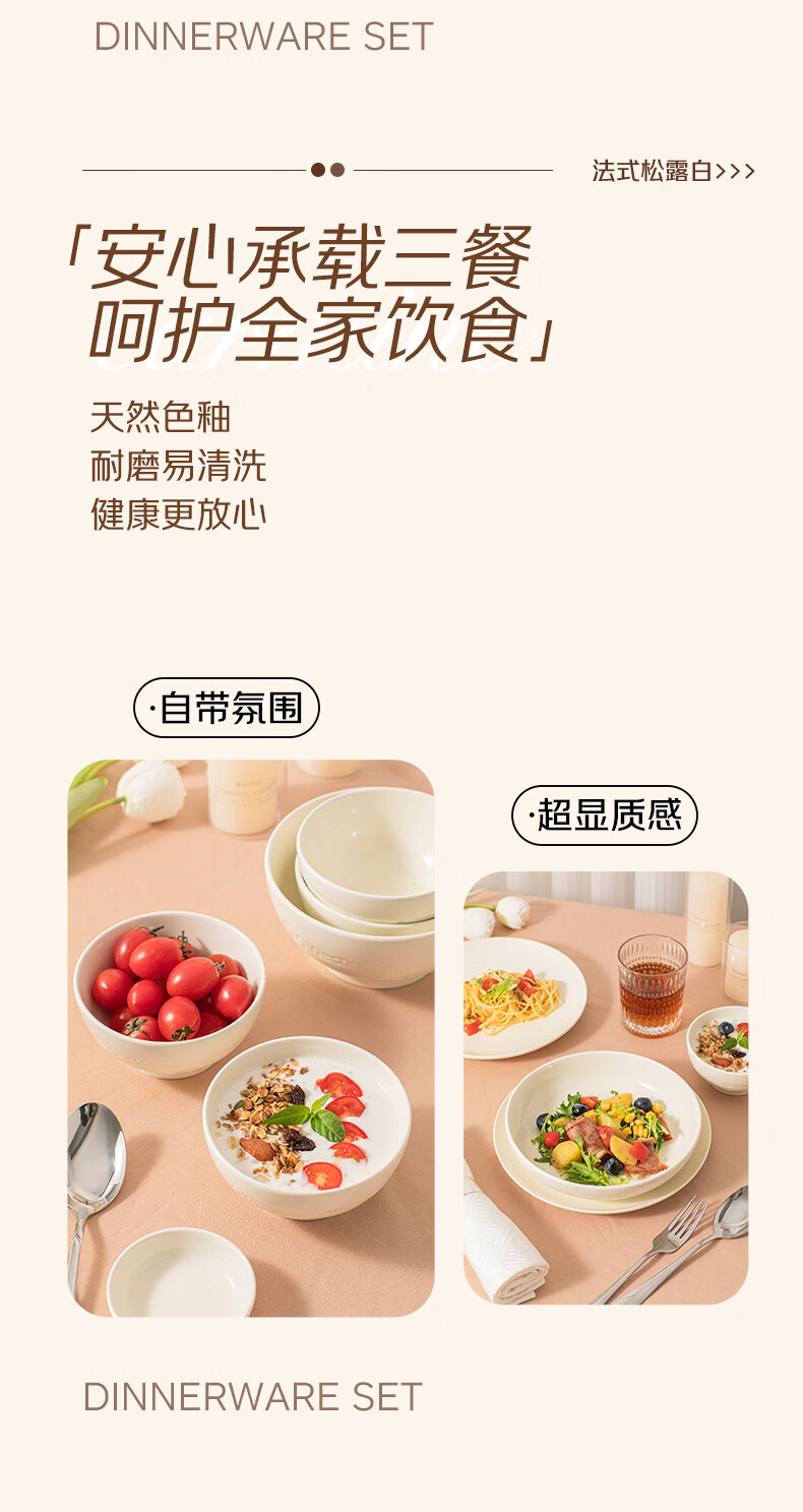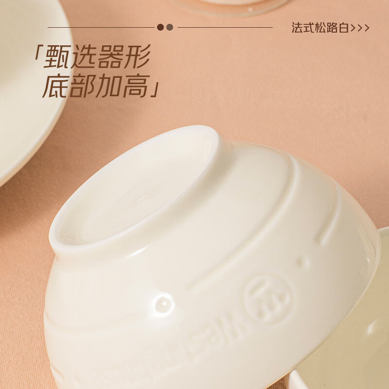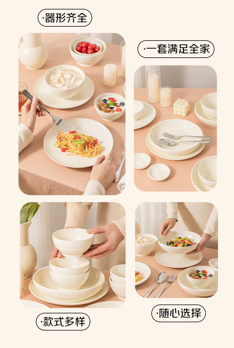 中温炻瓷材质,瓷质温润细腻;独有天然植物材料调色,色感亮丽,耐看,健康环保;可进洗碗机,烤箱,微波炉,消毒柜