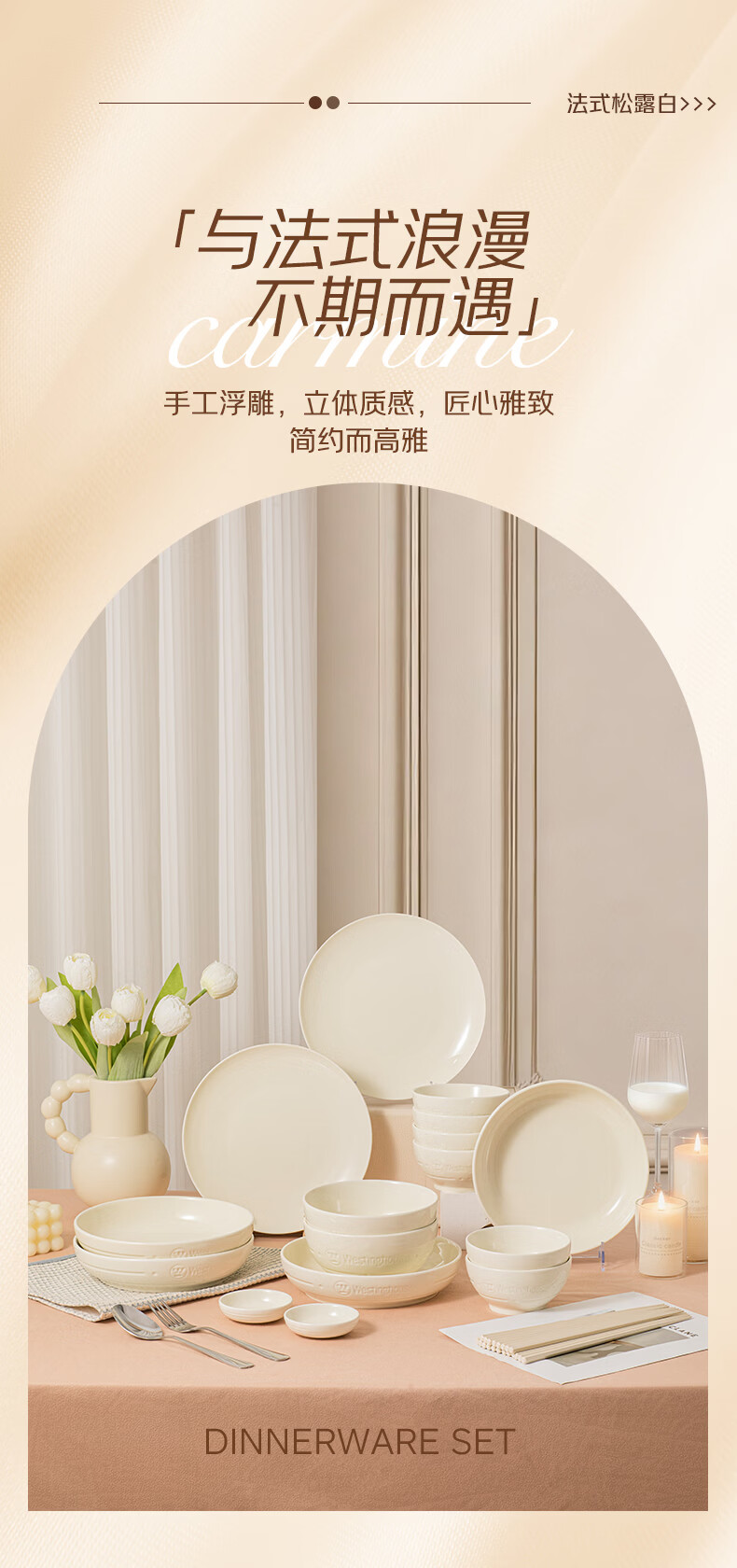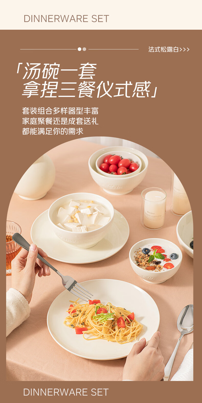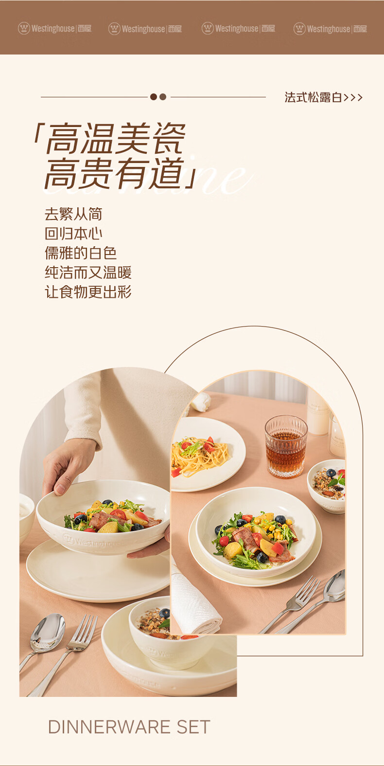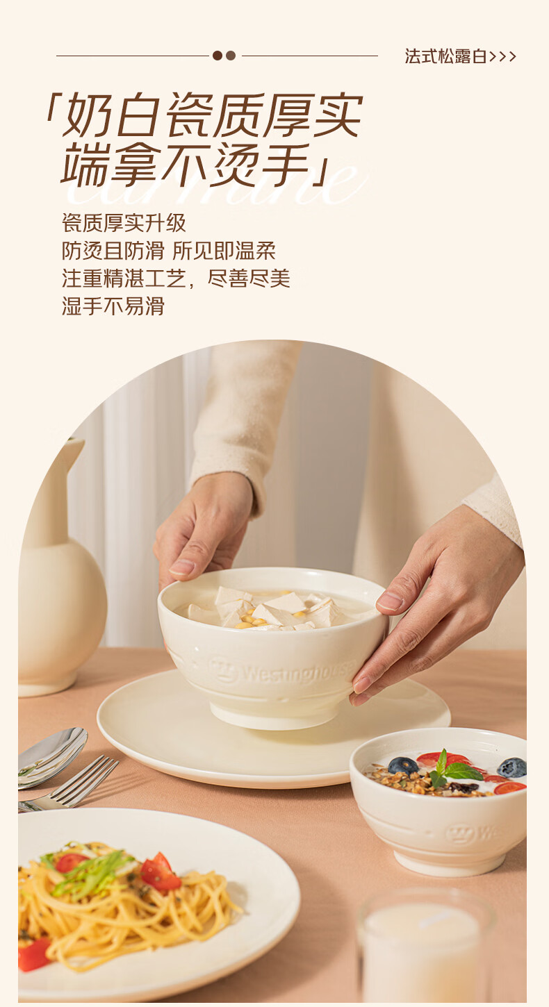 中温炻瓷材质,瓷质温润细腻;独有天然植物材料调色,色感亮丽,耐看,健康环保;可进洗碗机,烤箱,微波炉,消毒柜