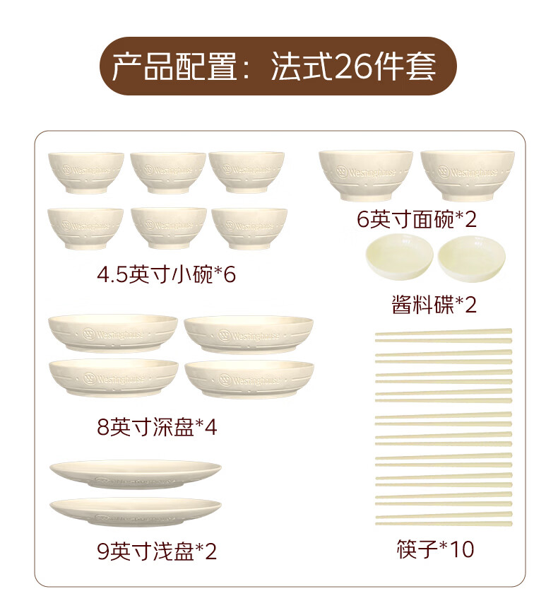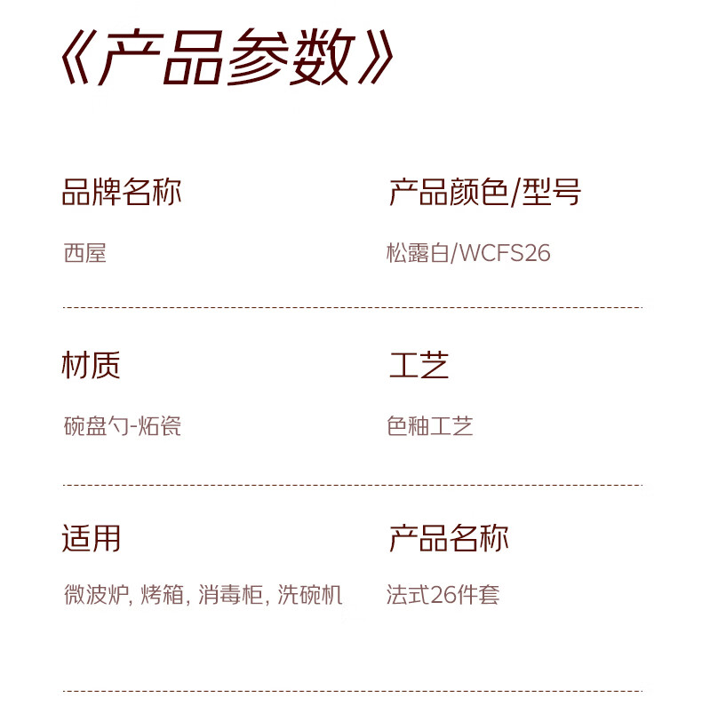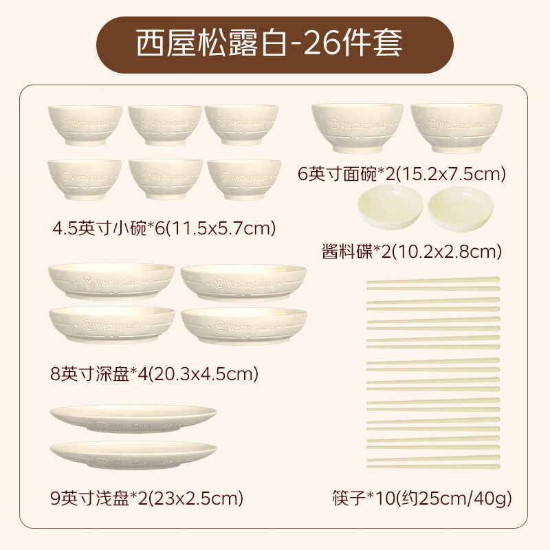 西屋 陶瓷碗碟套装礼盒26件套WCFS26