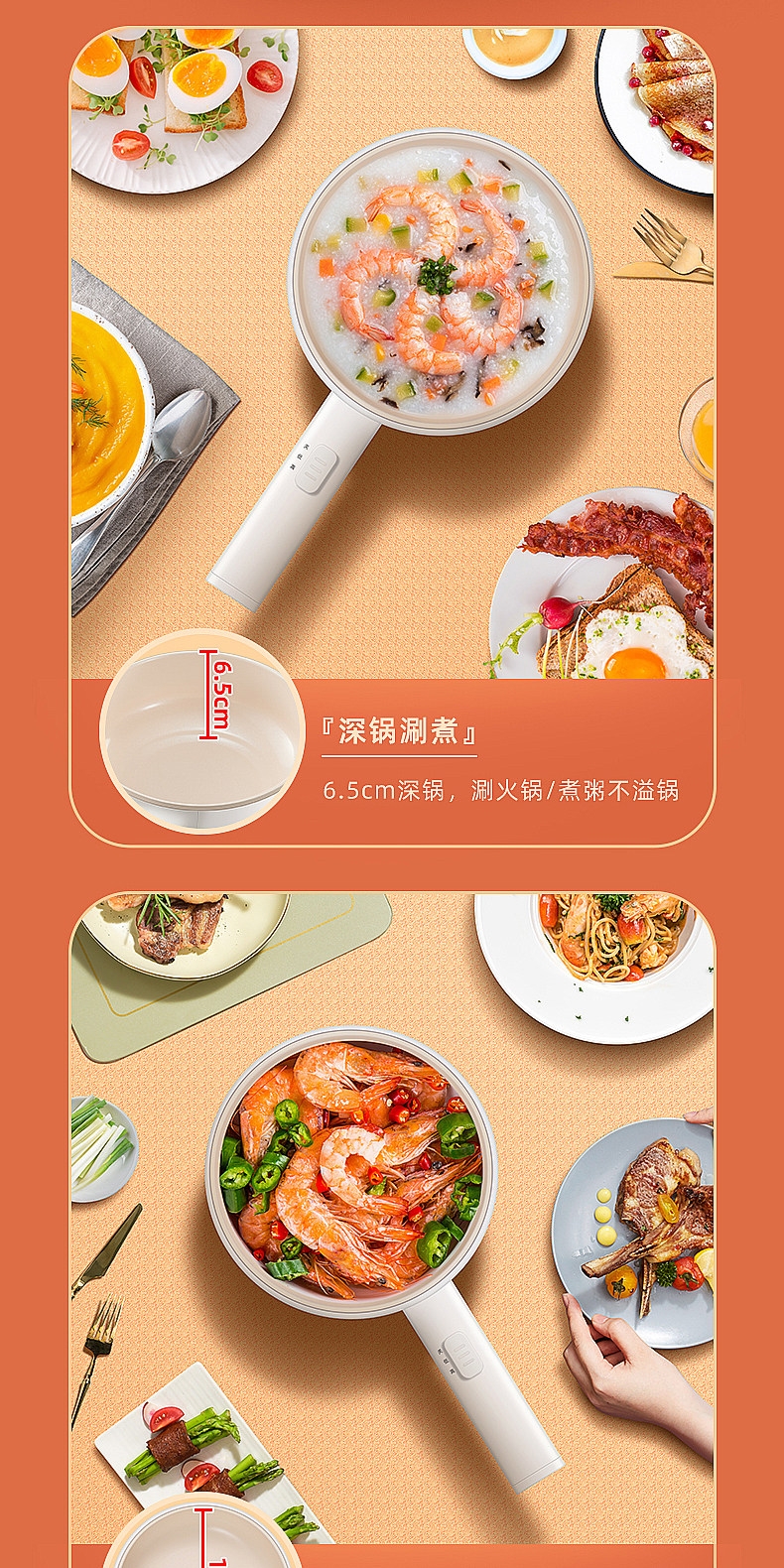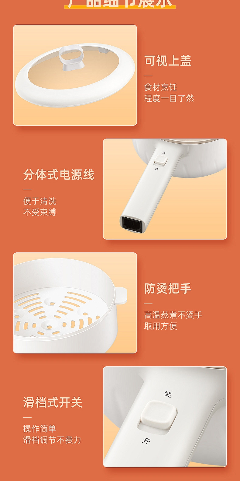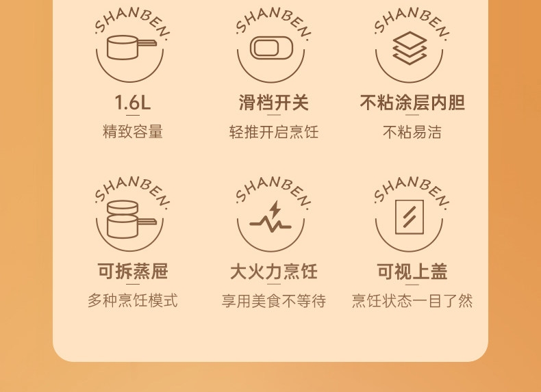 1.6L 精致容量;不粘涂层内胆,不粘易洁;可拆蒸屉 ,多种烹饪模式