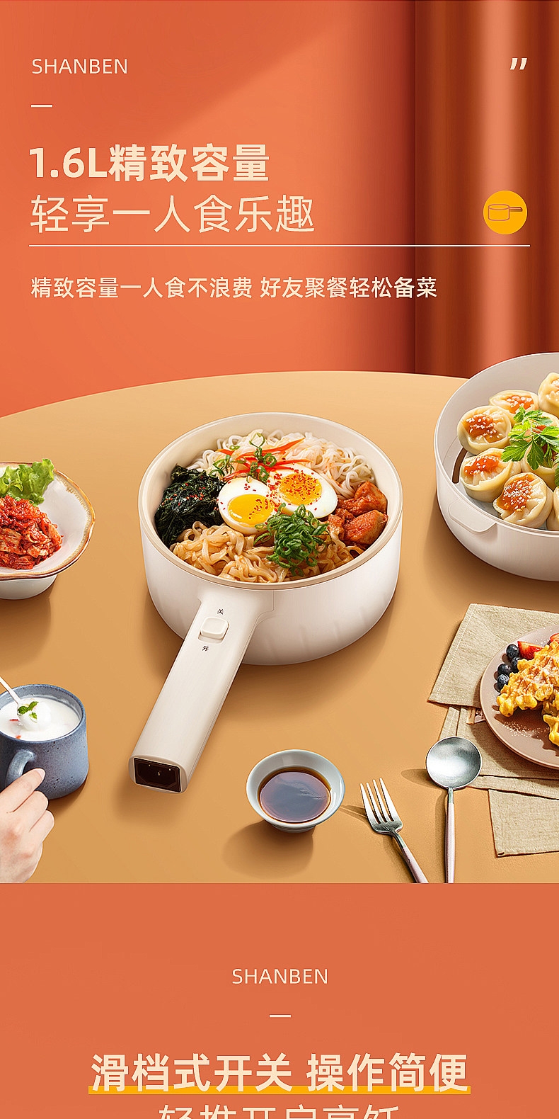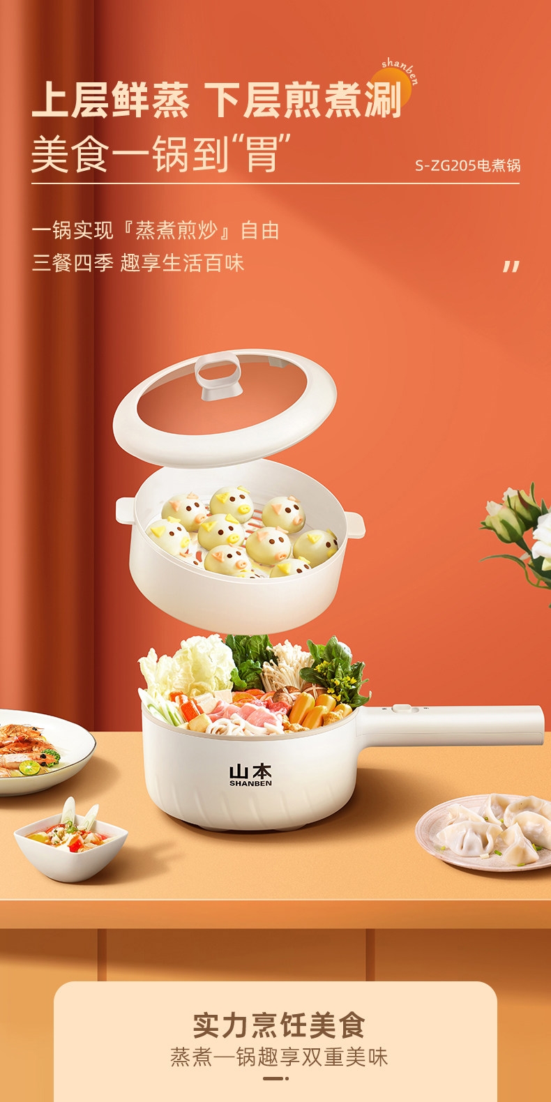 山本 多功能电火锅电煮锅1.6LS-ZG205