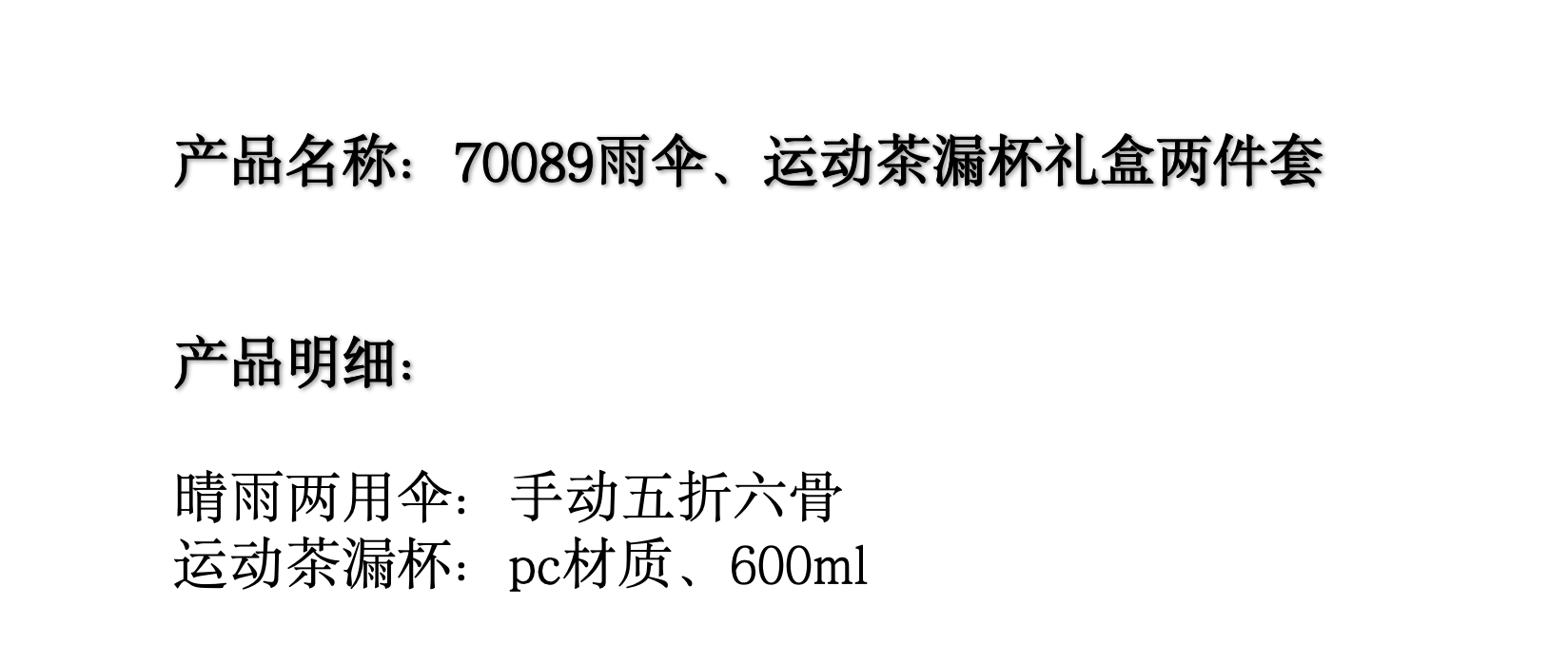 配置清单:口袋伞*1;运动茶漏杯;礼袋*1