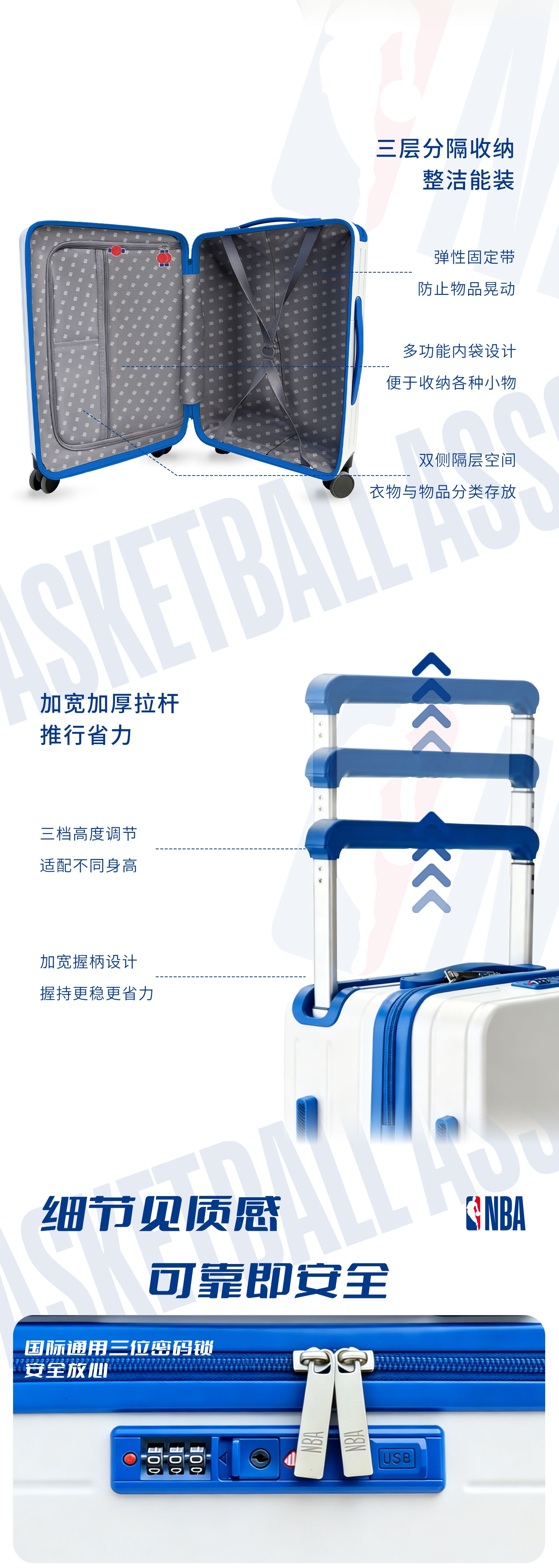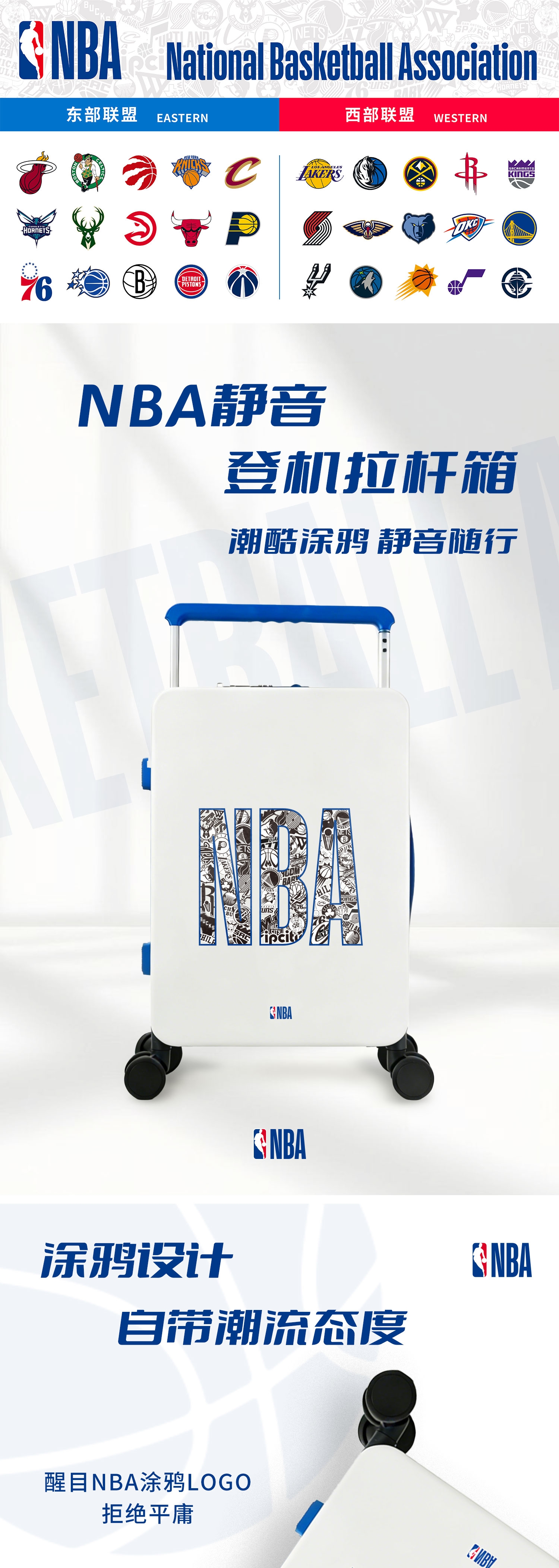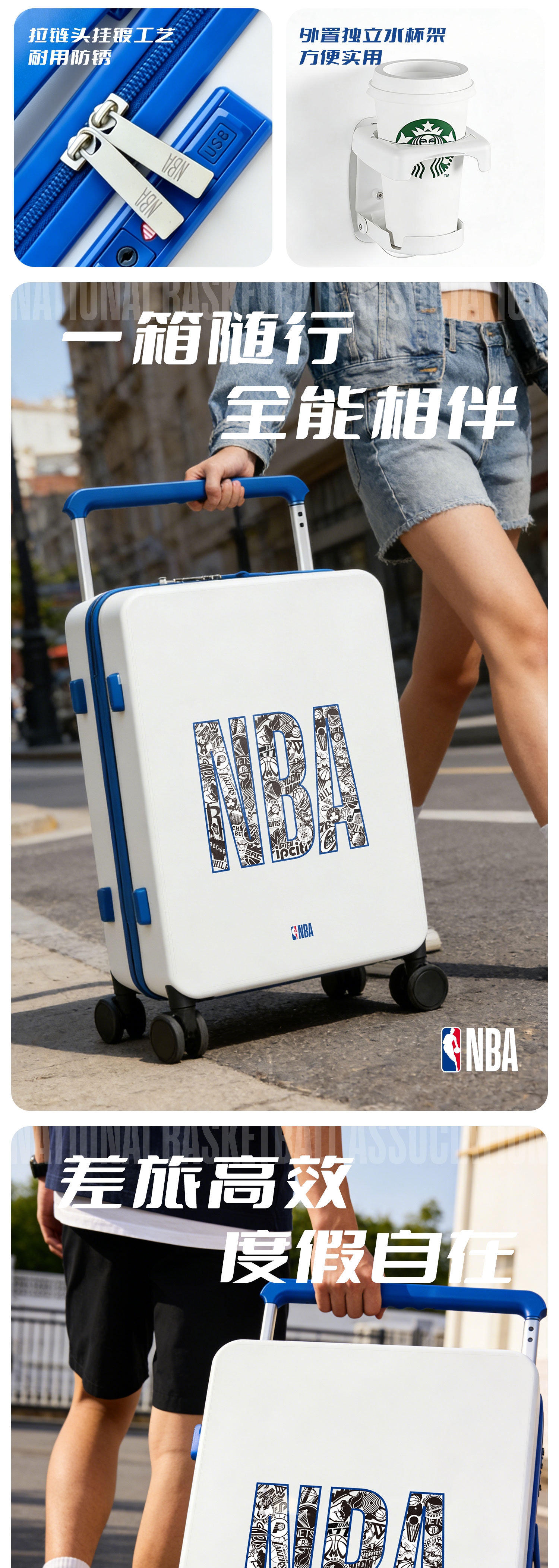 NBA 联名 + 拉杆轮组,球迷专属便携冷藏利器;耐用材质,单独水杯架、好看又能 “装”;万向顺滑静音大轮、加粗加厚全铝拉杆