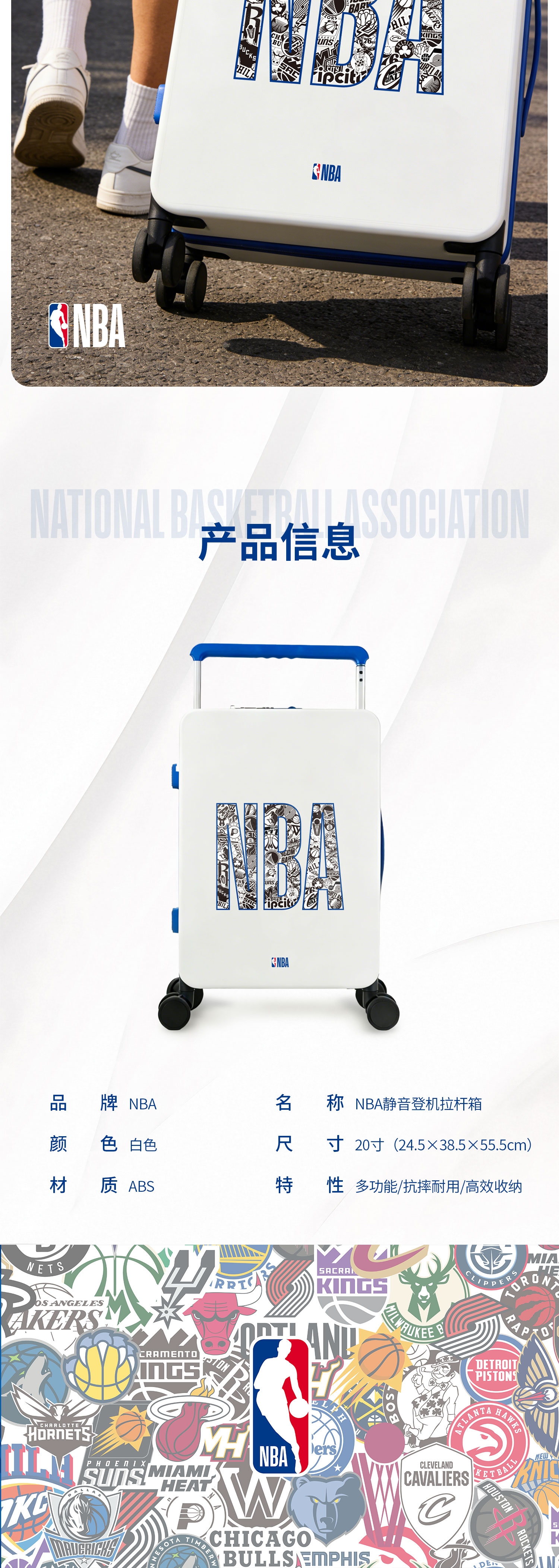 NBA 静音登机拉杆箱20寸NBA-JYDJLGX-20