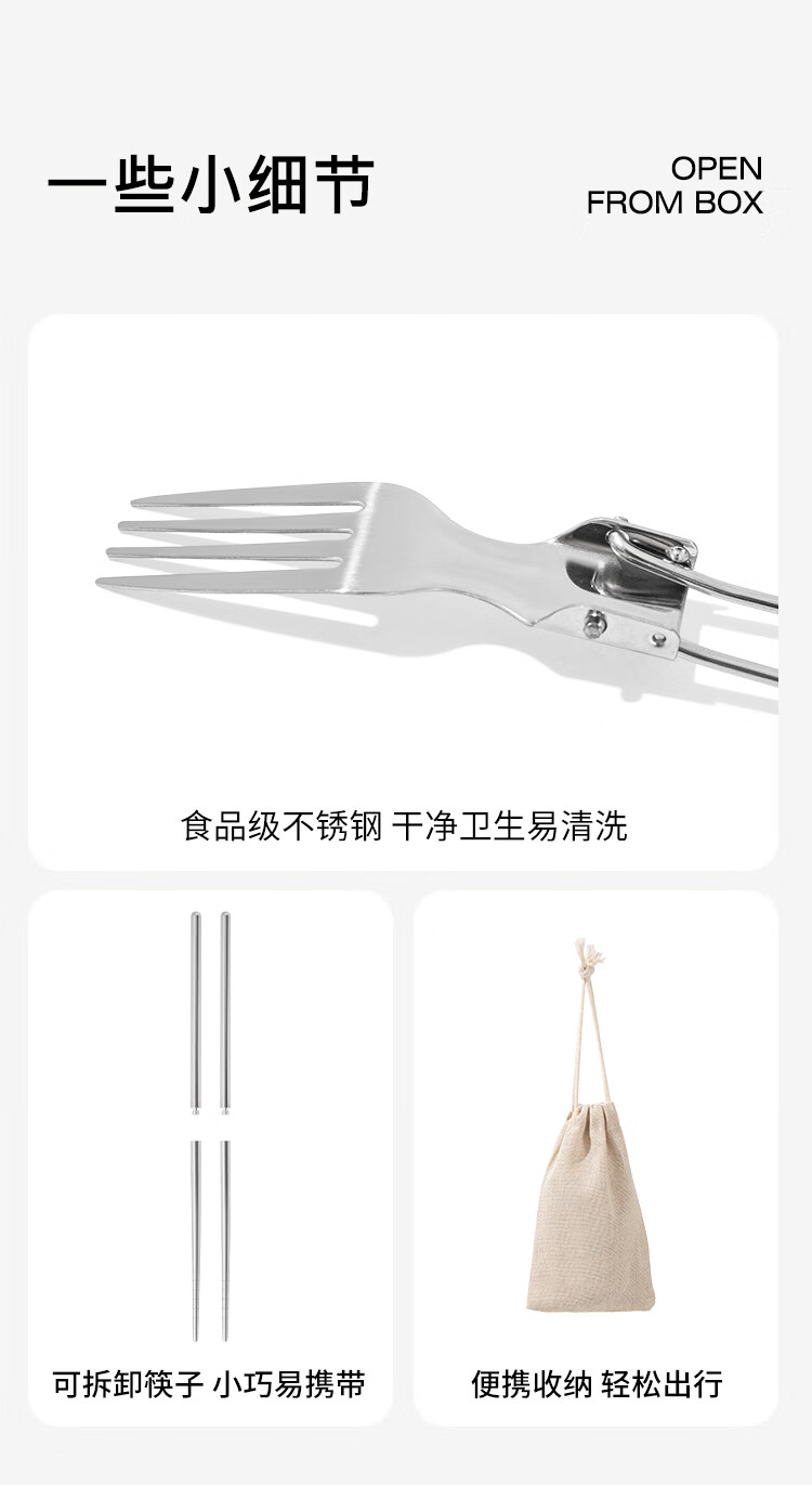 304不锈钢,刀叉筷子4件套一应俱全,安全放心;多场景使用,方便便携;食品级不锈钢干净卫生易清洗