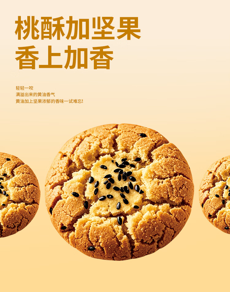 桃酥加坚果香上加香;独立小包装;美好寓意