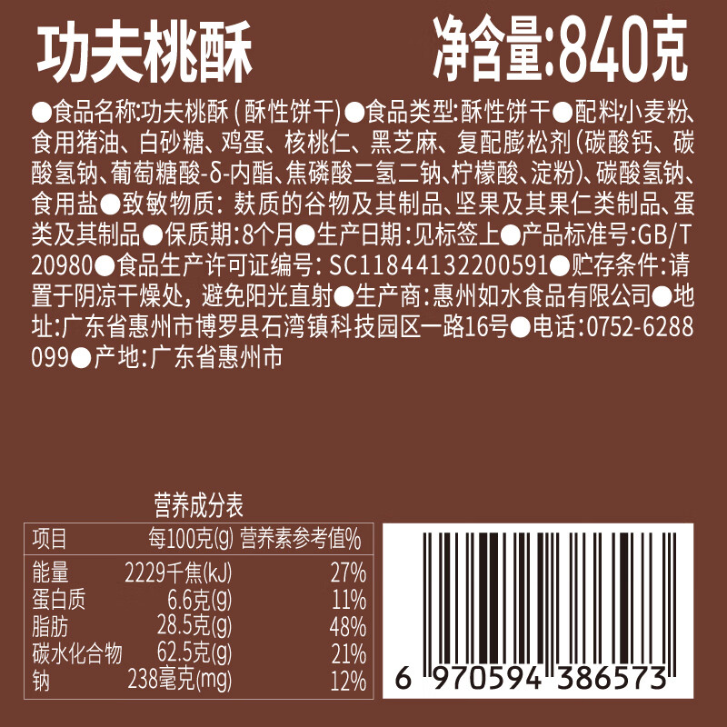 如水 功夫桃酥840g