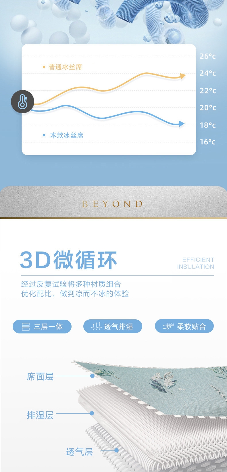 凉而不冰细腻亲肤席面冰丝;具有透气的特性,细腻光滑;轻便折叠更易收纳