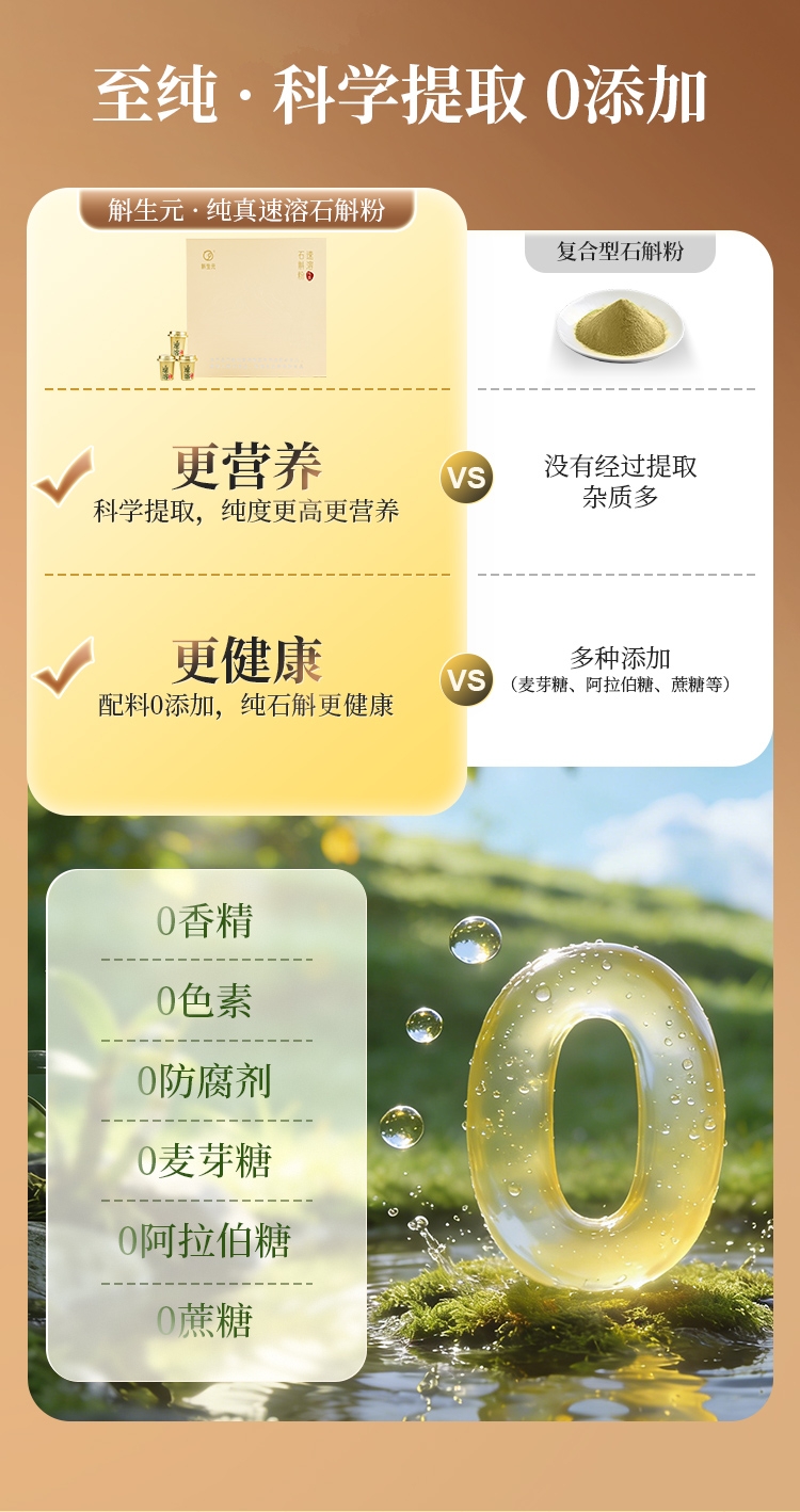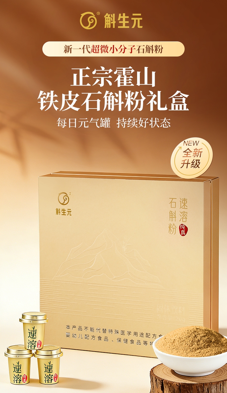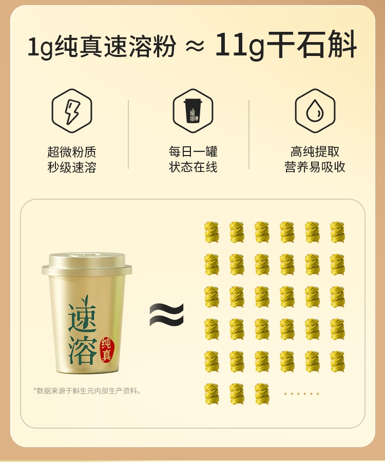 霍山核心产区三年生铁皮石斛粉;纯净,0添加;1克斛生元纯真速溶石斛粉=11克干石斛