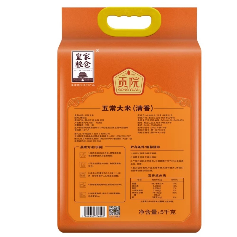 皇家粮仓 中粮贡院五常大米清香5kg