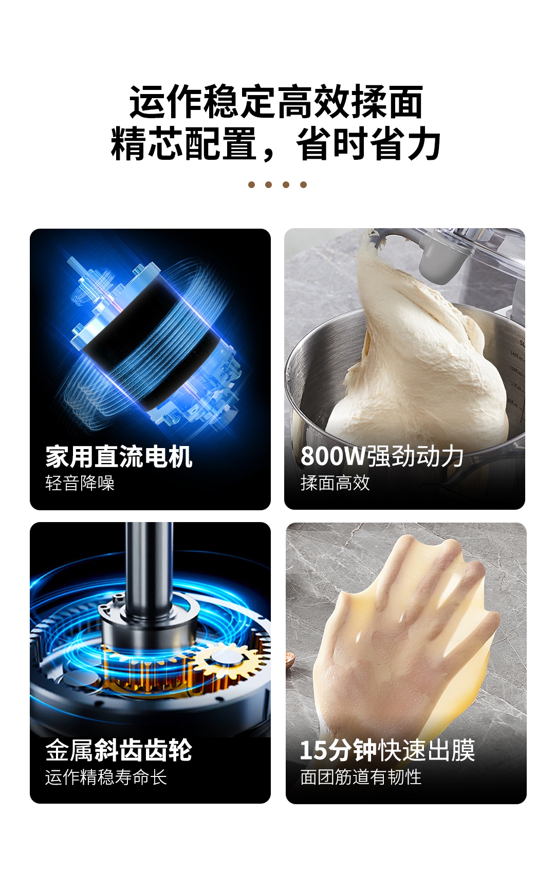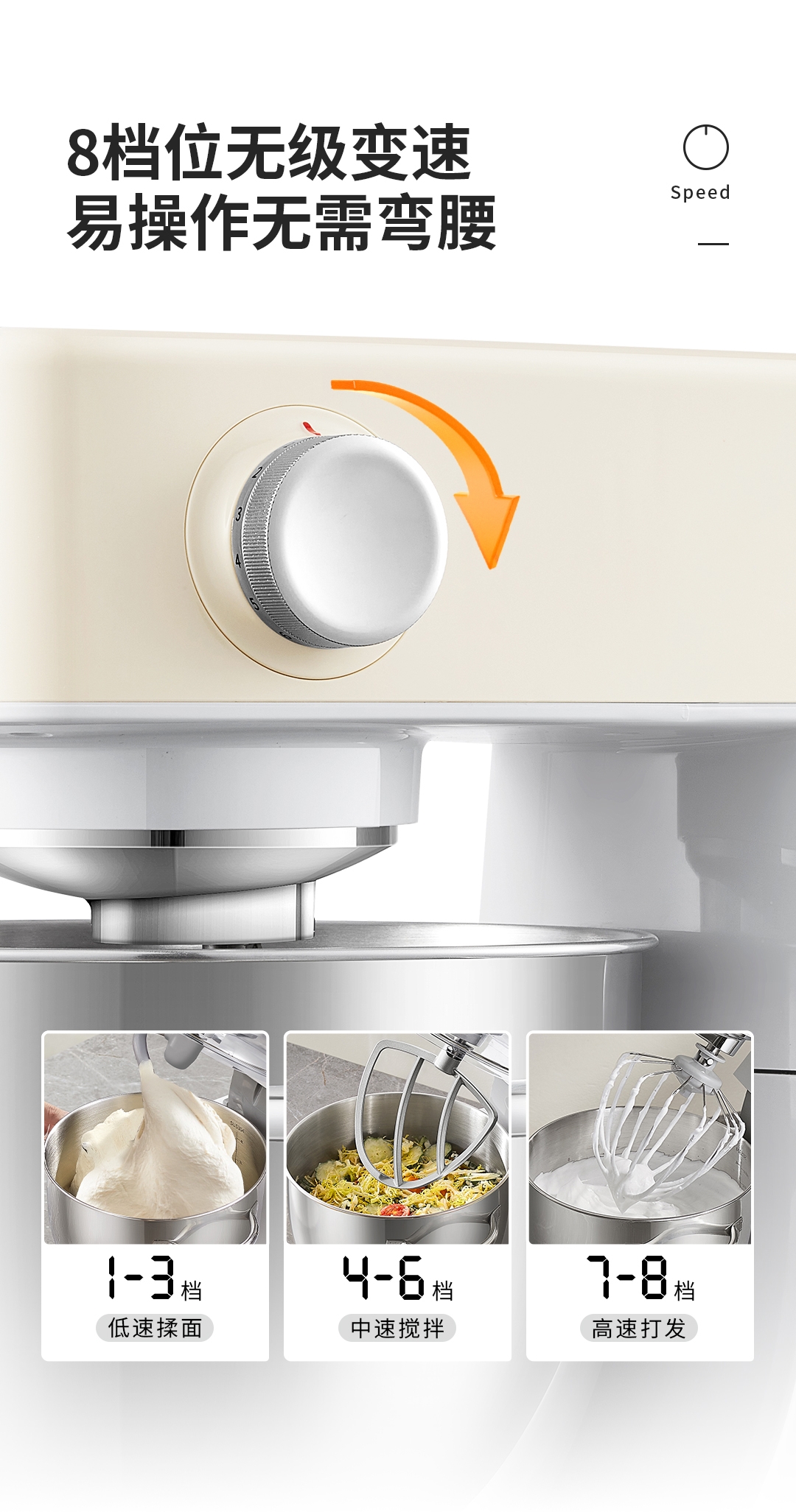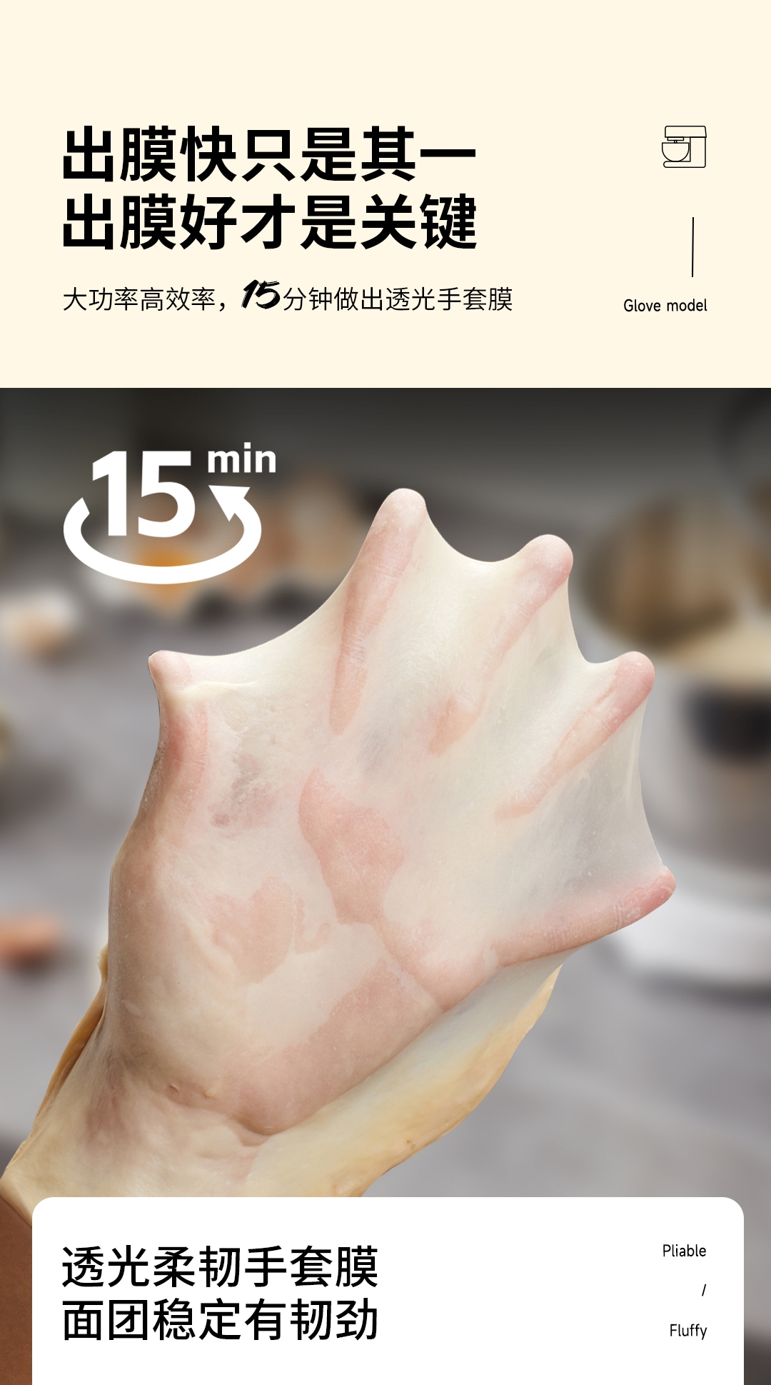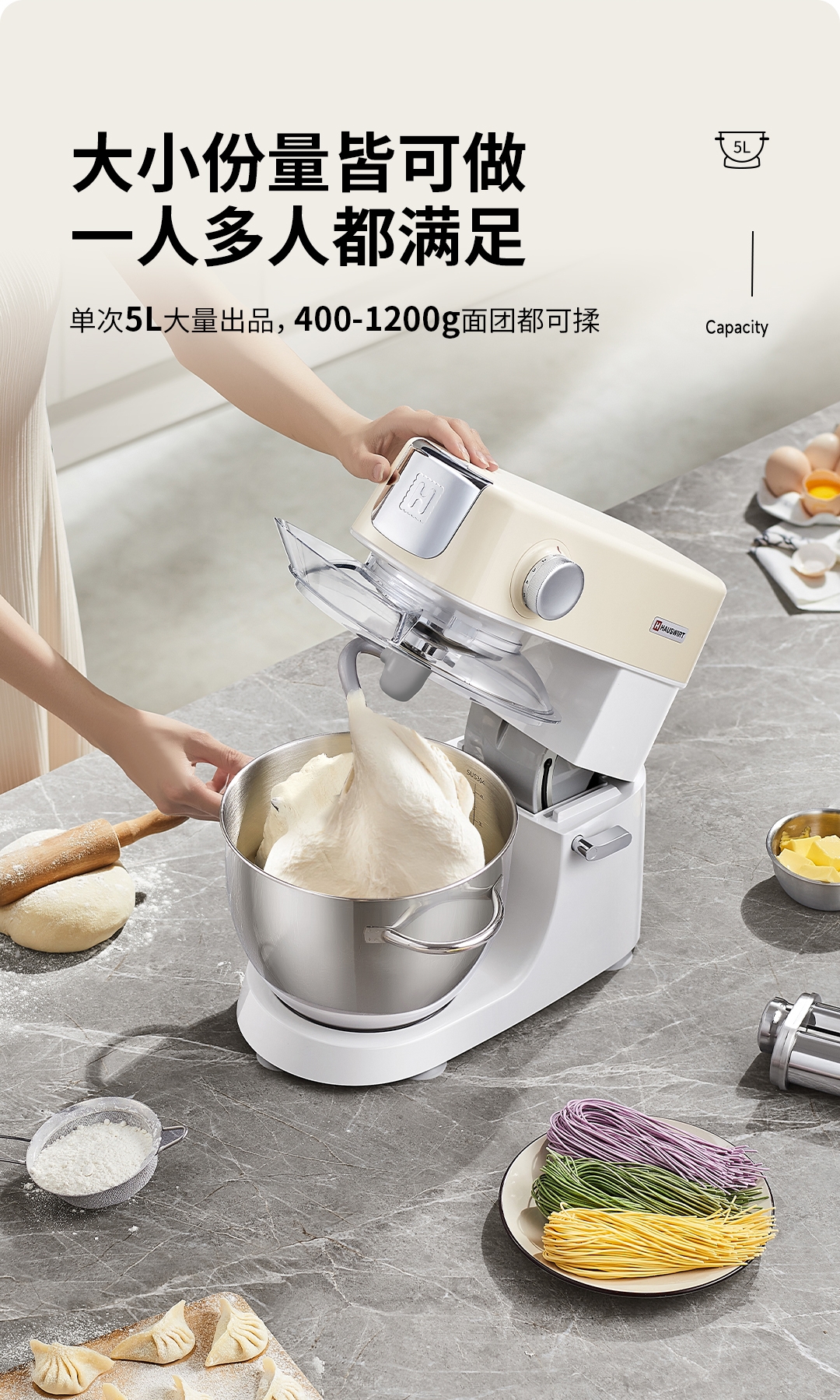 大功率高效,15分钟快速出膜;8档变速调节,单旋钮操控,简单易上手;小体积大容量:5L大容量,体积小巧不占地