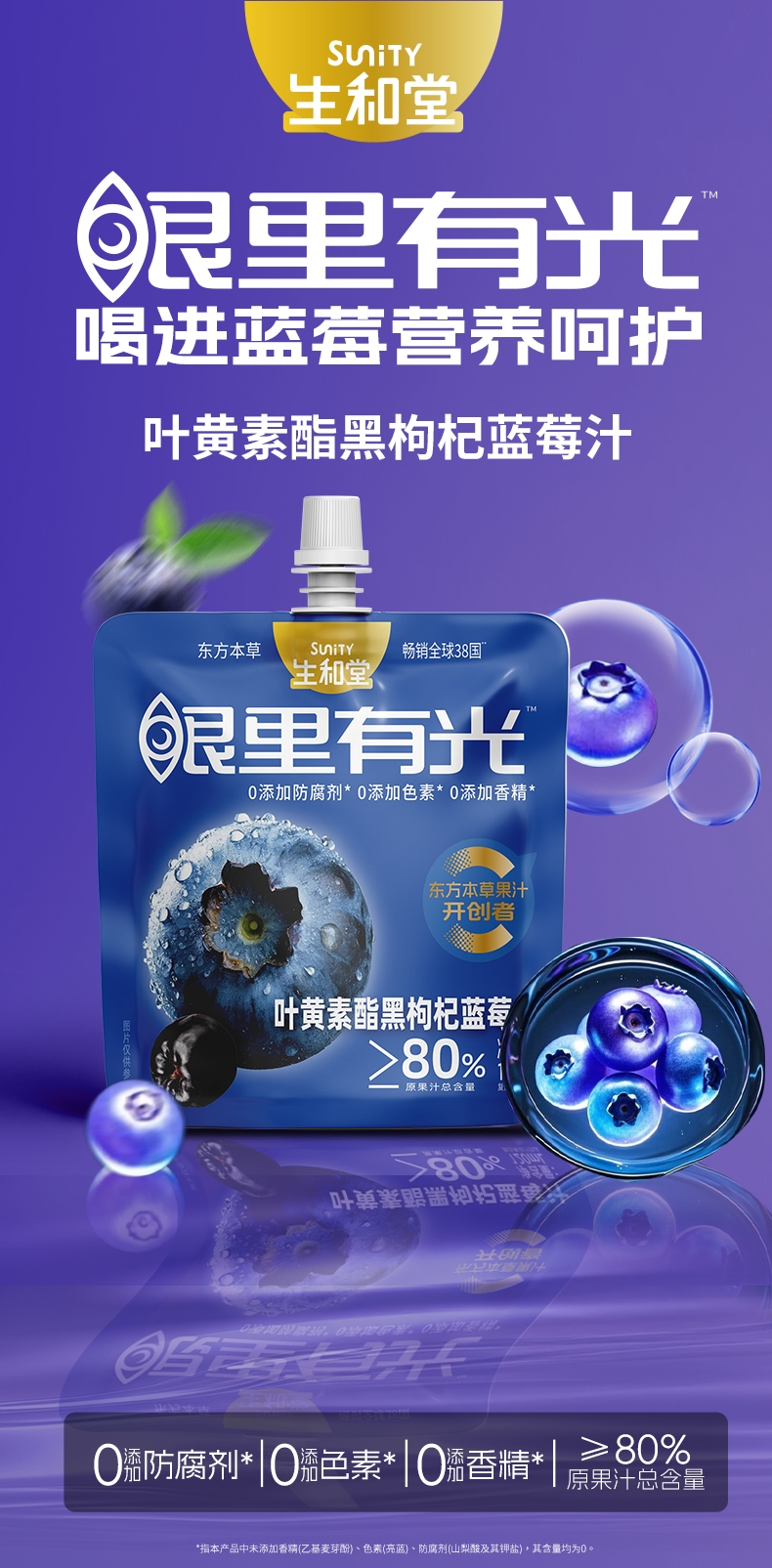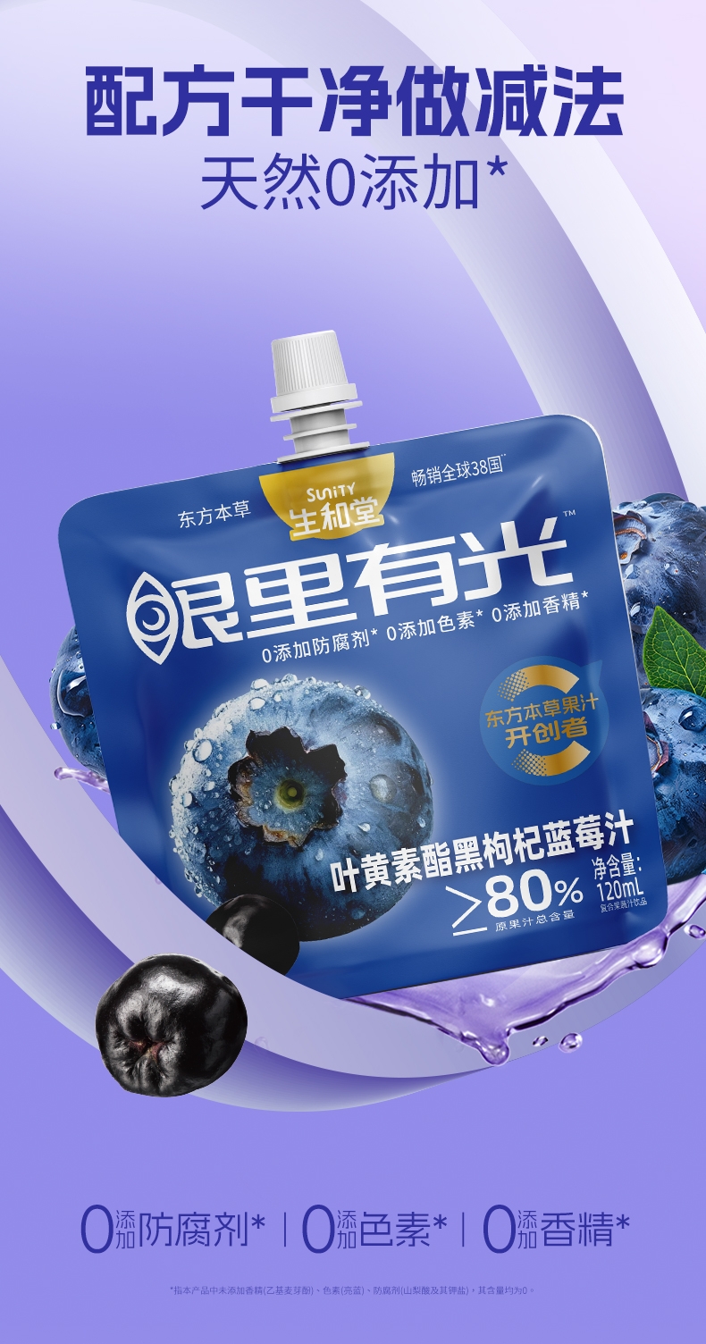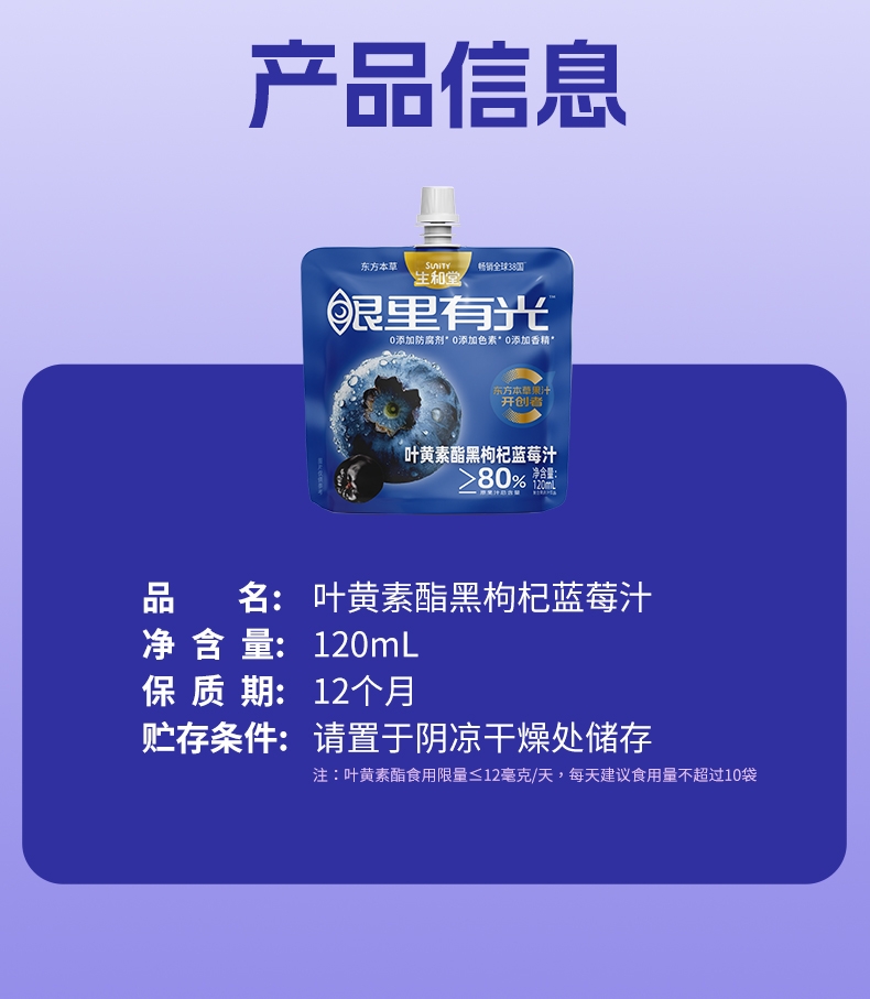 生和堂 叶黄素酯黑枸杞蓝莓汁120ml*7袋