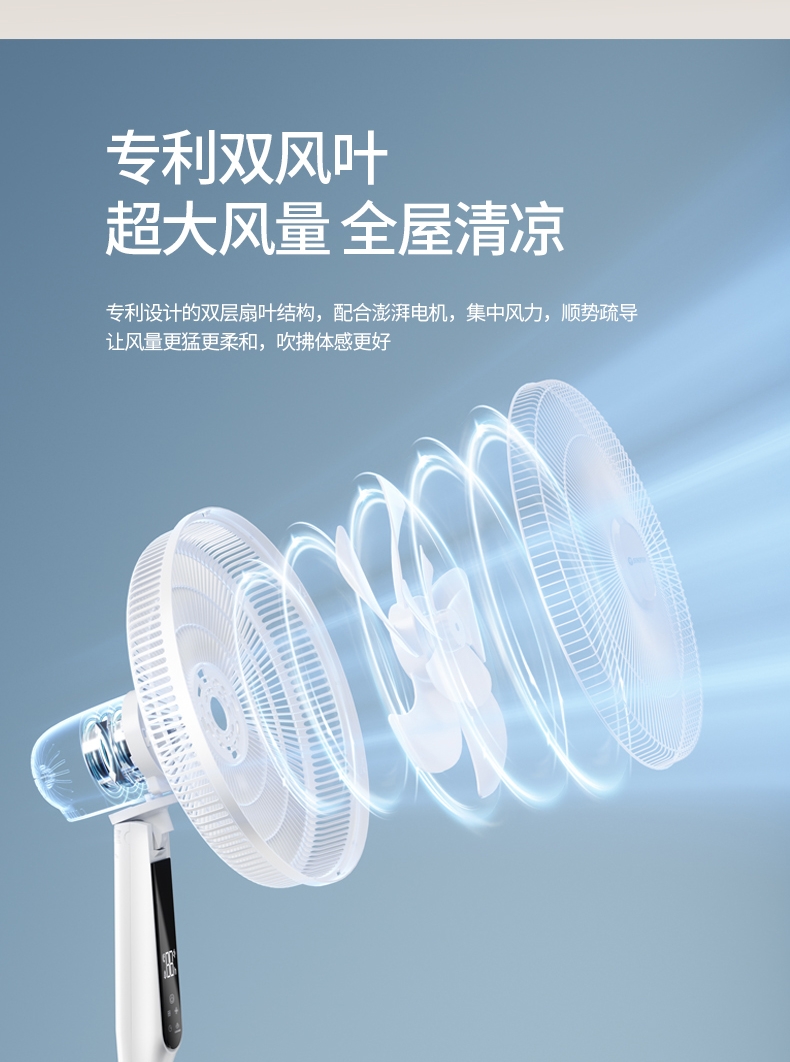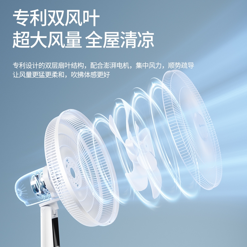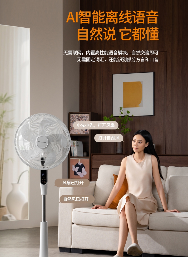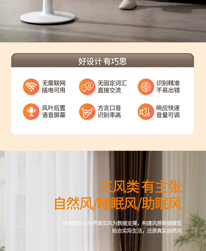 智能离线语音;3种风类(自然风、睡眠风、助眠风);专利双风叶