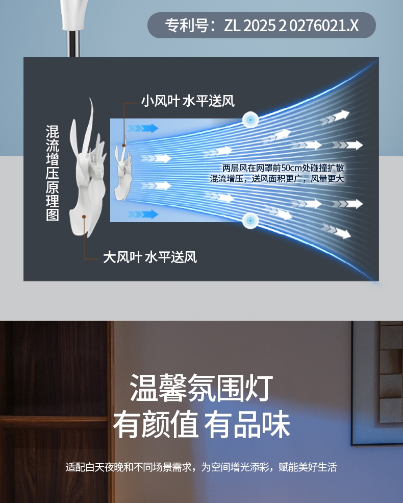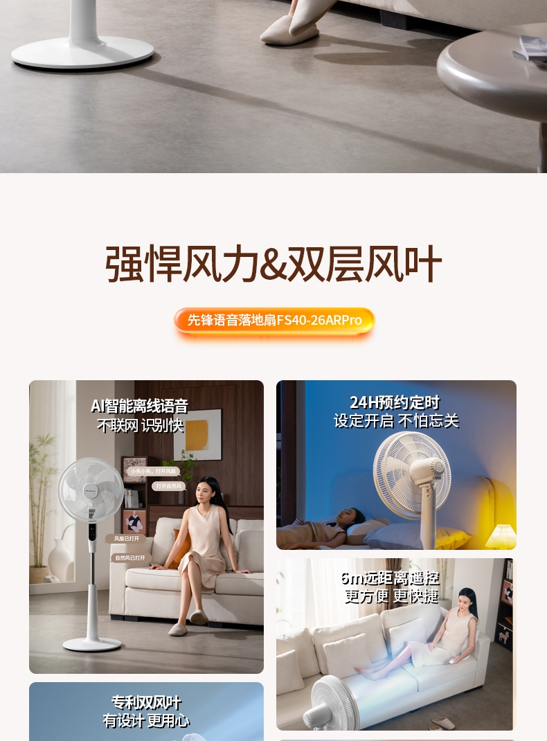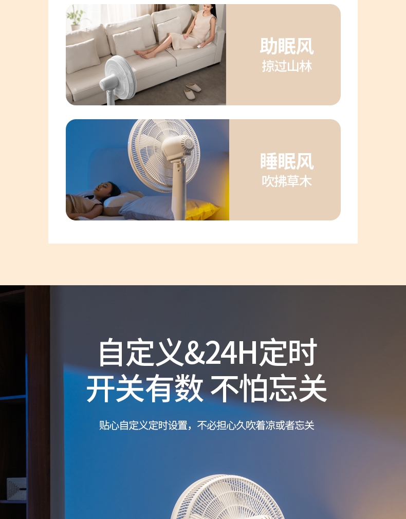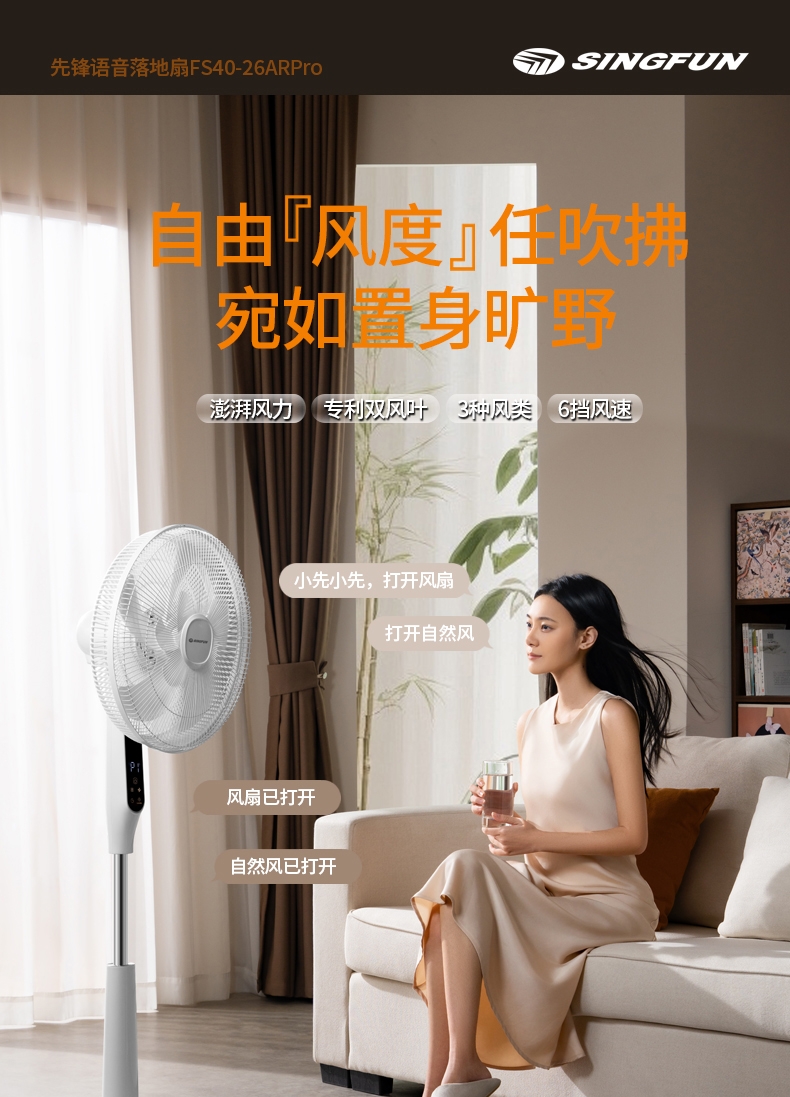 智能离线语音;3种风类(自然风、睡眠风、助眠风);专利双风叶