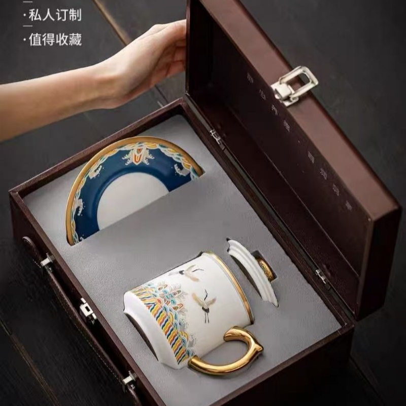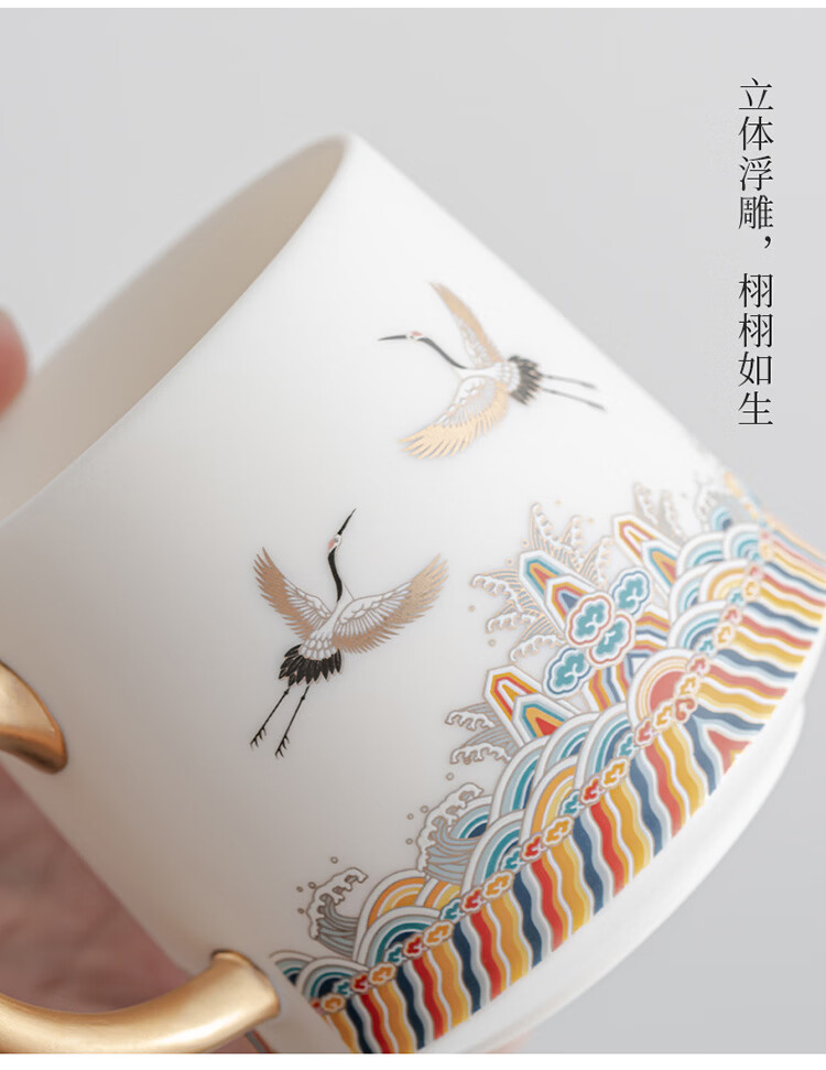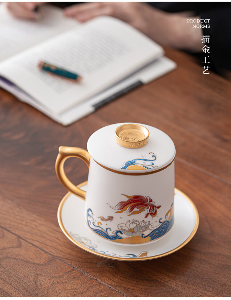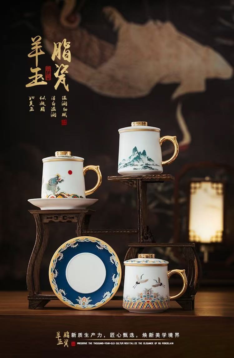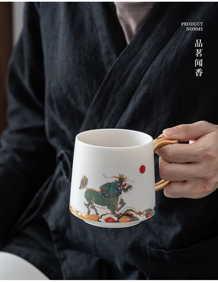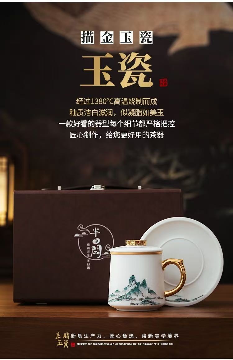易硕 羊脂玉素烧描金办公杯茶杯马克杯YS-267