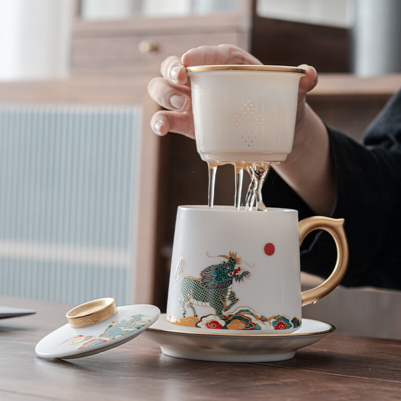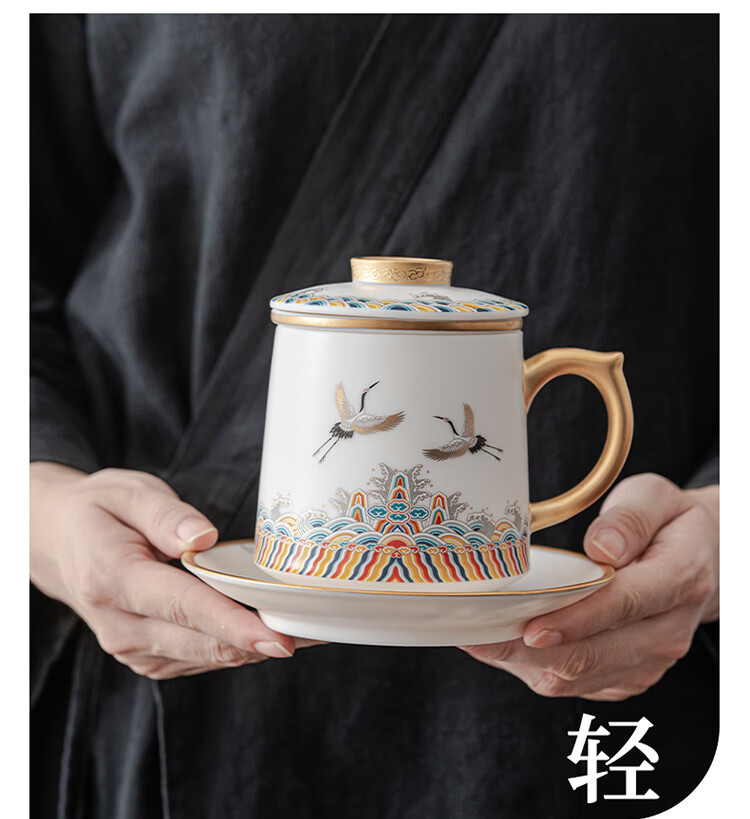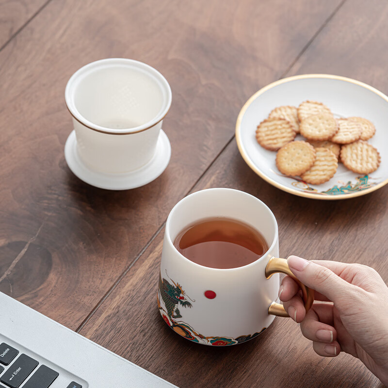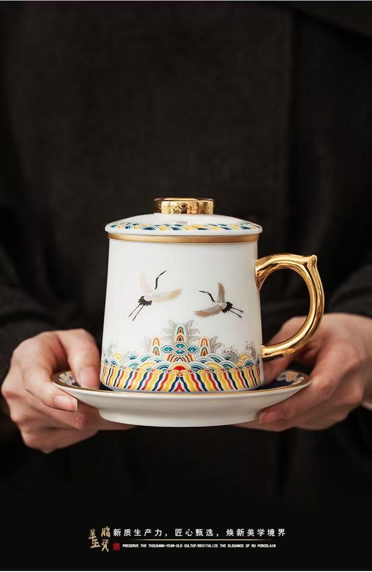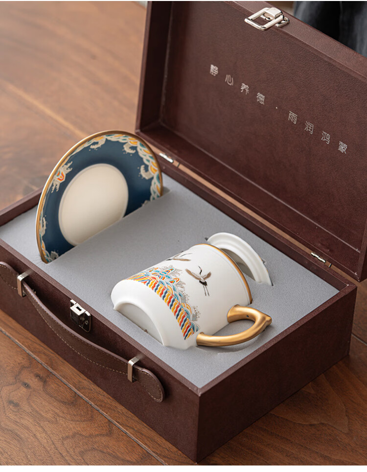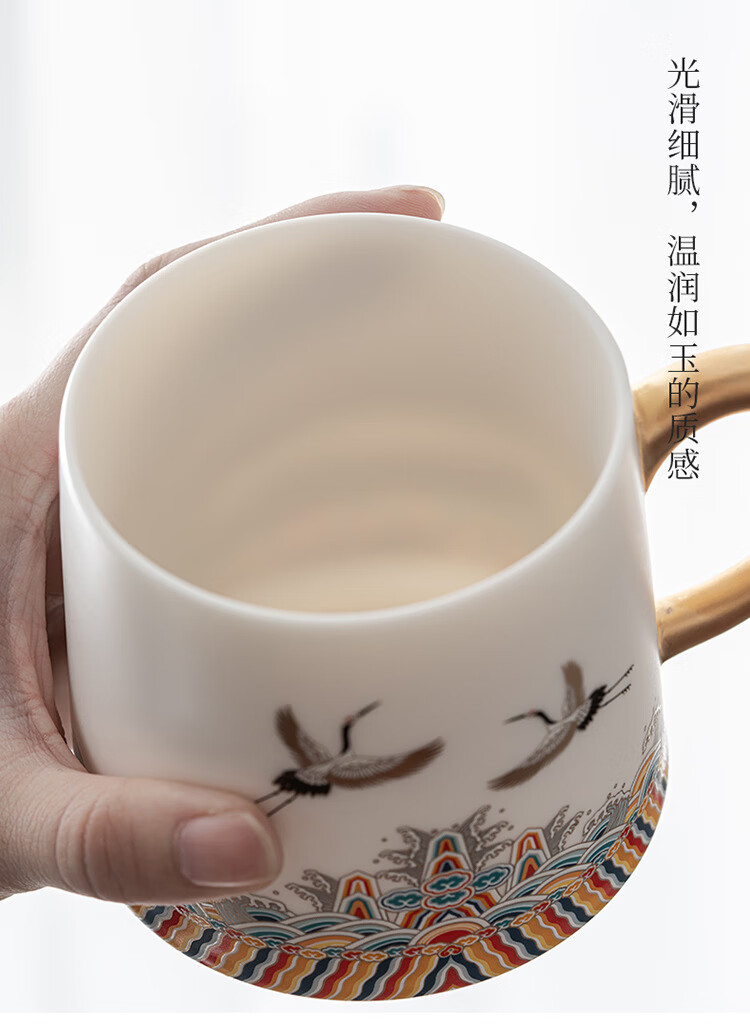 易硕 羊脂玉素烧描金办公杯茶杯马克杯YS-267