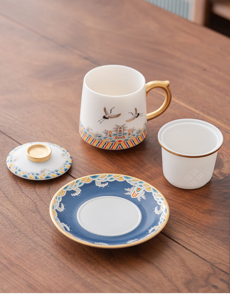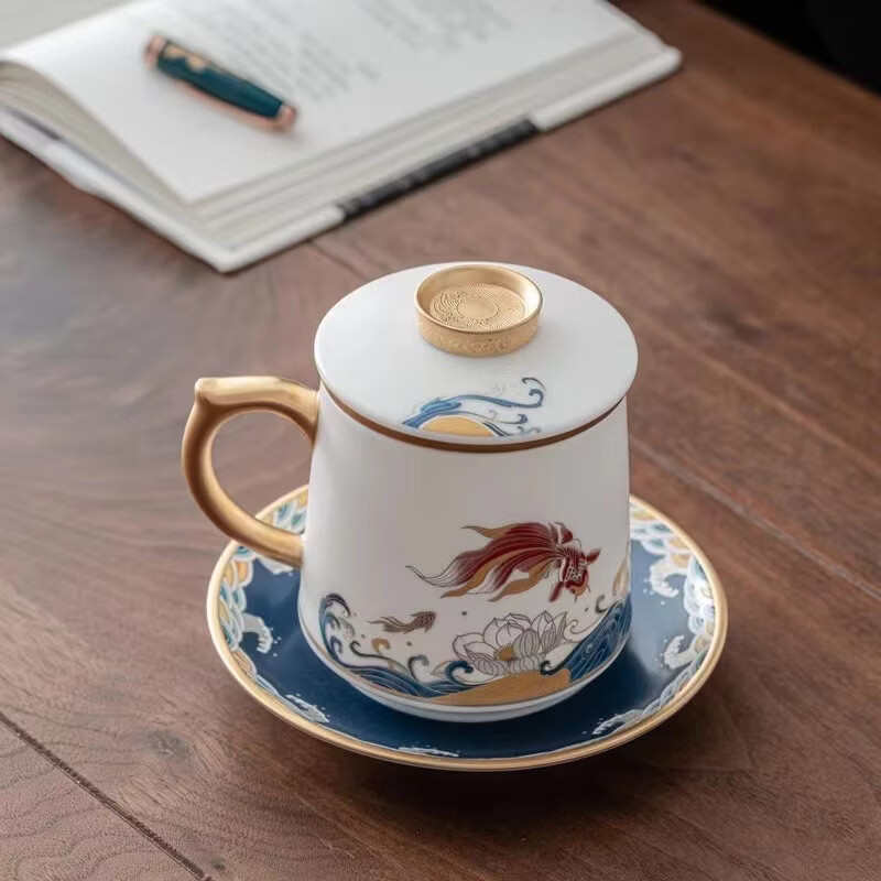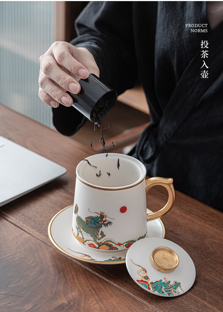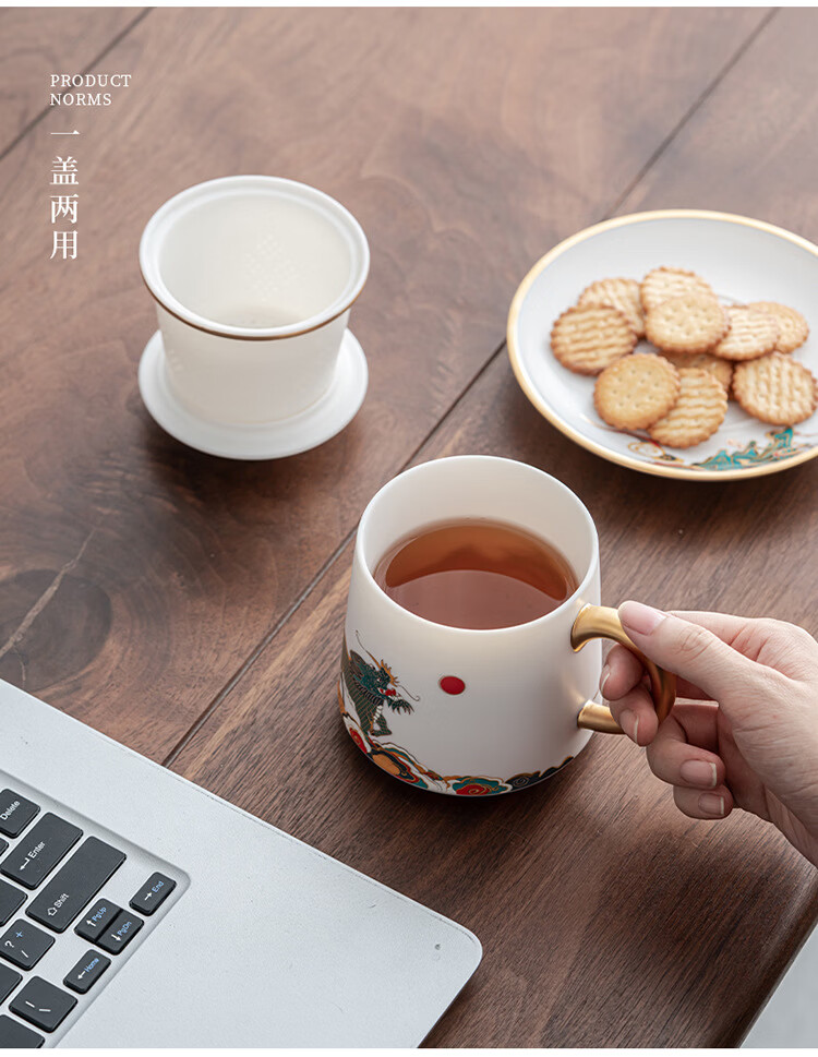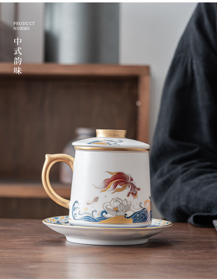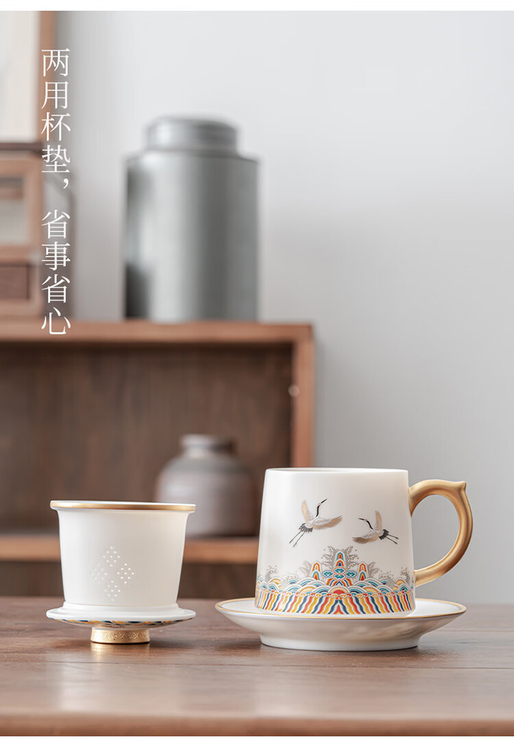 易硕 羊脂玉素烧描金办公杯茶杯马克杯YS-267