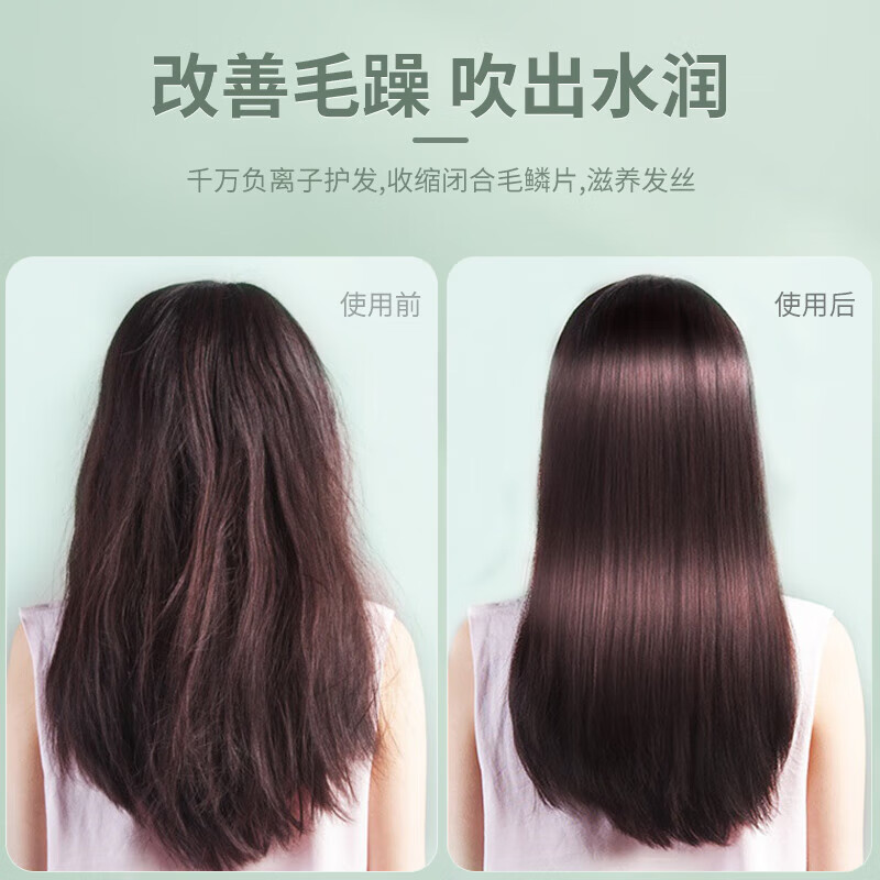 离心式六叶扇,千万级负离子护发技术;大风量快干技术,波纹式发热丝,热量更均衡;智能恒温技术,过热保护技术