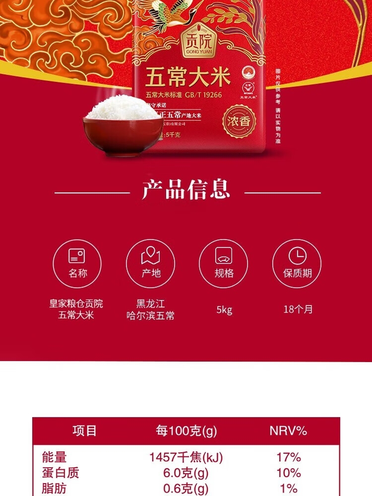 产自黑龙江五常核心产区,日照充足稻香自然;米粒晶莹饱满有光泽,煮饭软糯回甘唇齿留香;5公斤家庭装实用划算,央企品质从田间到餐桌
