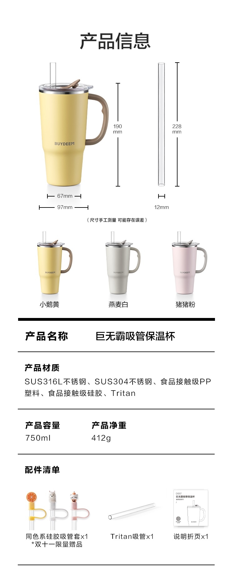 配件清单:Tritan吸管*1,说明书折页*1