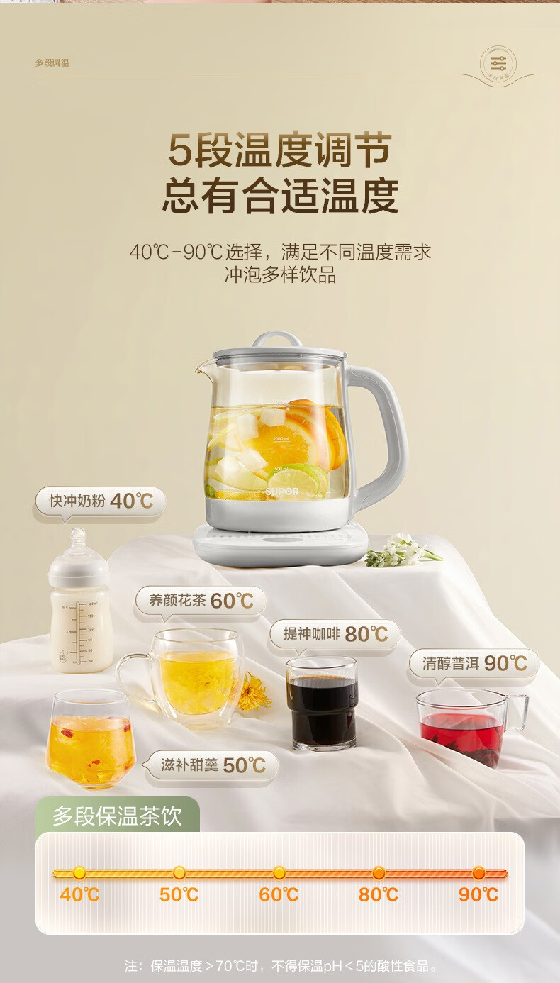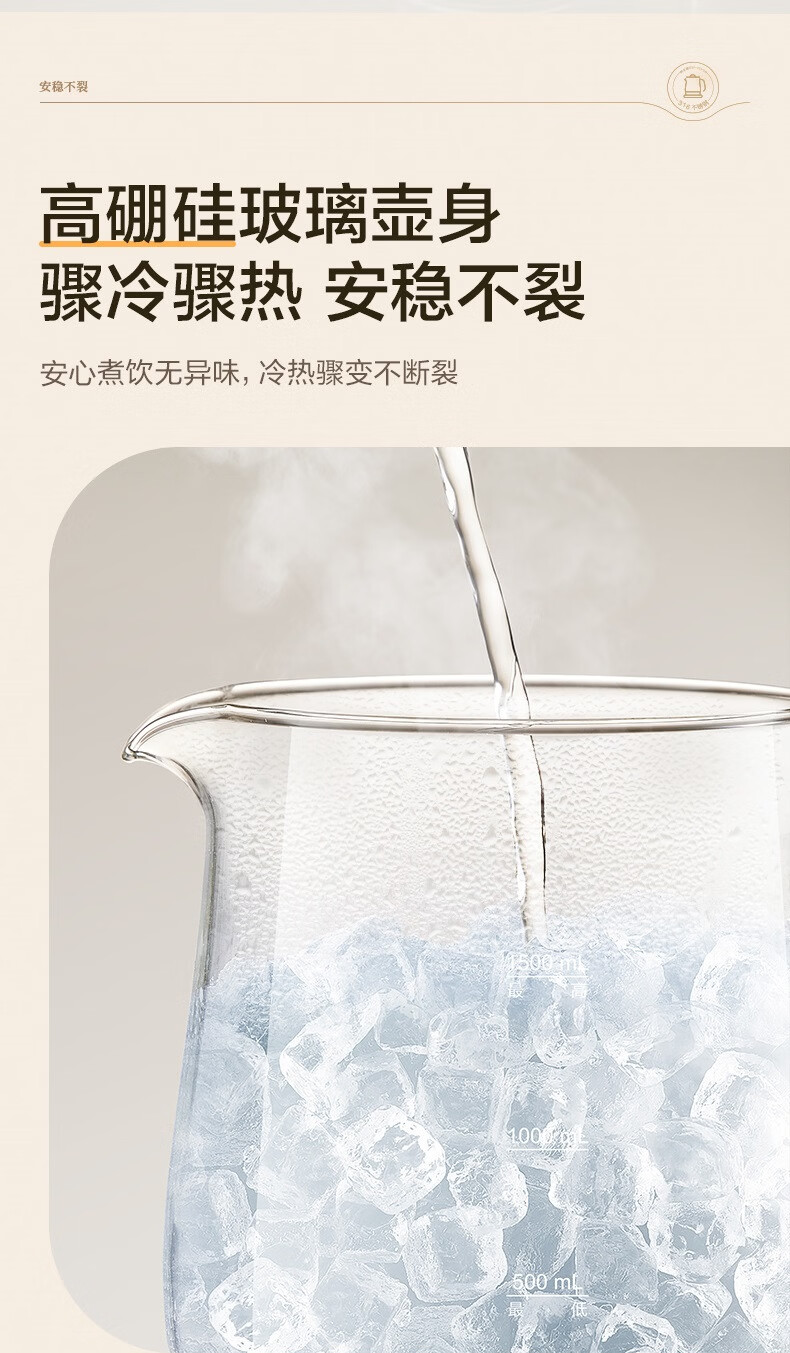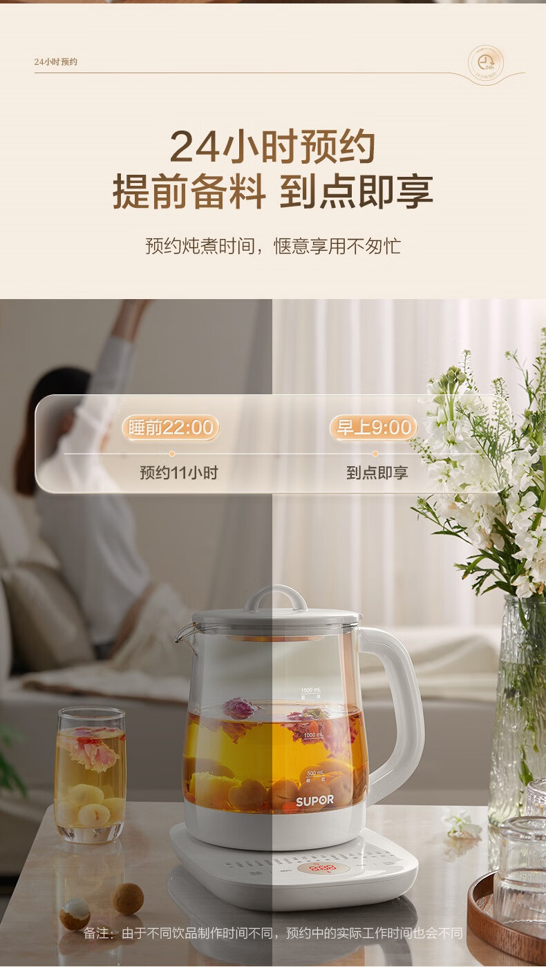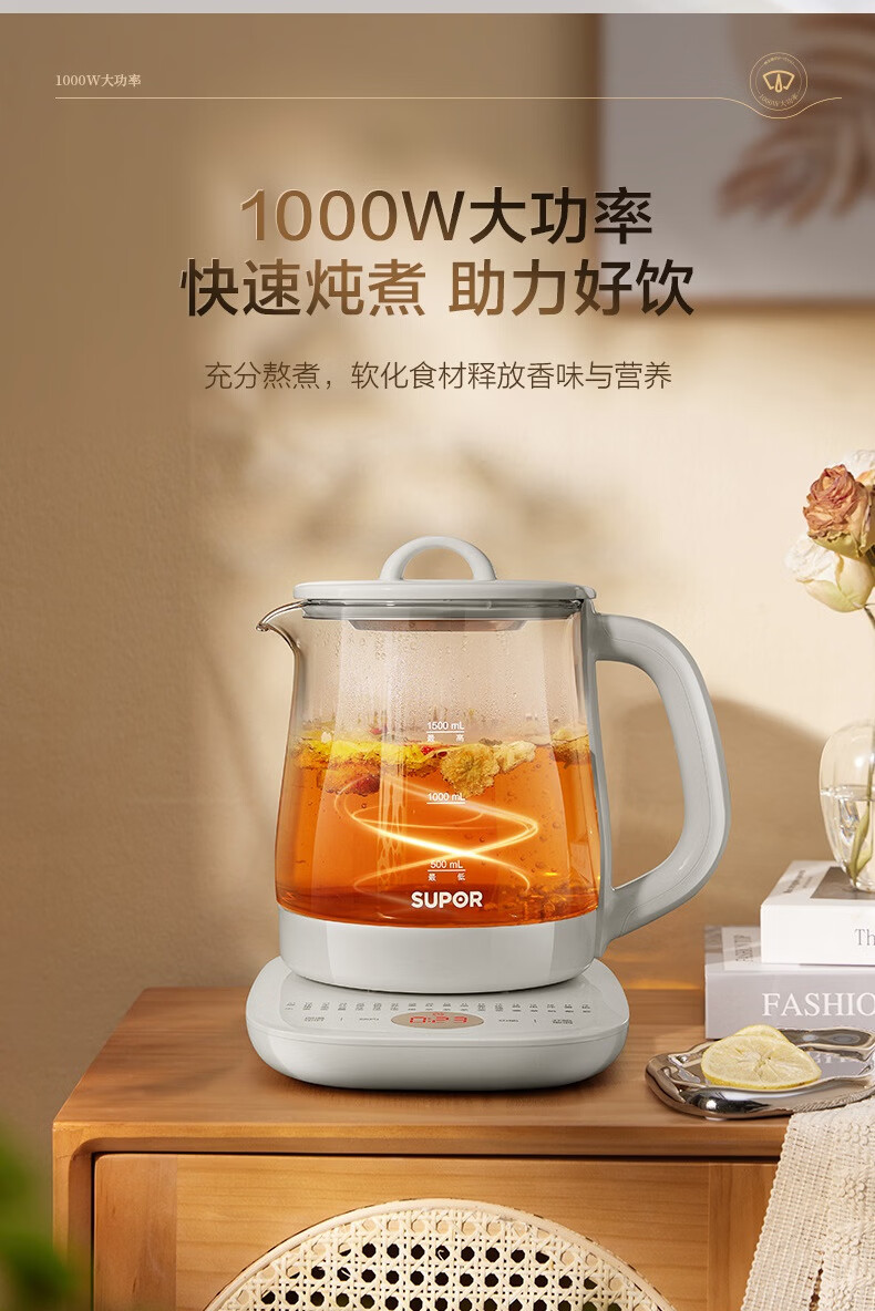 316L 不锈钢加热盘,健康更安心;18 大菜单,畅享花样饮品;1000W 大功率,炖煮不久等