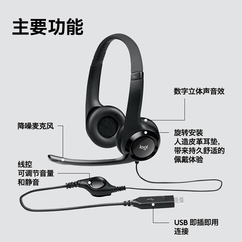 罗技 有线耳机耳麦H390