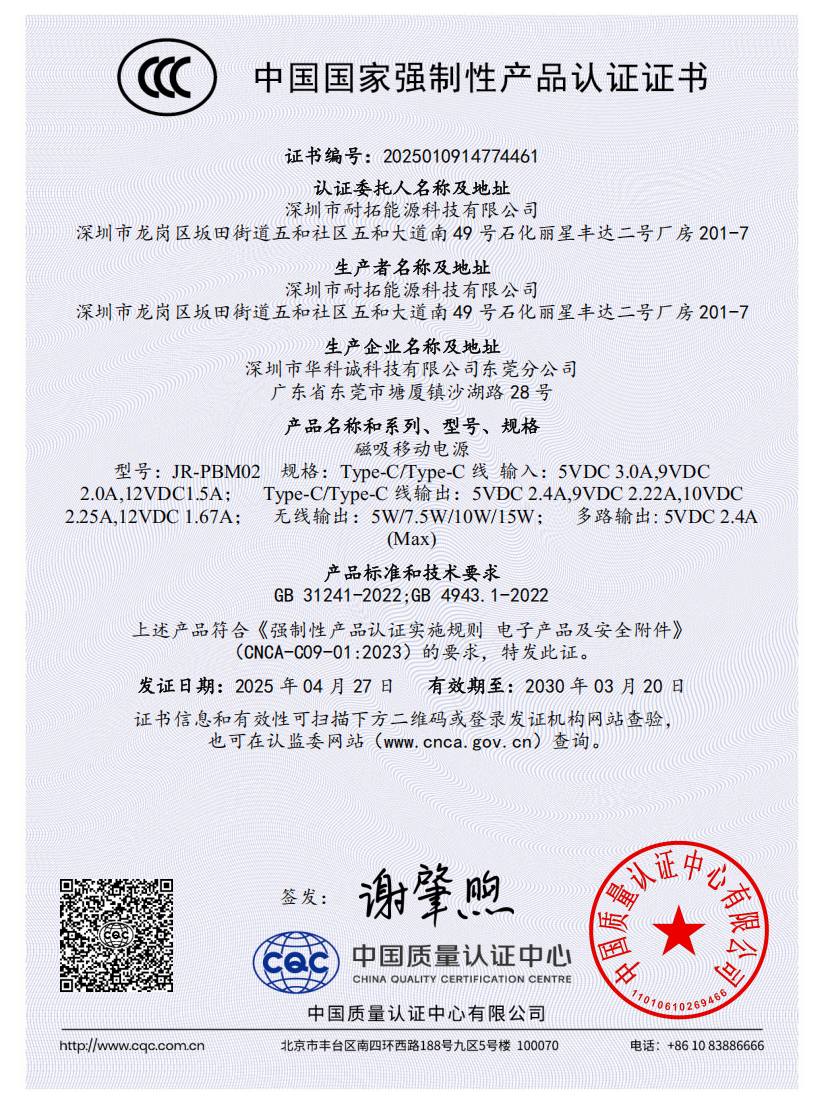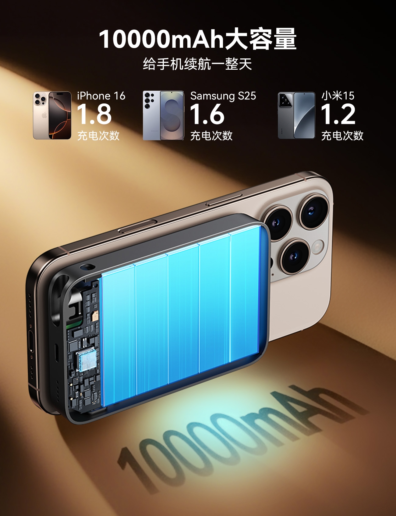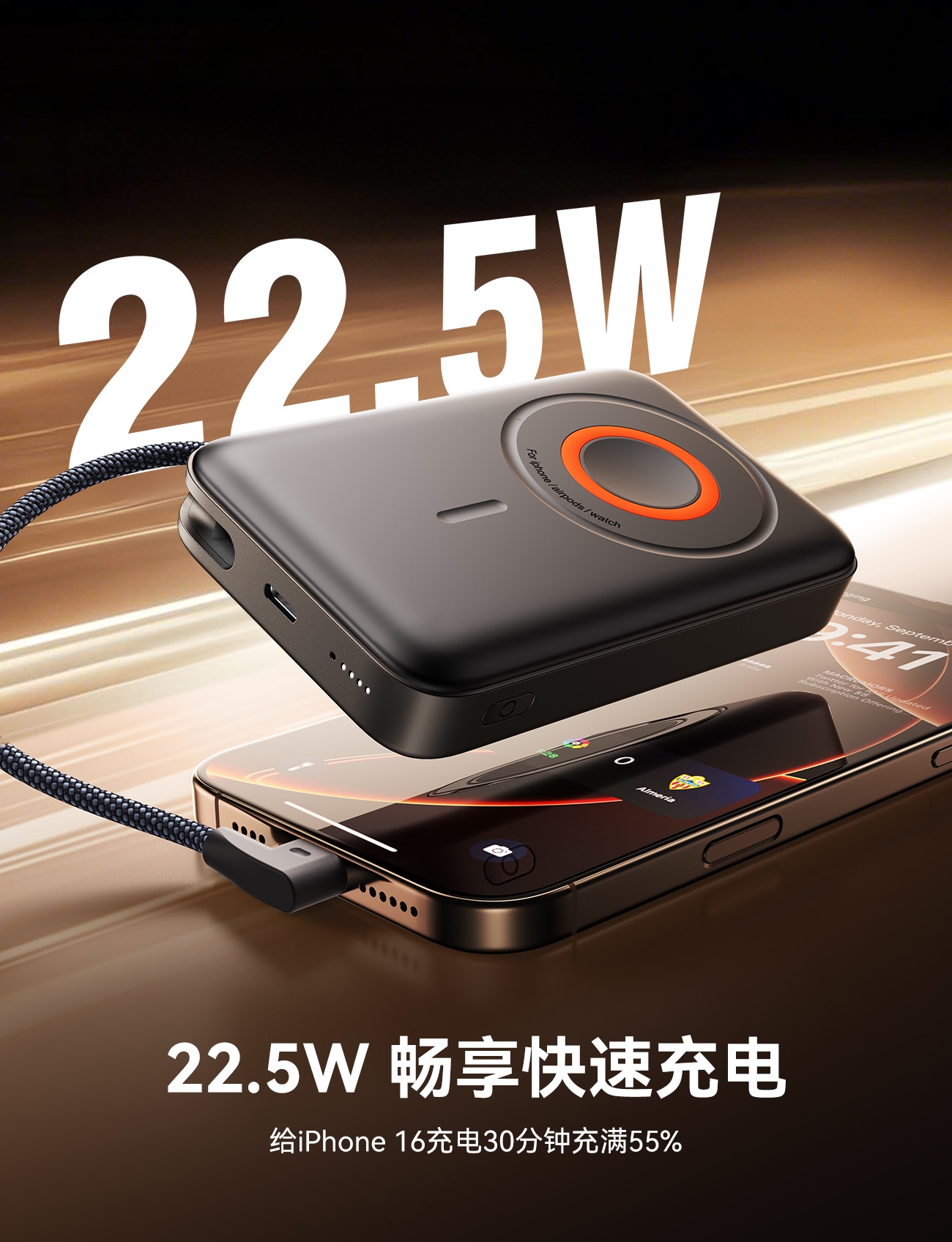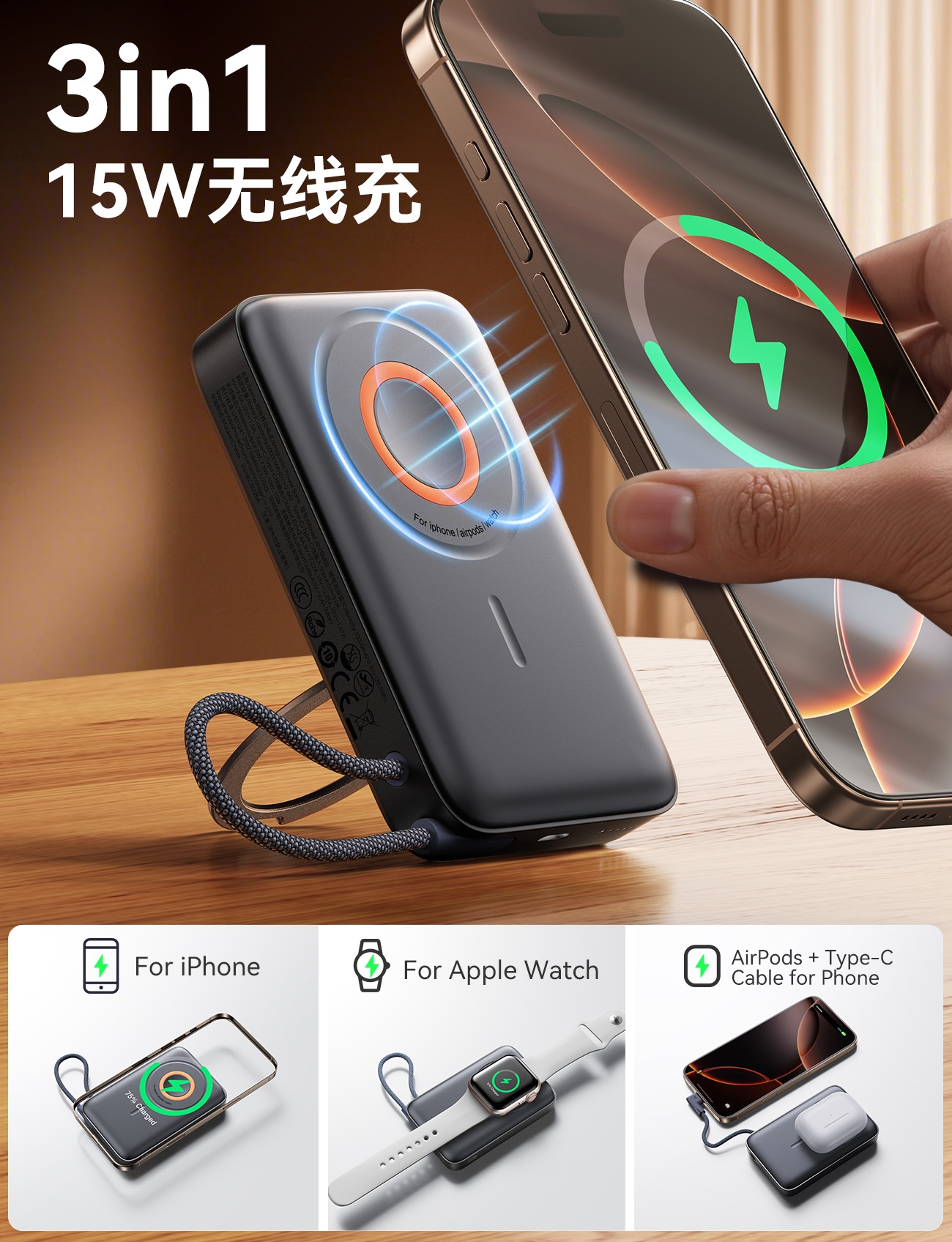 机乐堂 三合一磁吸移动电源JR-PBM02