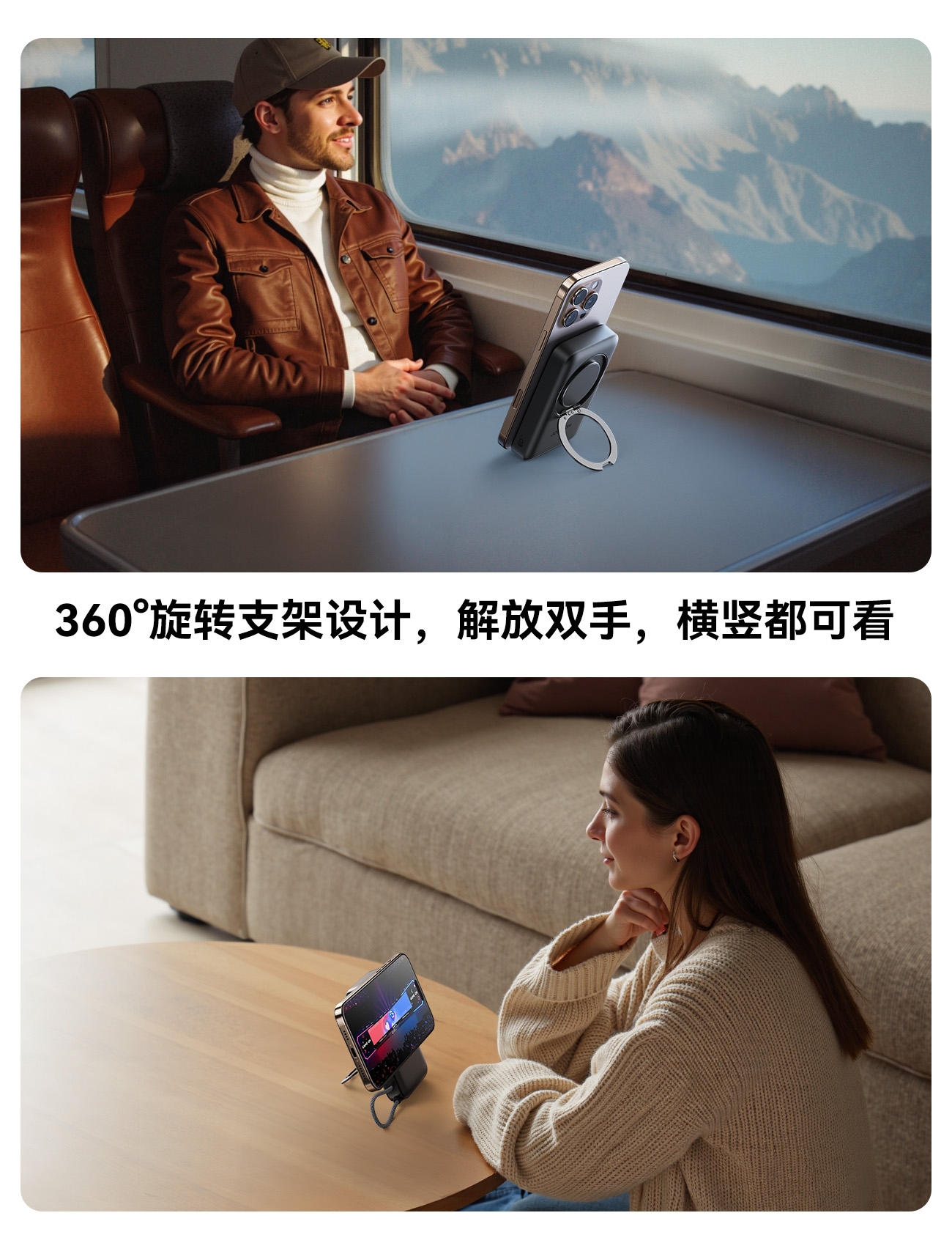 无线充、有线快充、手表&耳机充,一个就够了,苹果用;内置360°旋转指环支架,支持各种角度支撑和提拉;Type C口和Type C线均支持22.5W快充