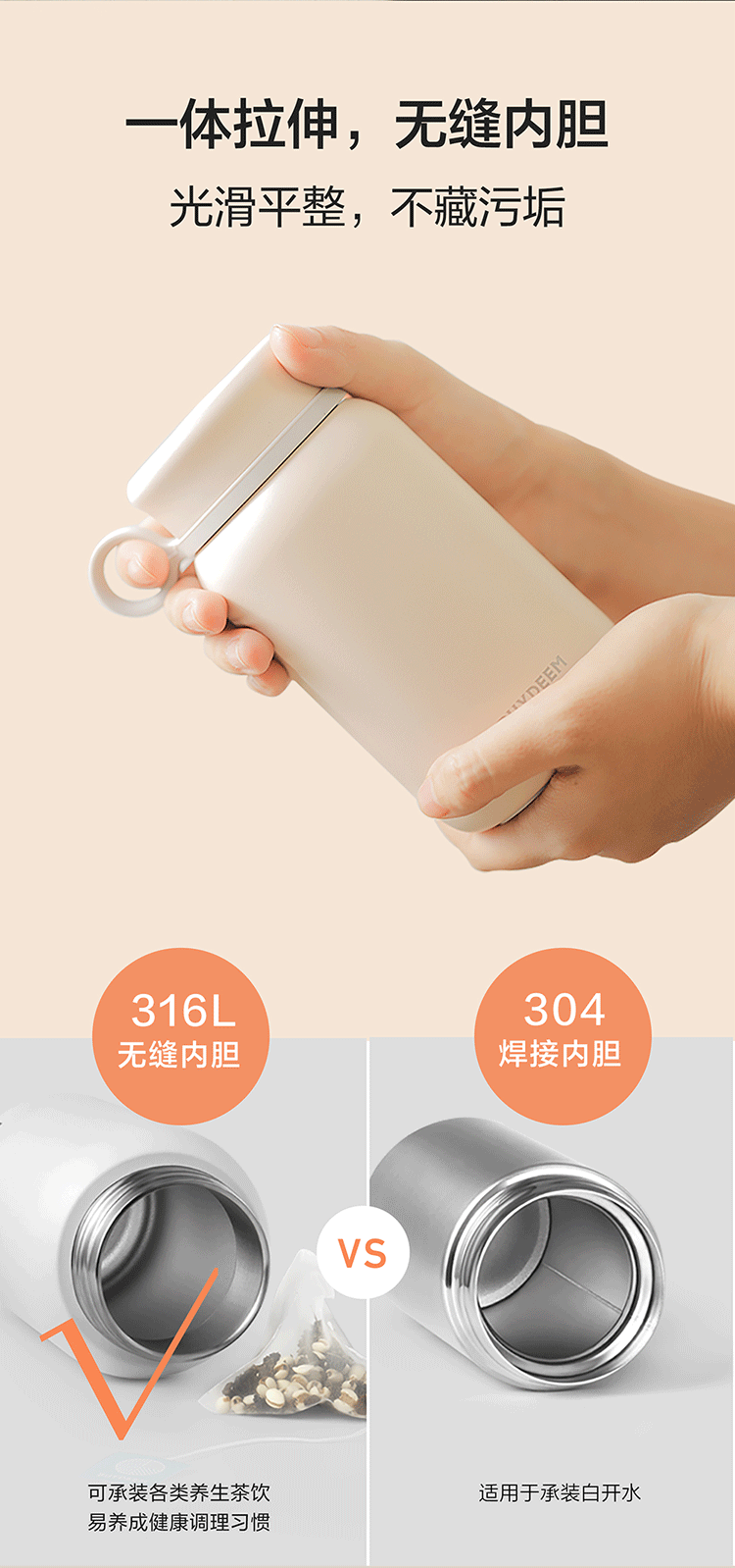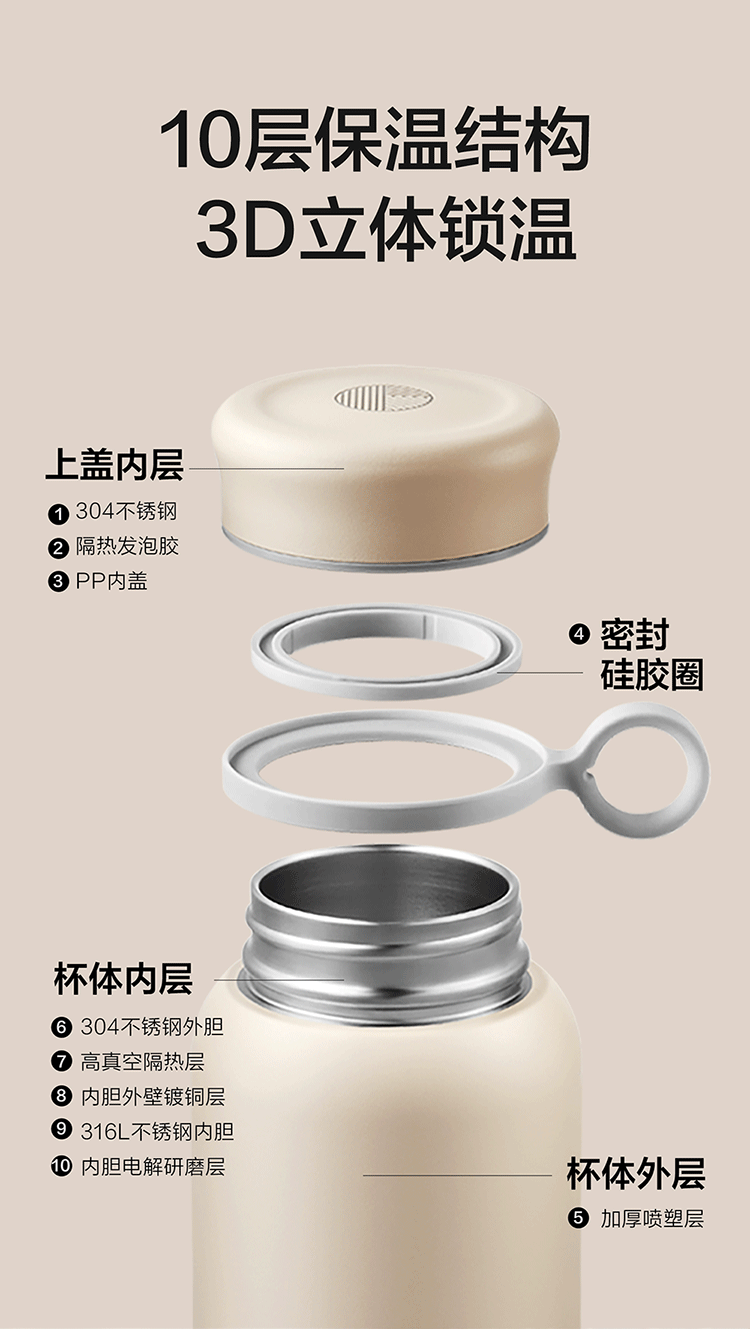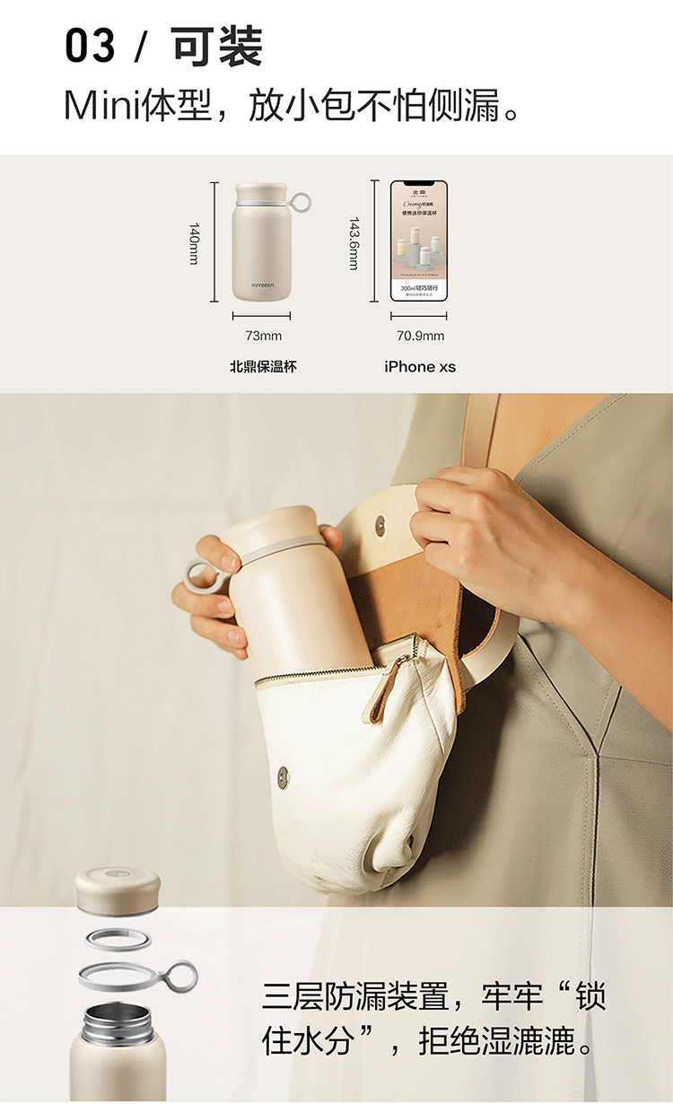 300ml容量,容量轻巧,外带无负担;多种携带方式:可提、可背、可装、可车载; 10层保温3道防漏,水份和温度都跑不掉
