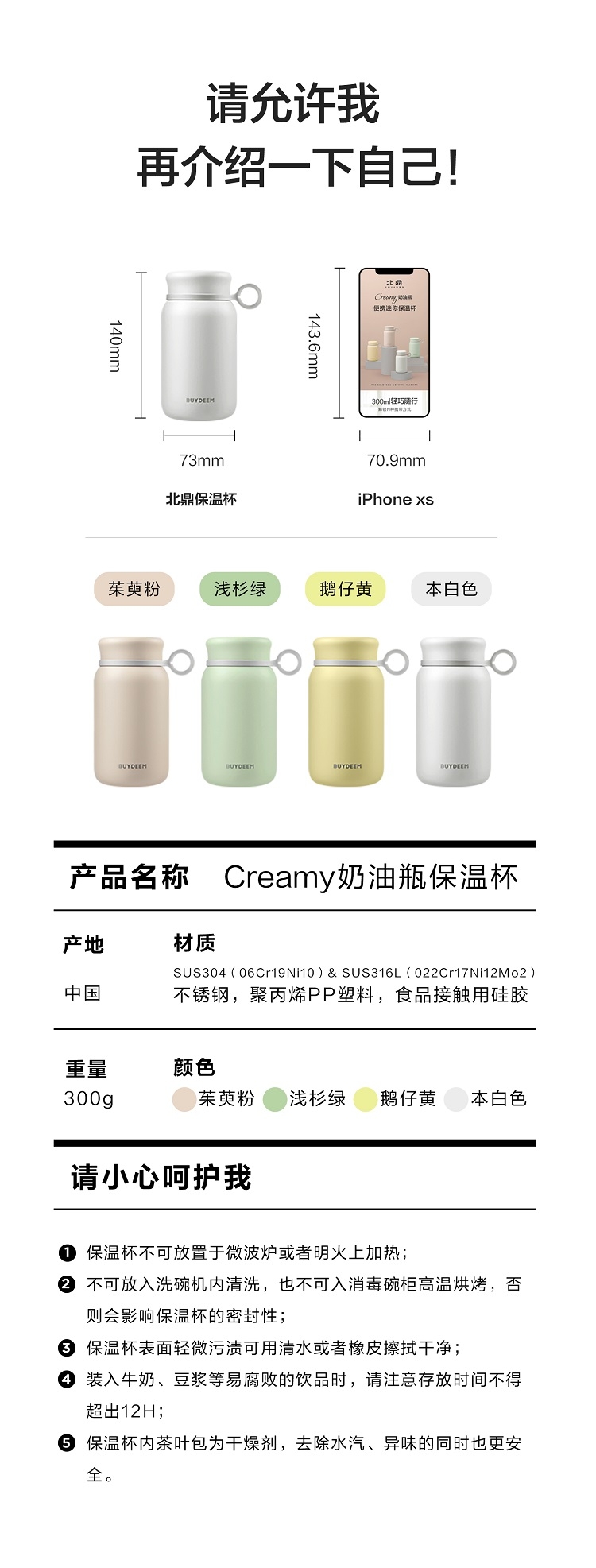 北鼎 经典款迷你保温杯300mlCD1013