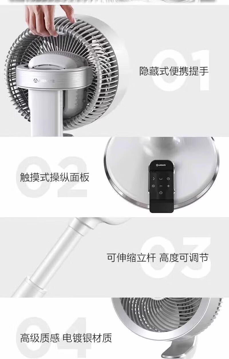 32档风力选择;无刷数码电机,音小风大;按压式,高度调节,方便快捷