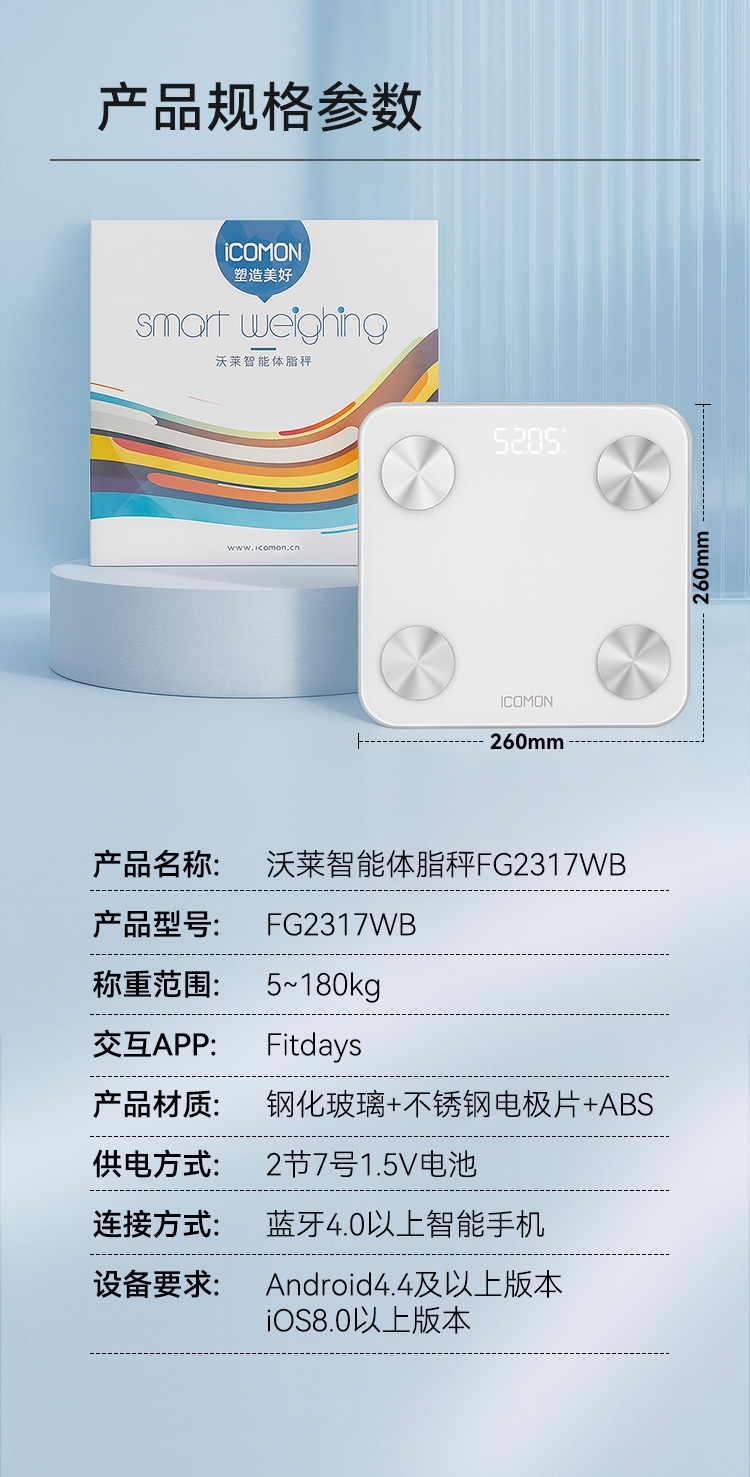 沃莱 ICOMON体脂称蓝牙FG2317WB