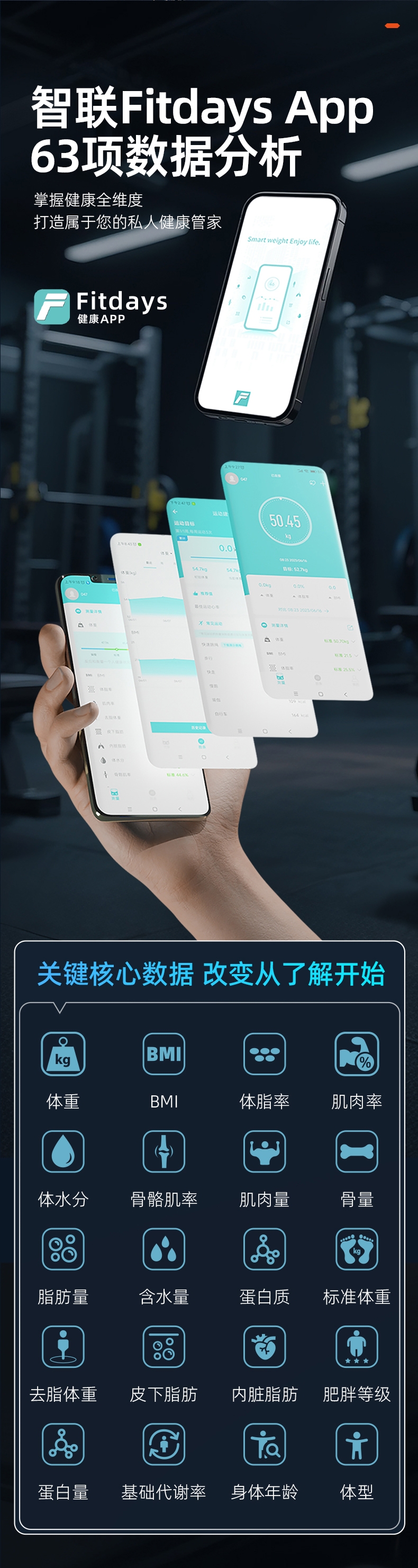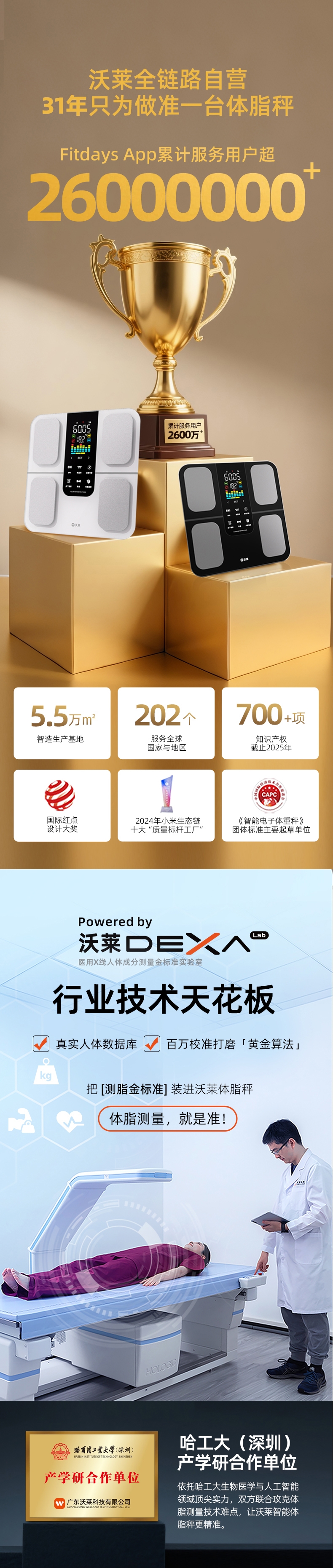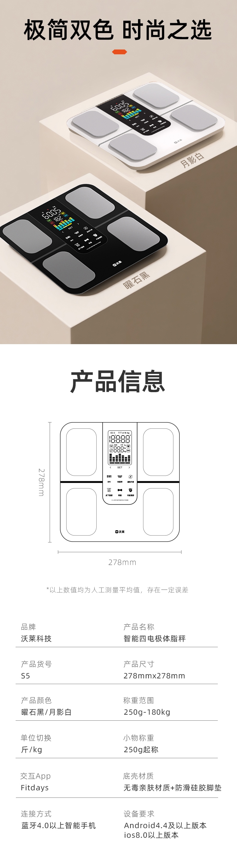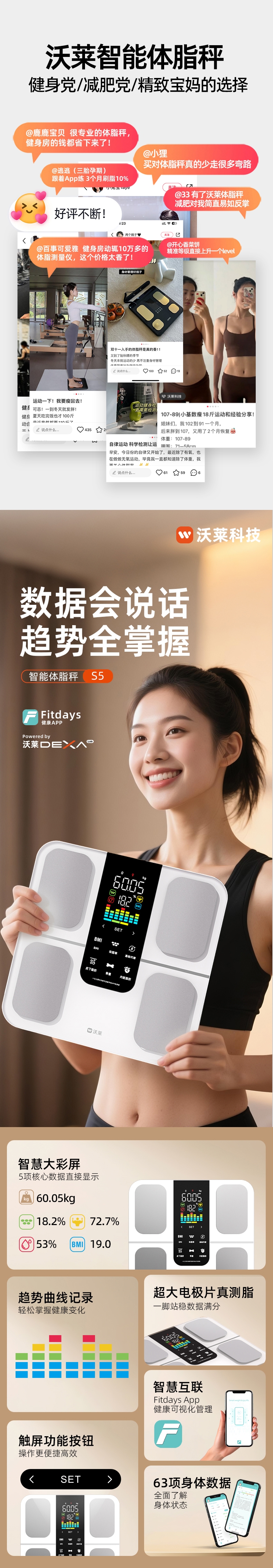 沃莱 智能体脂秤专业健身体脂称S5/FG2408LB电池款