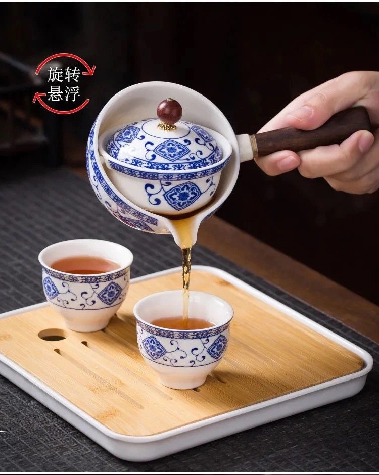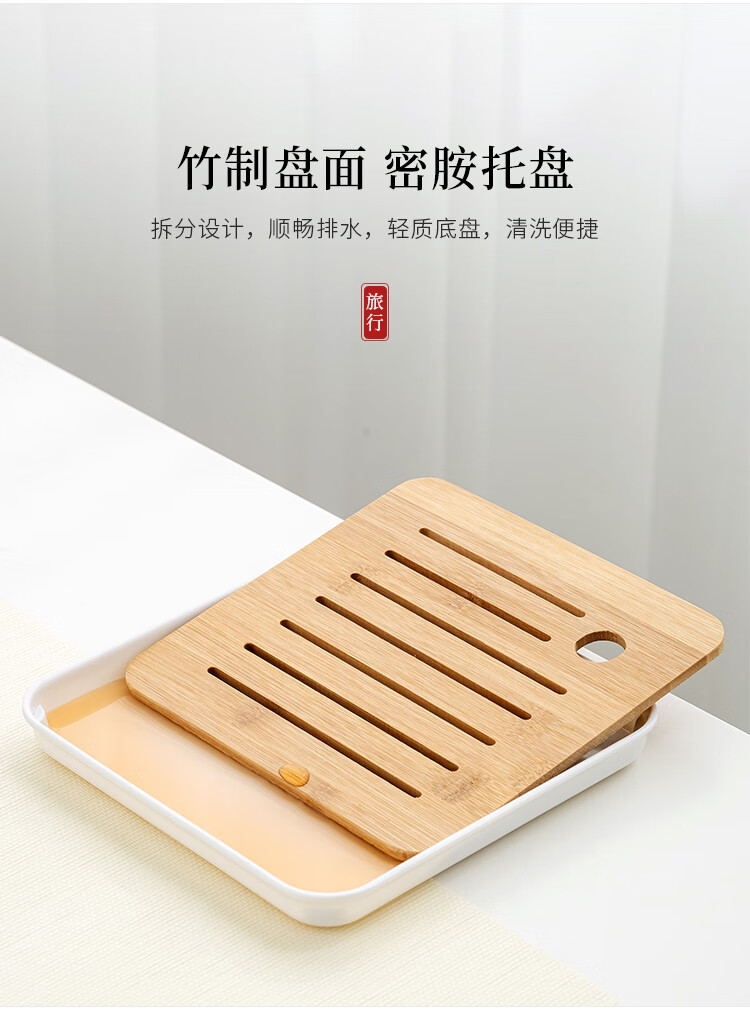 一壶四杯 轻旋出茶;竹制盘面 密胺托盘;一体收纳 便捷出行