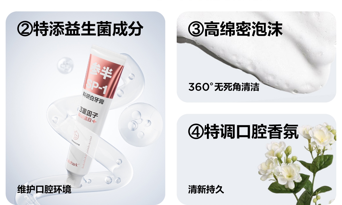 口腔护理全套装,一站式解决全家需求;科研级美白配方+天然抑菌成分,焕亮清新双效合一;高性价比家庭装,细节设计贴心更实用