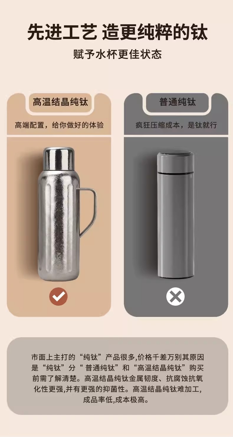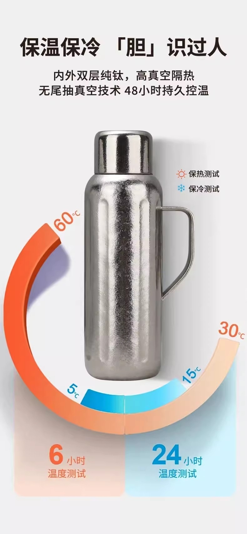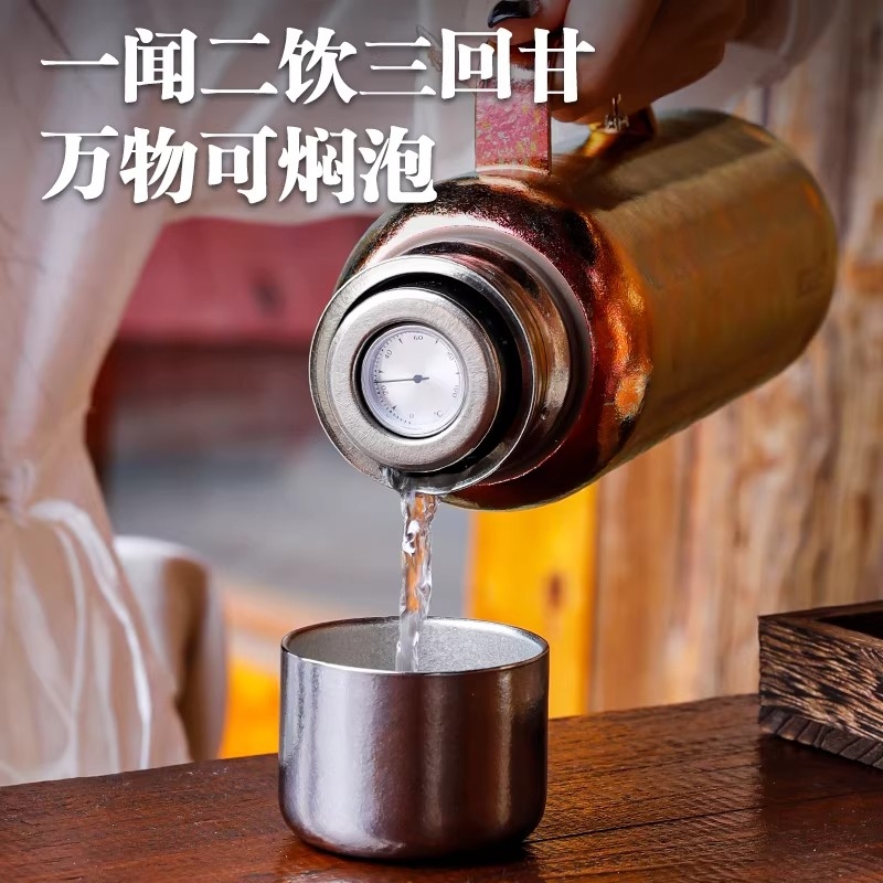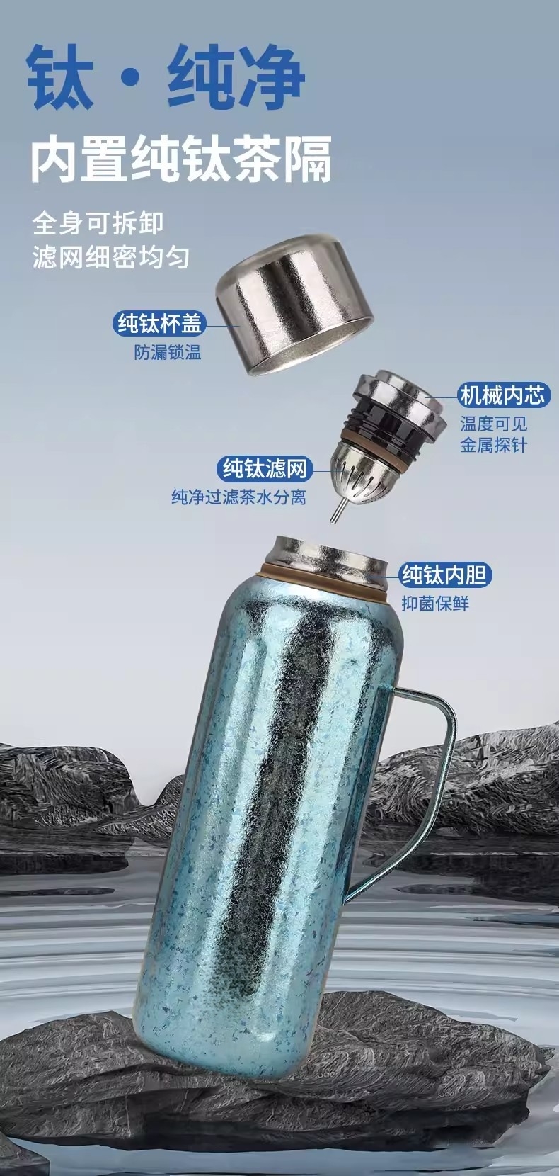 纯钛鲜泡入口皆是茶香,机械温显保温保鲜,可焖可泡;内外双层纯钛,高真空隔热无尾抽真空技术48小时持久;内置纯钛茶隔 全身可拆卸滤网细密均匀;健康养生方式高端纯钛内胆 「长效保鲜抑菌」;机械指针测温设计机械内芯,每一刻的温度实时显现