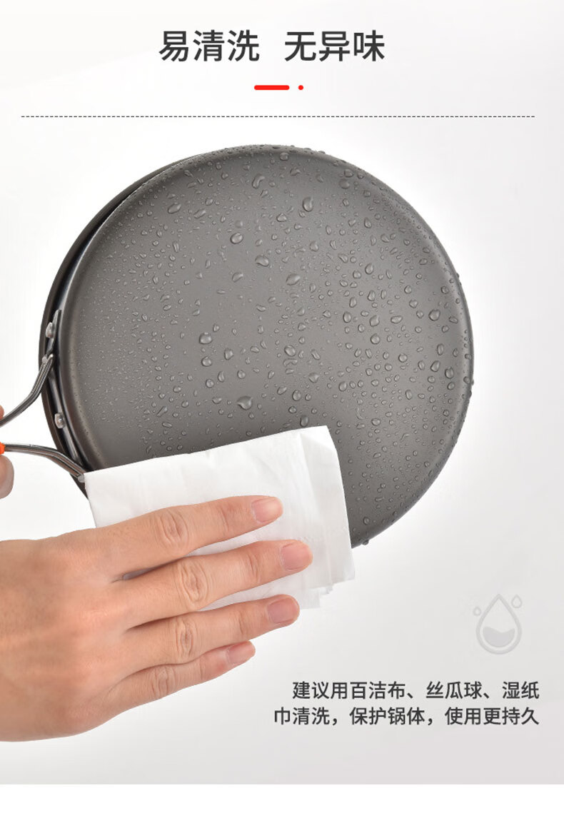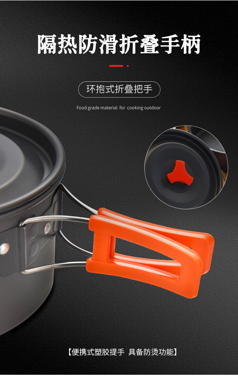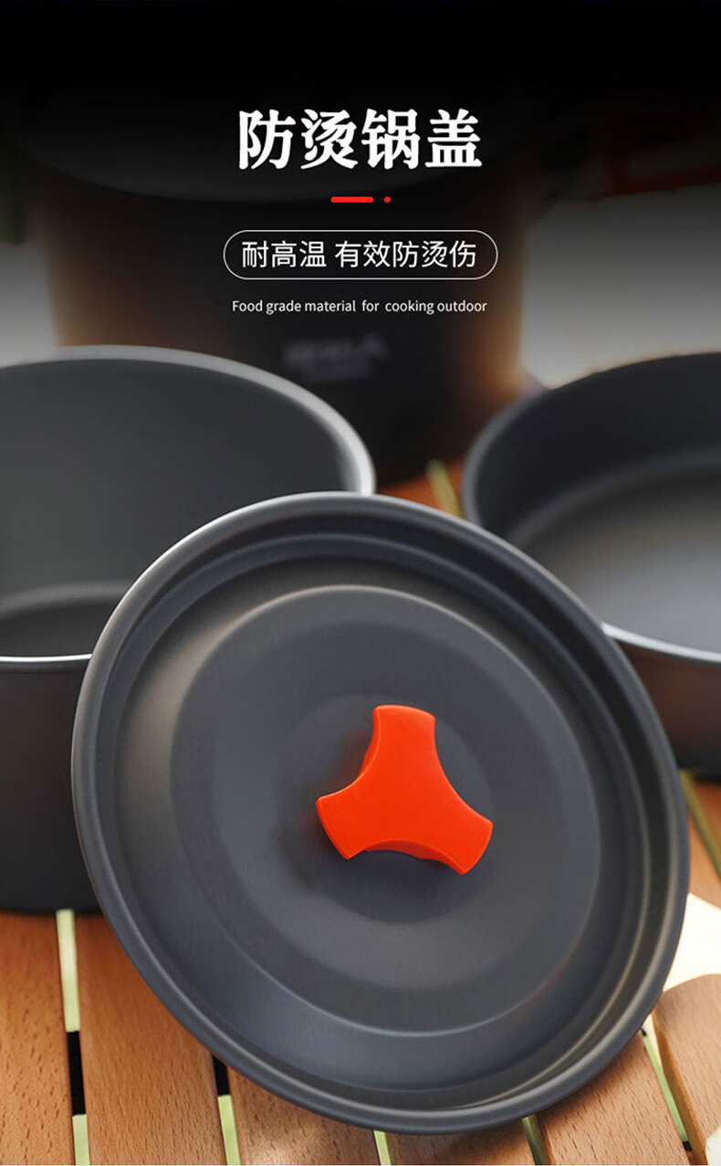 不粘锅 耐高温 易清洗 轻量耐用;锅具可嵌套收纳 节省空间易携带;隔热手柄 防烫锅盖 提手防烫贴心处理