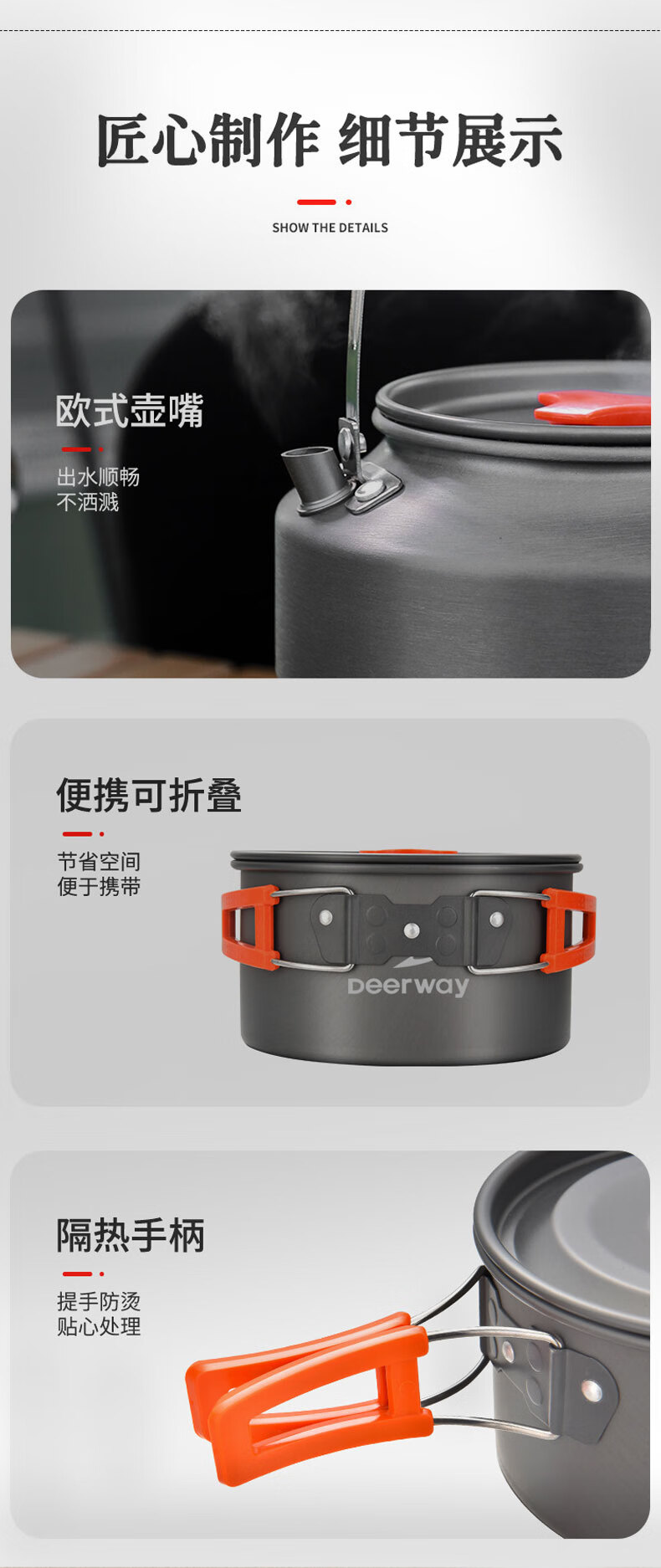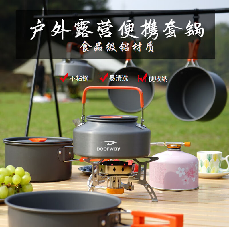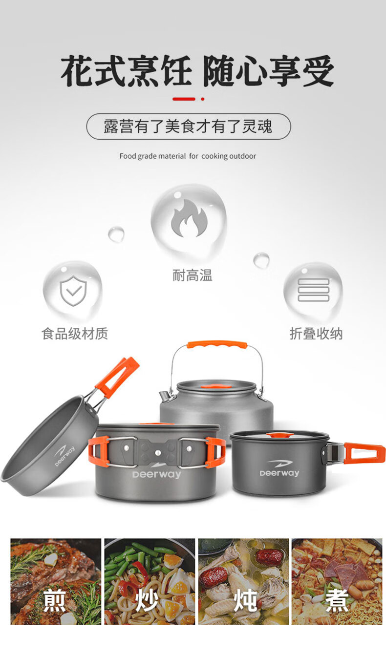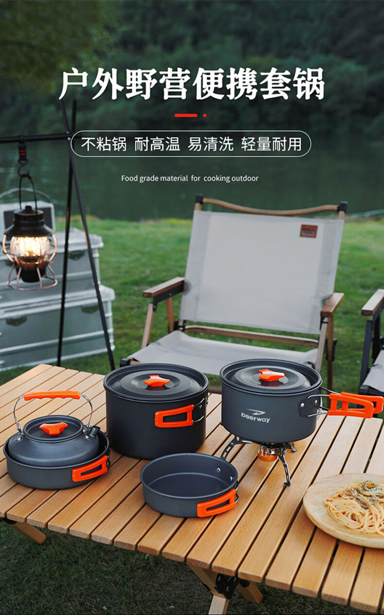 不粘锅 耐高温 易清洗 轻量耐用;锅具可嵌套收纳 节省空间易携带;隔热手柄 防烫锅盖 提手防烫贴心处理