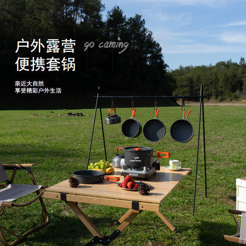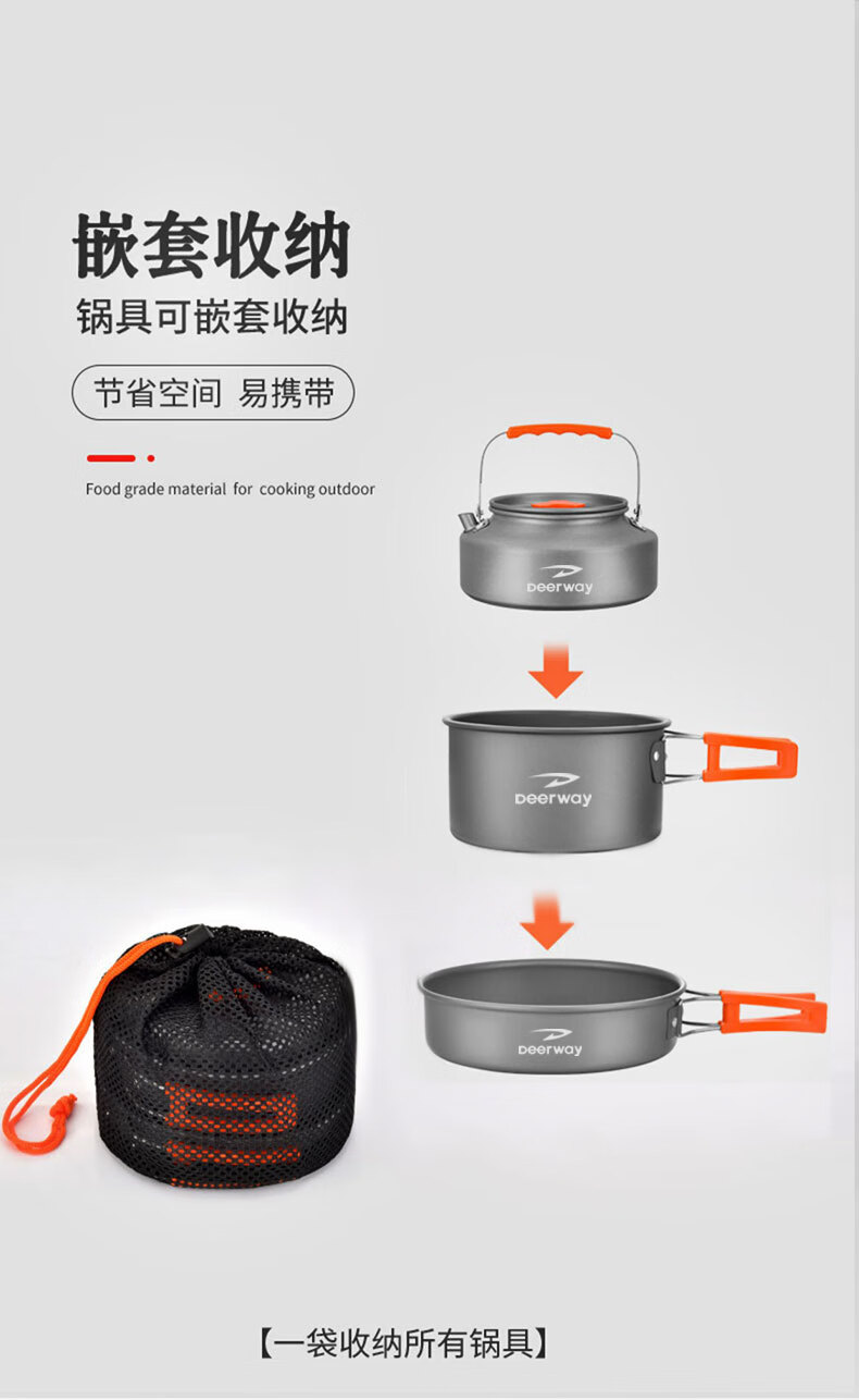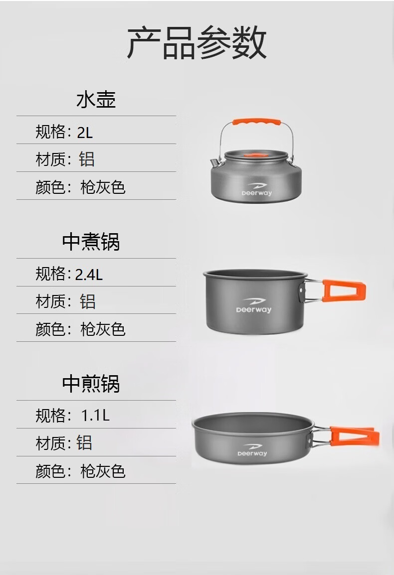 德尔惠 露营锅具三件套枪灰色DEHGJ-03