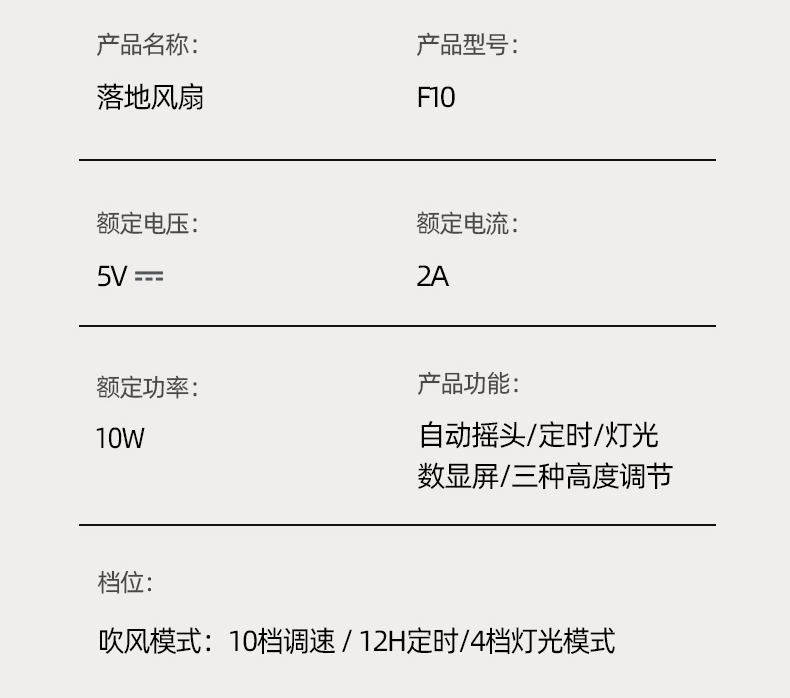10档风速;自动摇头;4档灯光