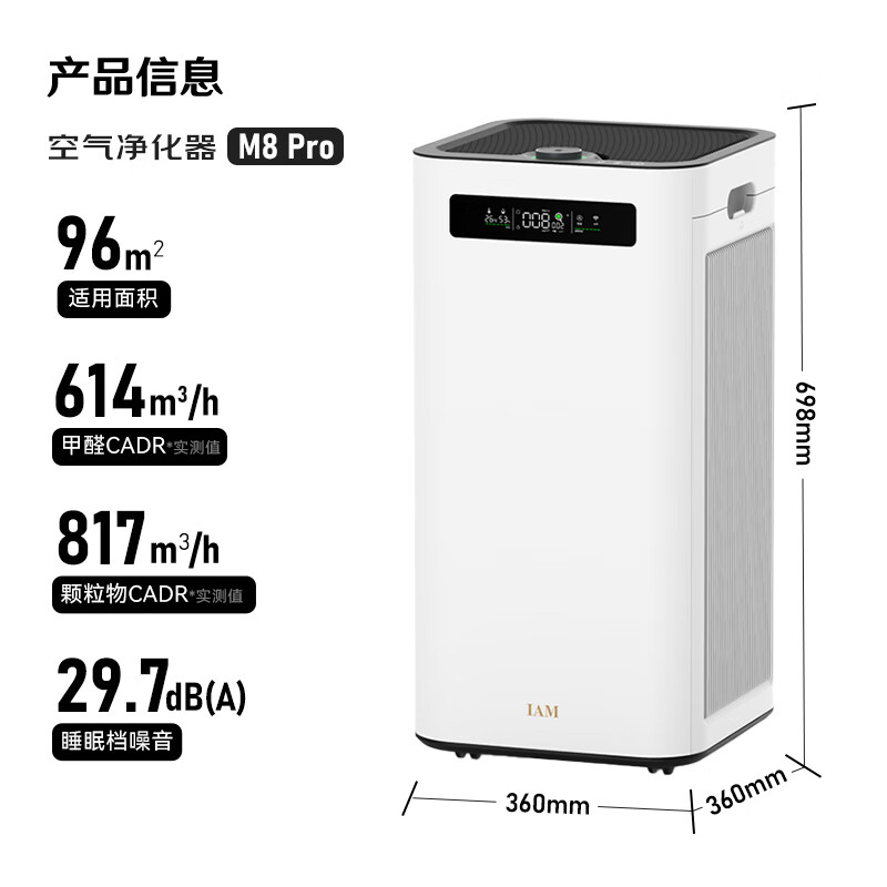 IAM 空气净化器除甲醛家用负离子KJ800F-M8Pro