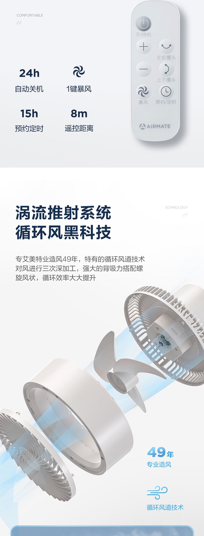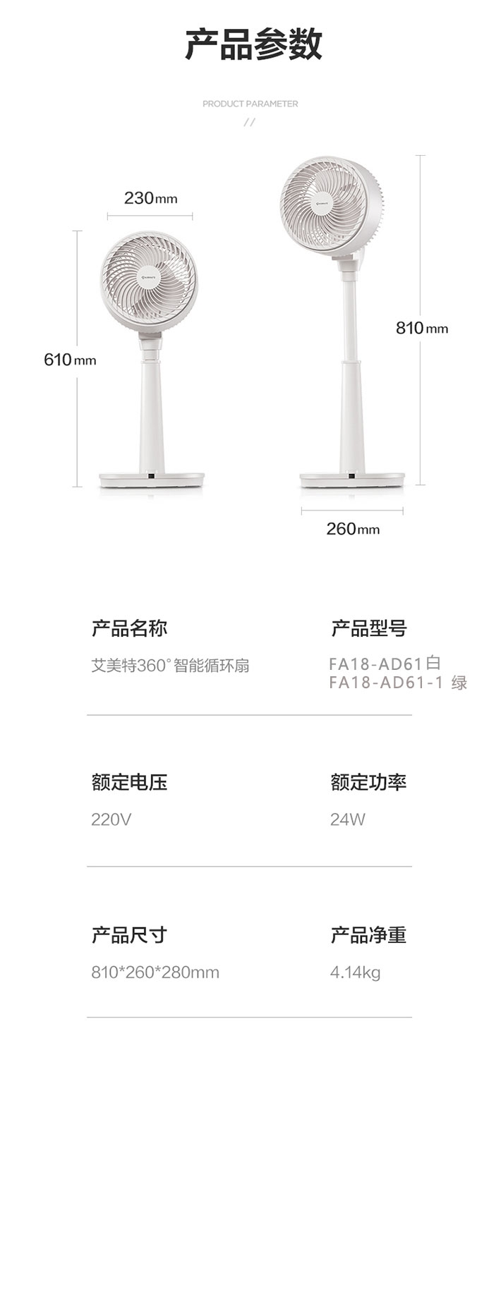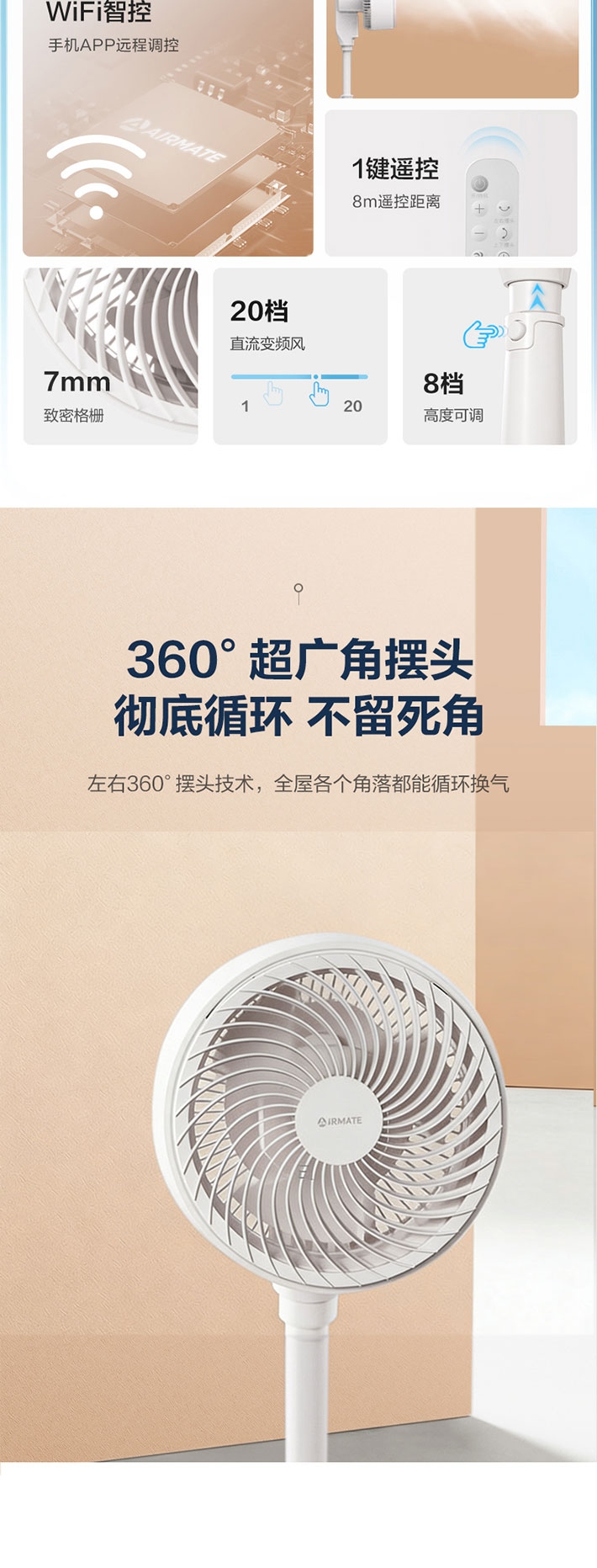 360°广角送风 整屋彻底循环;2min整屋换气 AS涡流推射系统;3步拆洗网罩扇叶均可拆洗