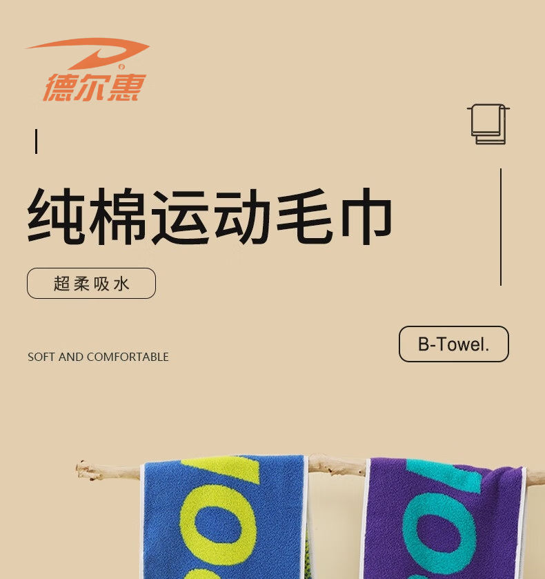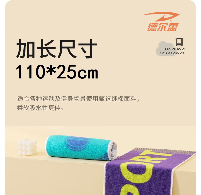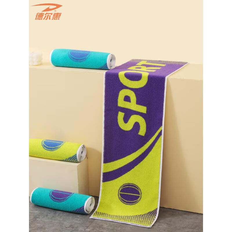 德尔惠 纯棉运动毛巾紫黄色DEHMJ-01