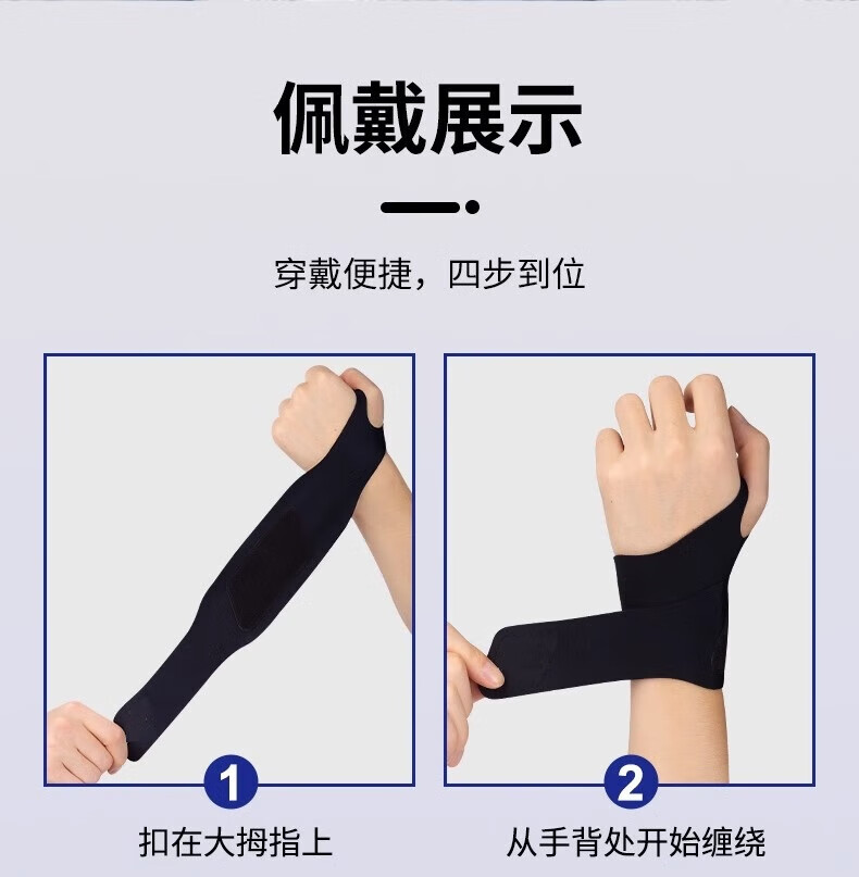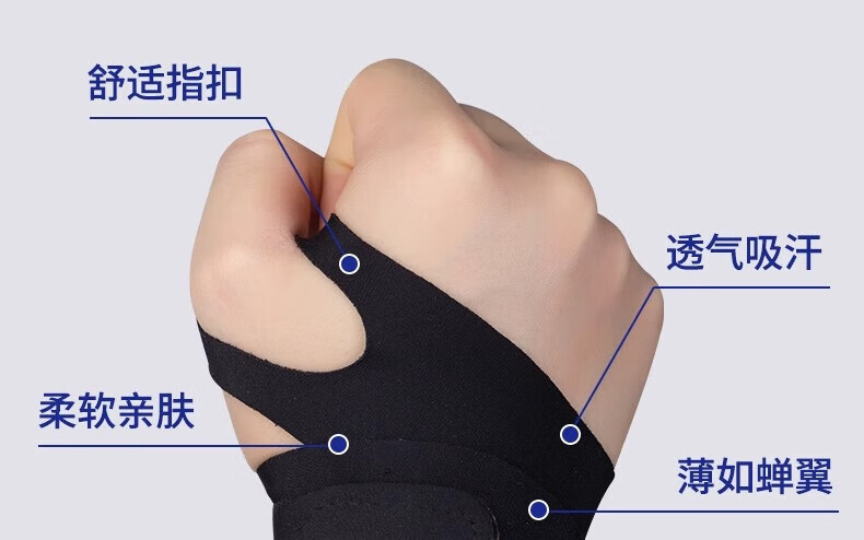 支撑关节 保护腱鞘;舒适指扣 柔软亲肤 粘贴牢固 透气吸汗 薄如蝉翼;稳定支撑 吸湿排汗
