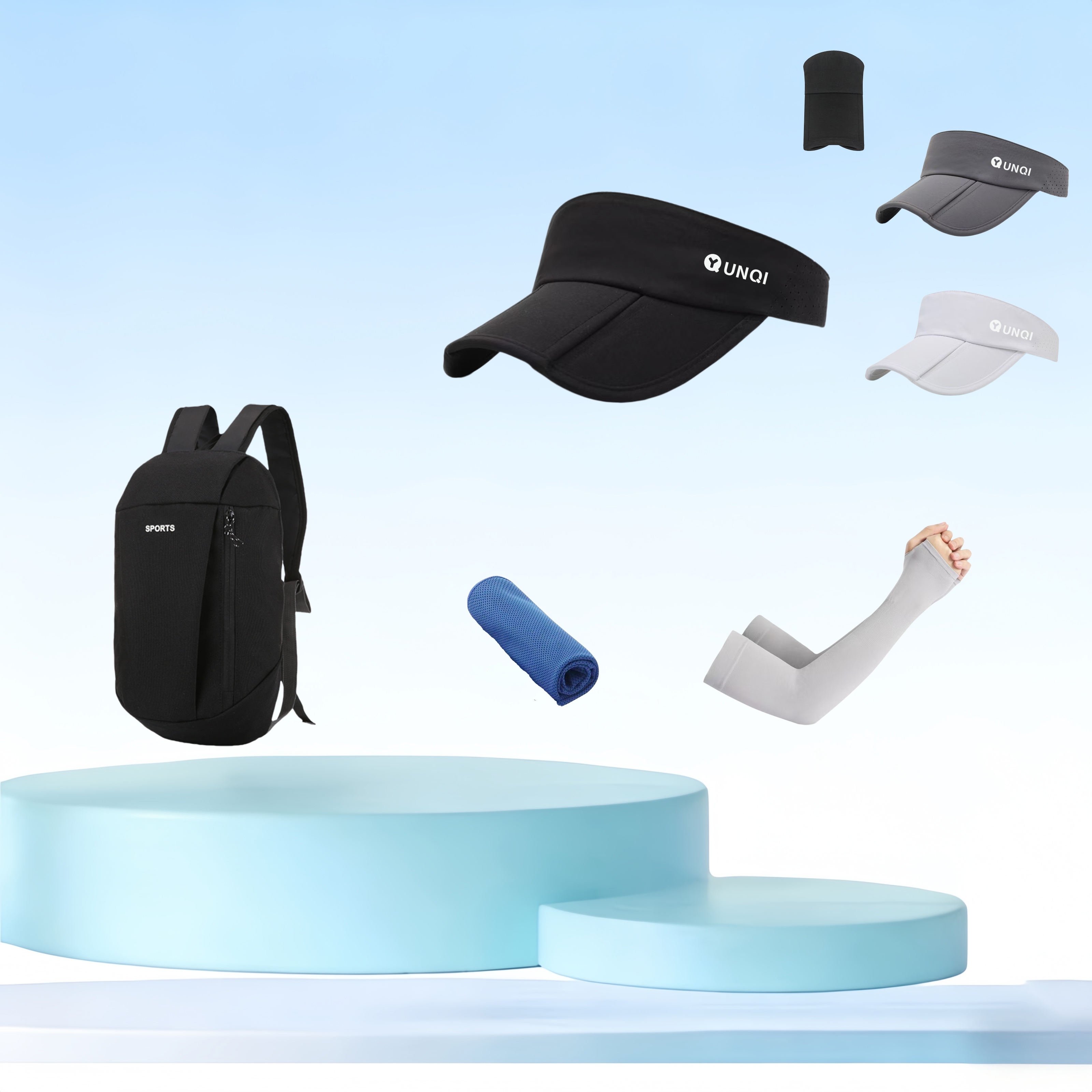组合形式:(防晒帽背包冰袖运动巾)