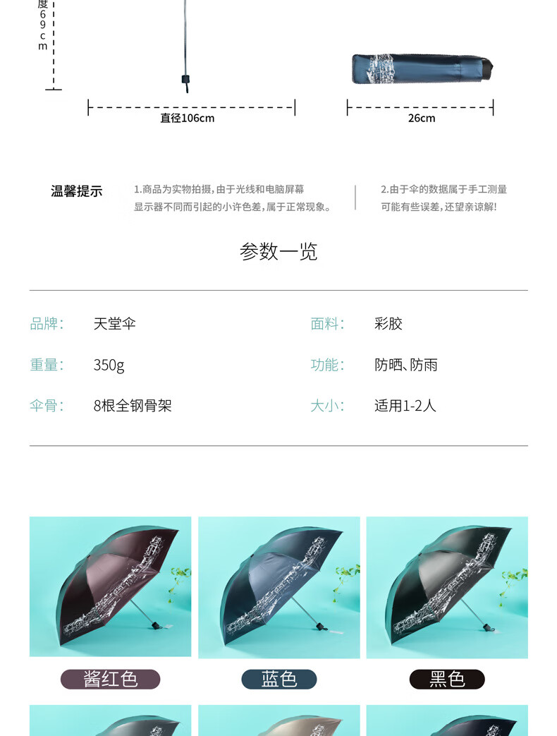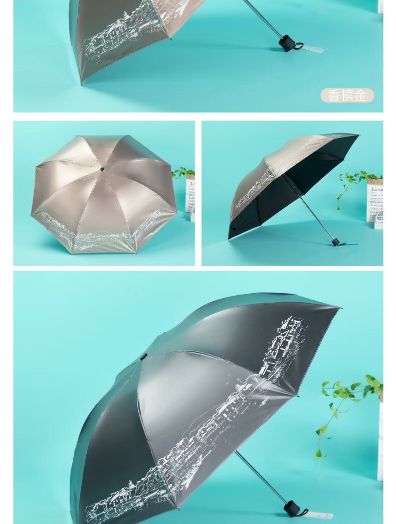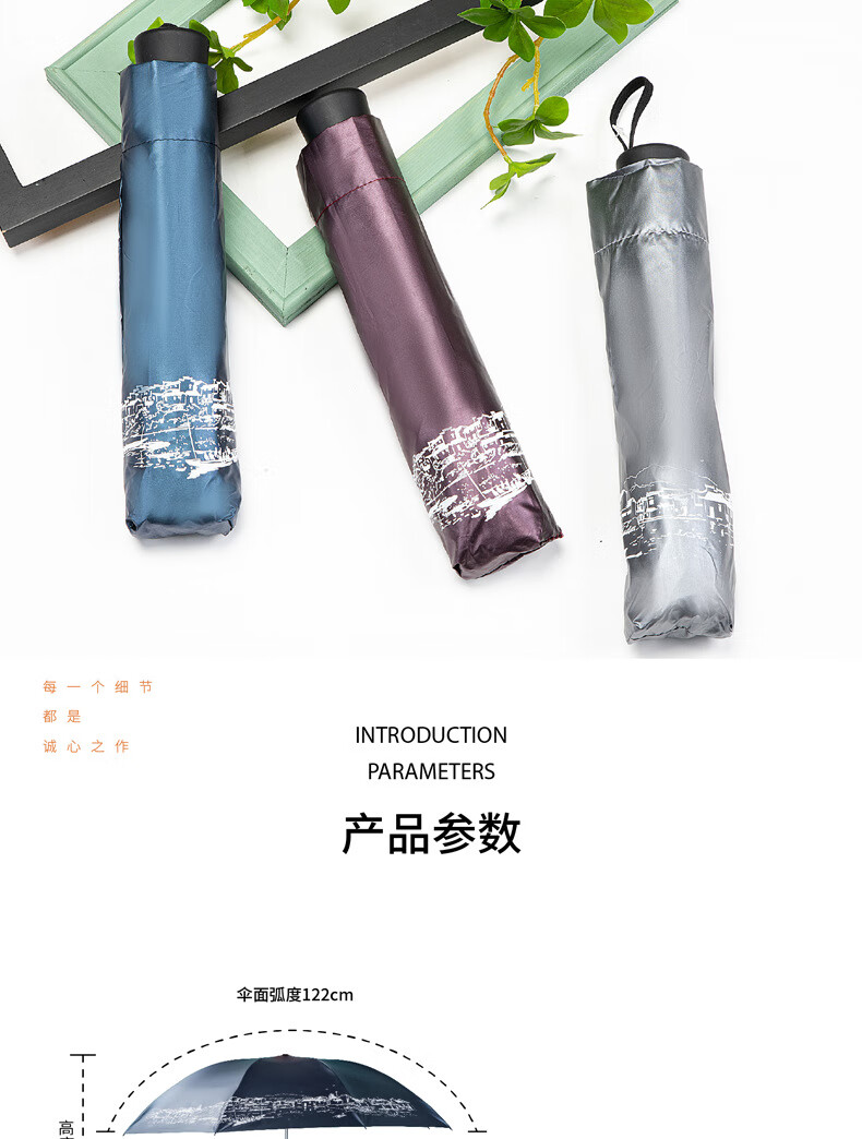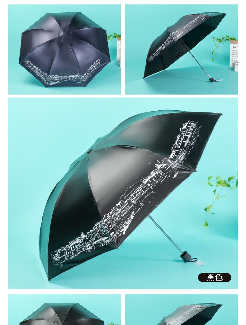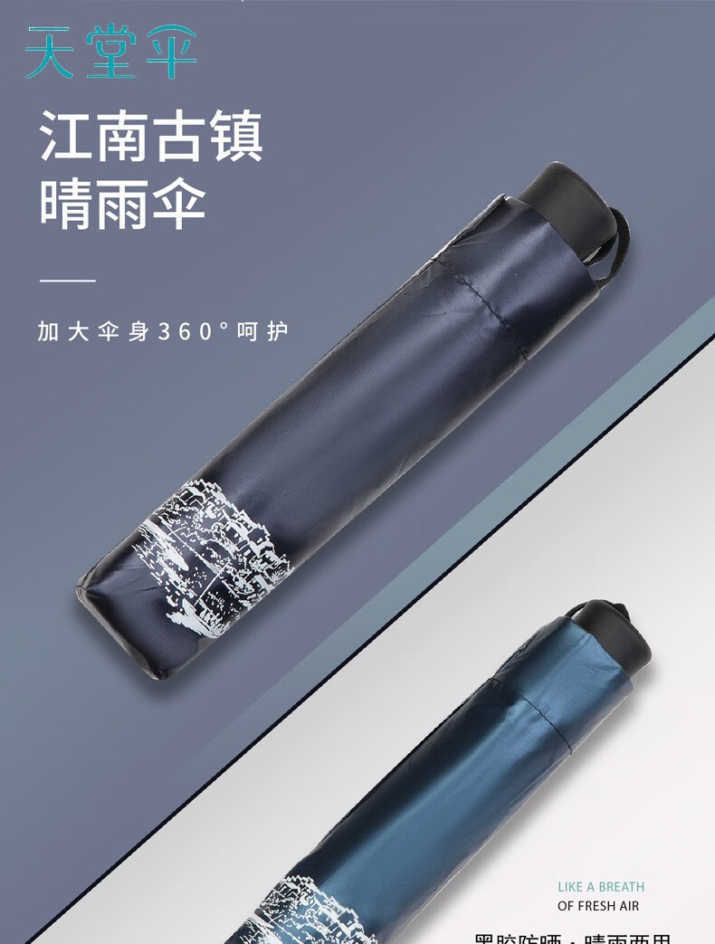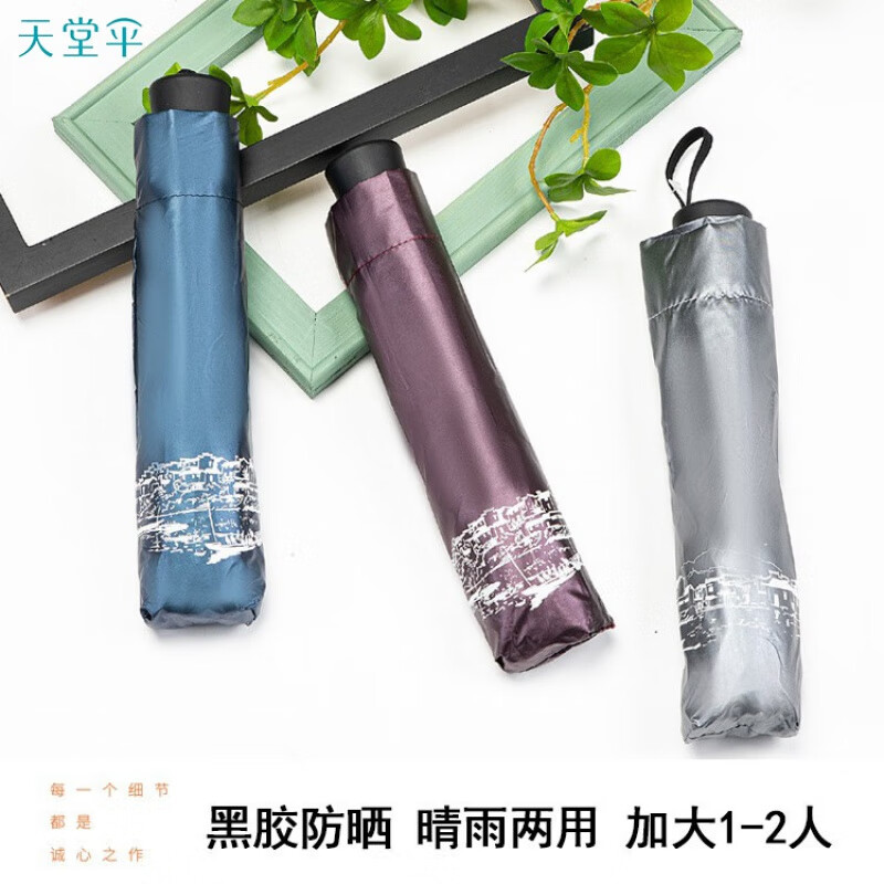 天堂伞 江南古镇三折叠黑胶伞33627E