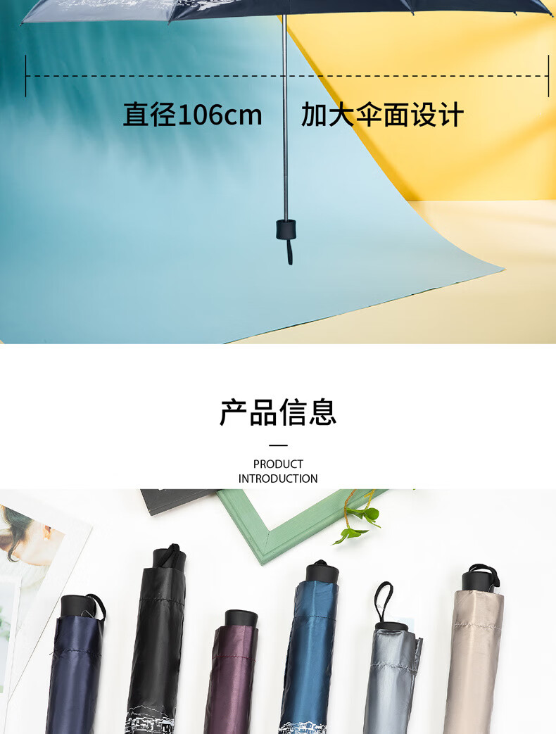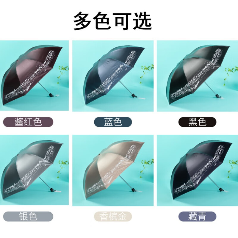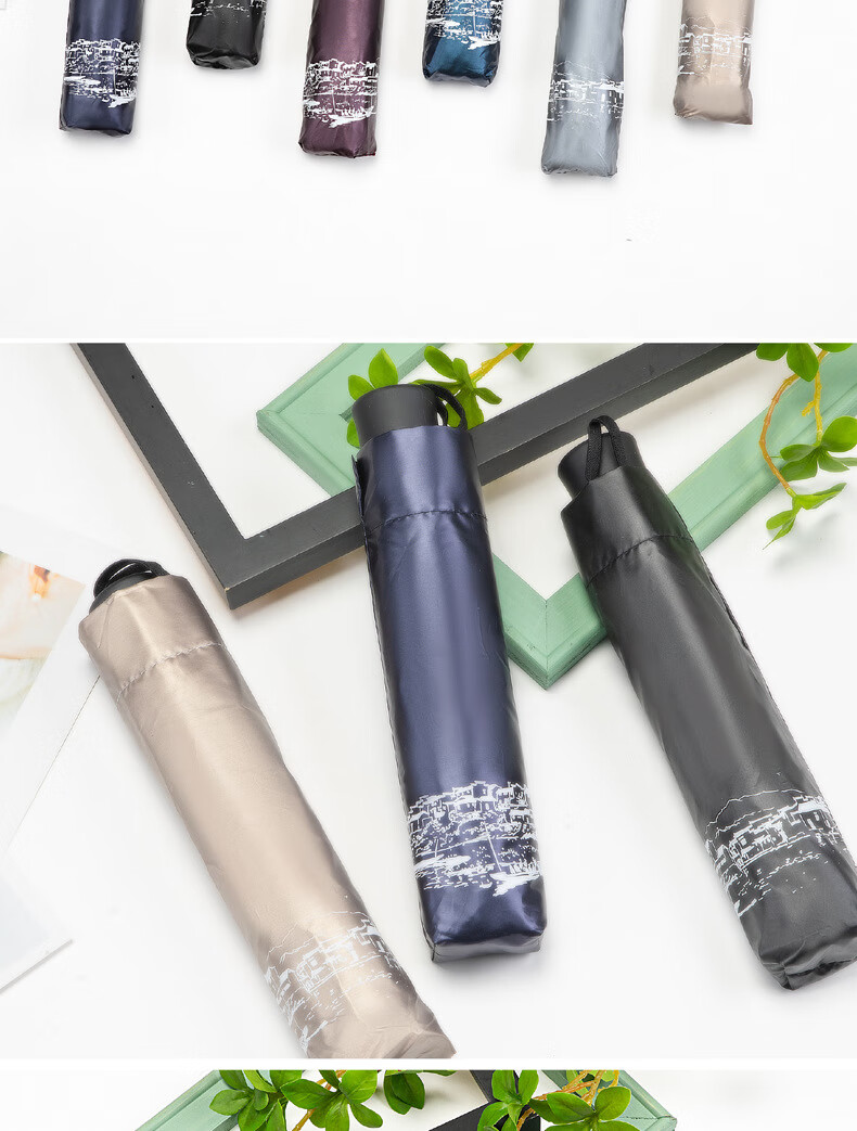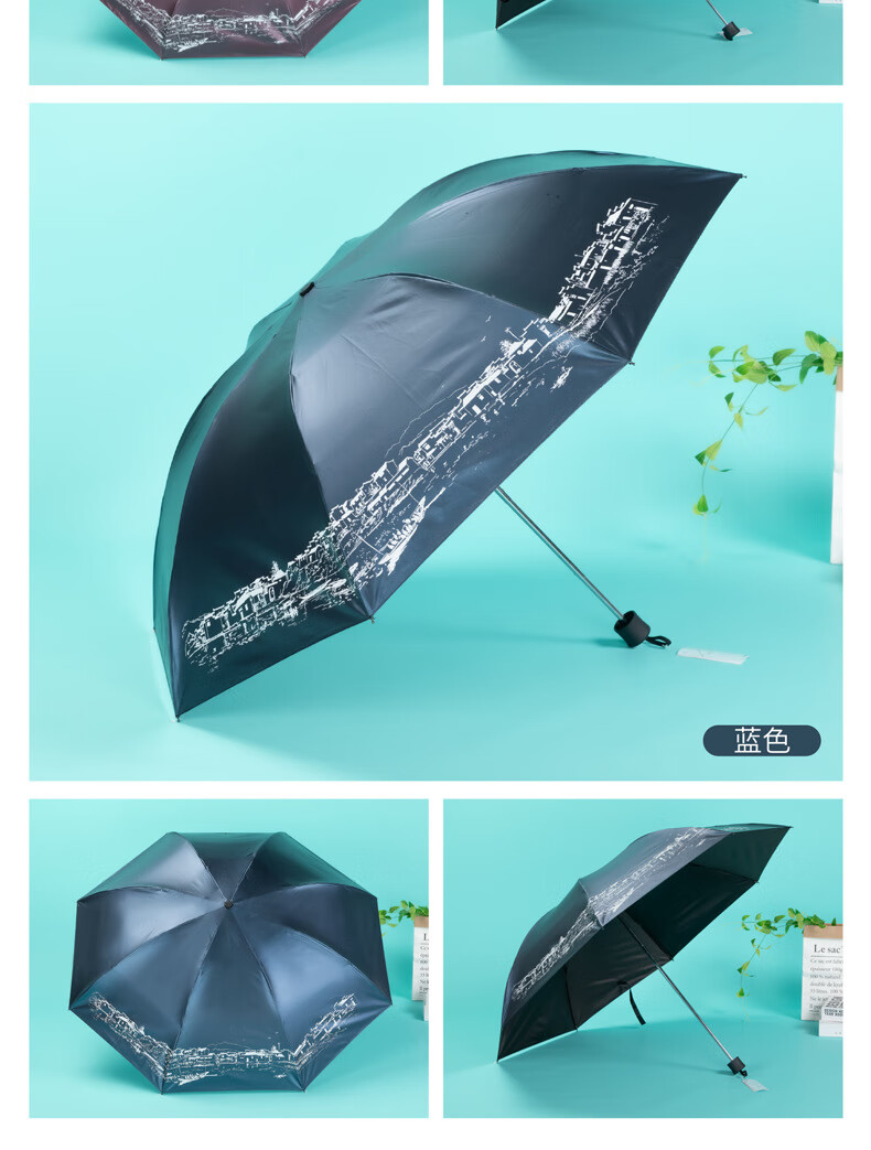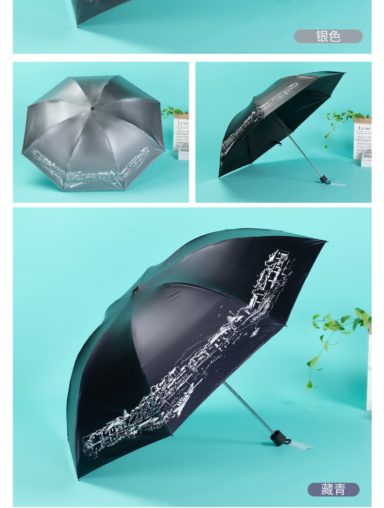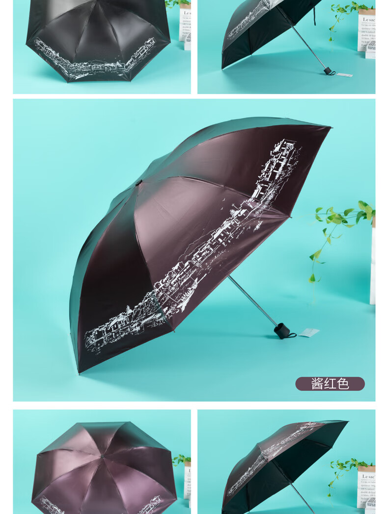 天堂伞 江南古镇三折叠黑胶伞33627E