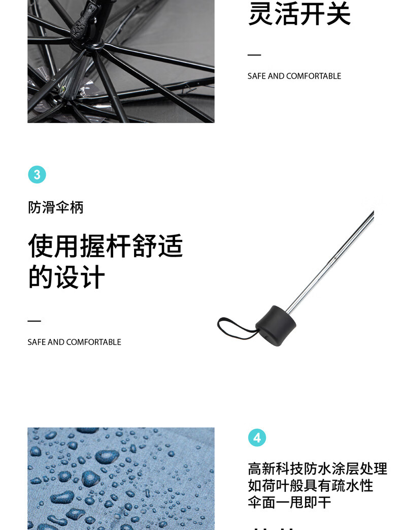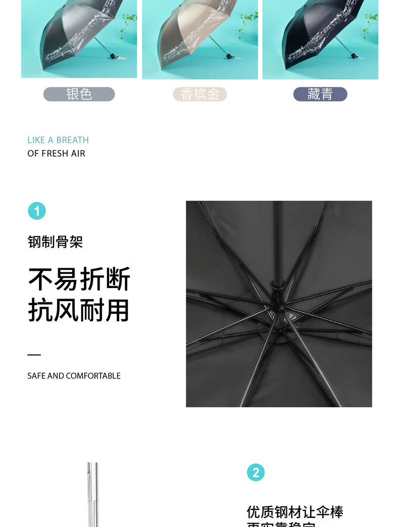 伞骨材质:8根全钢骨架